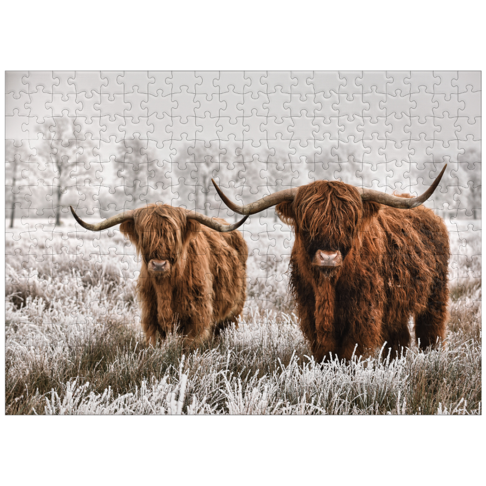 Hairy Scottish Highland cattle are a sight to behold in any season, but in a winter landscape, their shaggy coats take on an extra level of majesty.