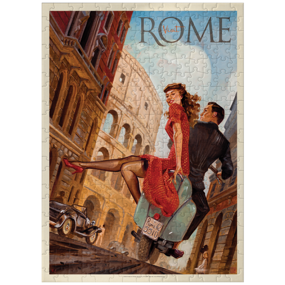 Rome is any vacationing couple's dream, the perfect city to enjoy beauty in art, architecture, and history. And what could be more romantic than cruising through the ancient streets of Rome before the Colosseum on the back of a vespa scooter? The perfect Jigsaw puzzle for adults, available as 1000, 500 and 100 pieces puzzle.