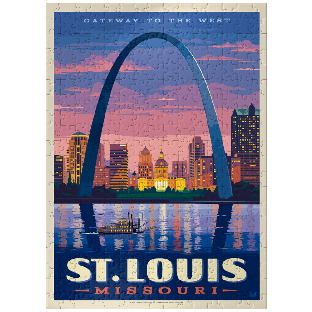 Home to the famous Gateway Arch, St. Louis has much more to offer than its stunning architecture. Known as the city where the first popsicle was invented, host of the 1904 World's Fair, and the first American city to host an Olympics, St. Louis has a rich history of innovation and creativity. St. Louis is a beautiful Midwestern city with a vibrant downtown, numerous parks and recreational opportunities, and a friendly population. The beauty of the Gateway Arch on the banks of the Mississippi River inspired the team at Anderson Design Group to create a vintage travel poster of the arch at sunset. Even in the fleeting glow of the end of the day, this image is a powerful symbol of the city and its people.