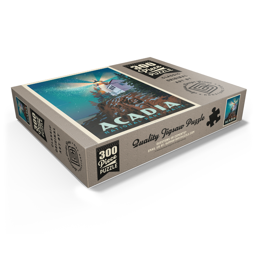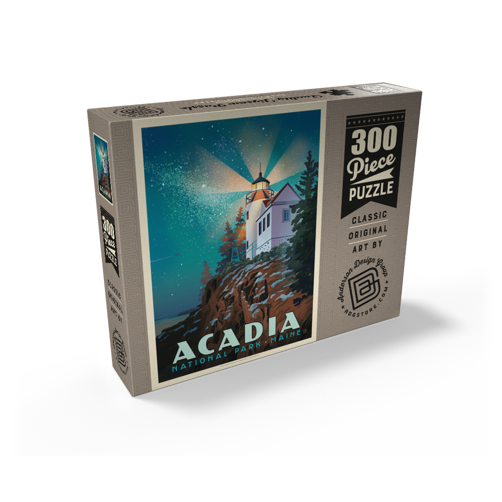 Experience the enchanting beauty of Acadia National Park at night, where the iconic lighthouse stands as a beacon of light against a star-filled sky. Perched on a rocky cliff, surrounded by evergreens, this scene captures the serene and timeless charm of Maine's coastal treasure.
