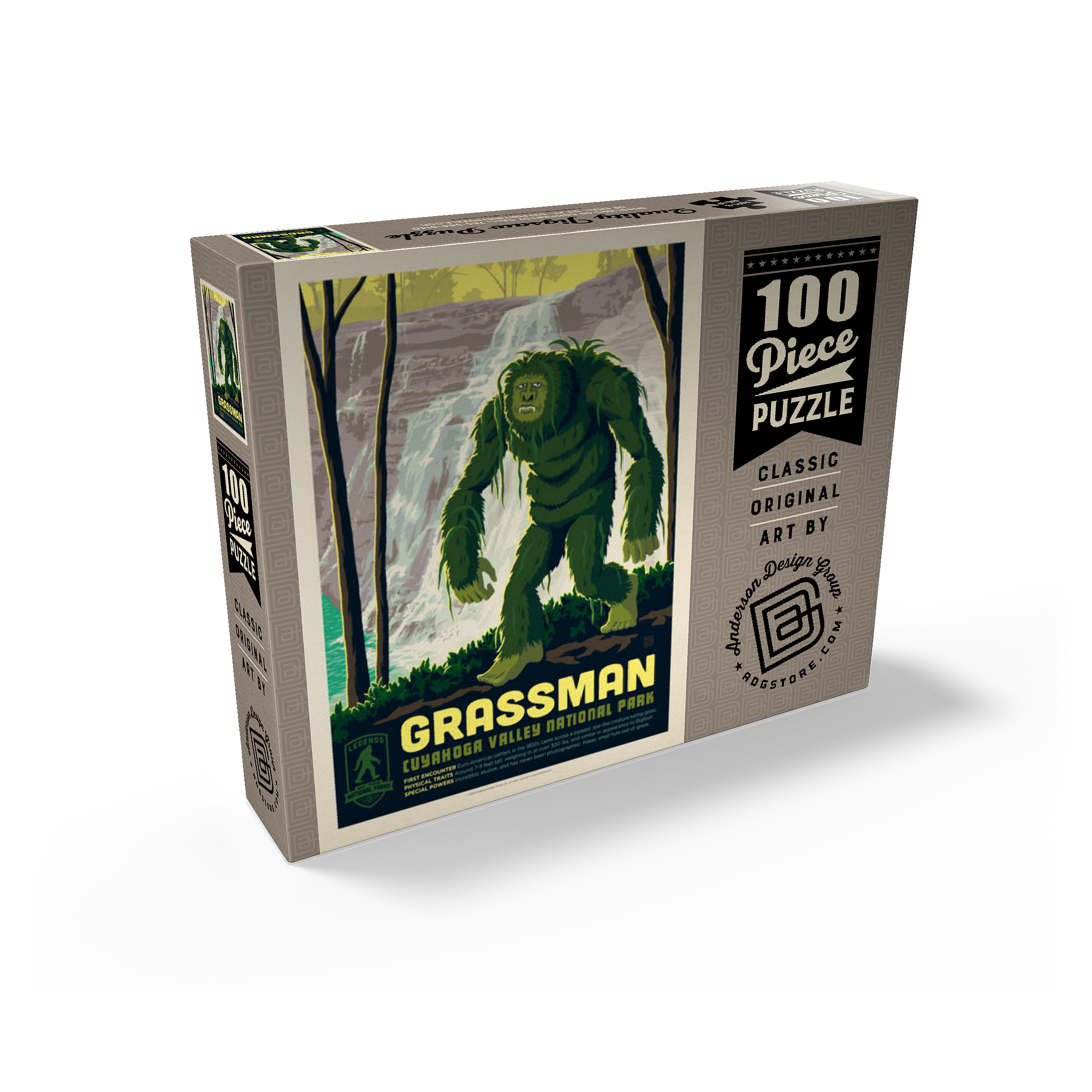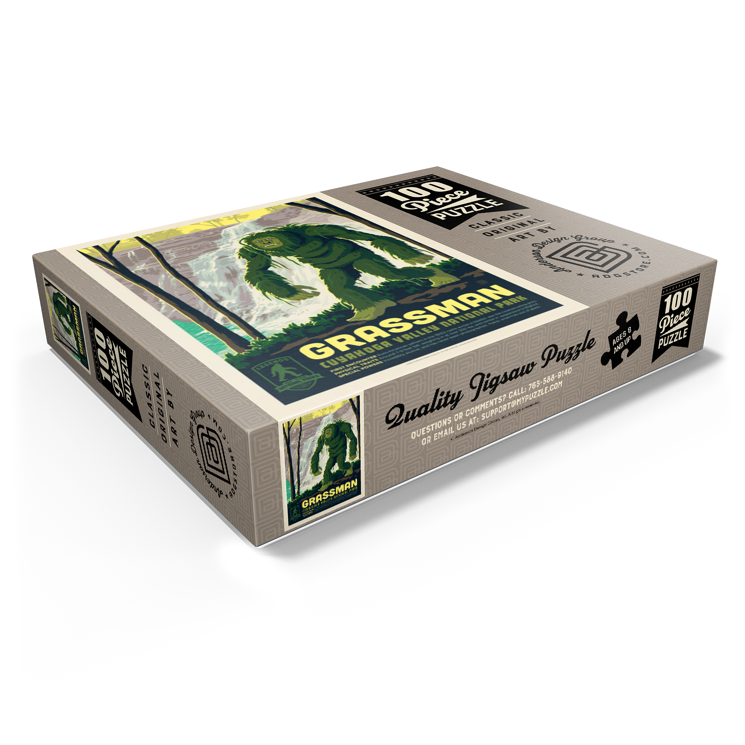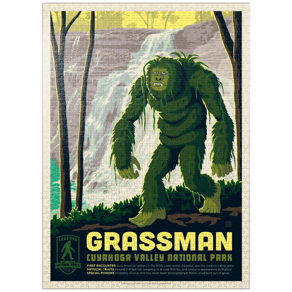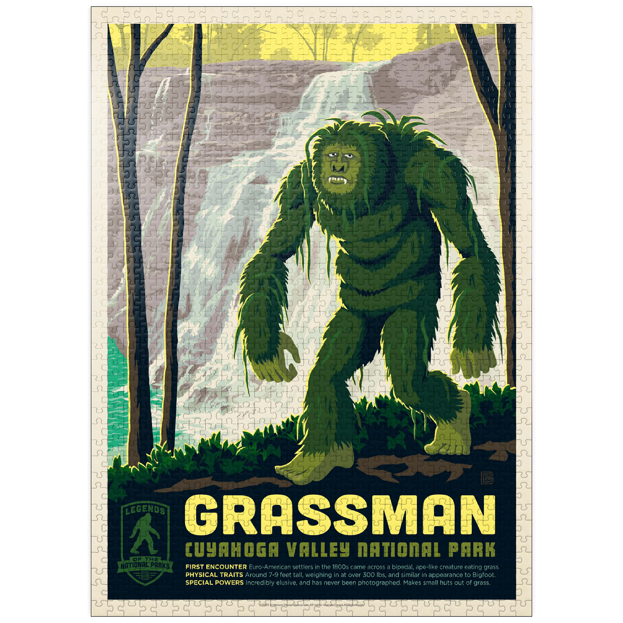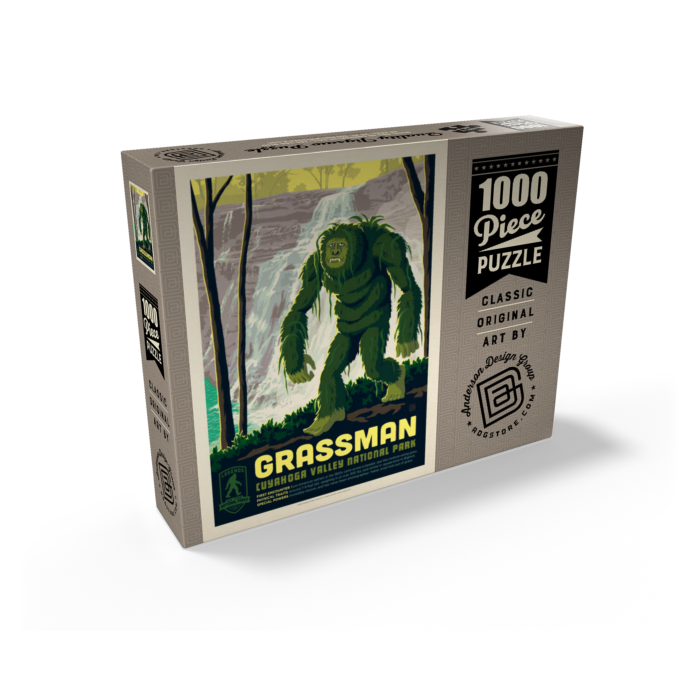The Grassman is an Ohio-based cryptid often compared to Bigfoot, said to inhabit the dense forests of Cuyahoga Valley National Park. First reported by Euro-American settlers in the 1800s, this mysterious creature is described as a large, bipedal ape-like figure, standing between 7 to 9 feet tall and weighing over 300 pounds. Unlike other Sasquatch legends, the Grassman is noted for its thick, grass-covered fur and its ability to build small huts out of grass, adding to its mystique. Incredibly elusive, no confirmed photographs exist, making it one of the most intriguing creatures in American folklore. This vintage-style illustration captures the eerie presence of the Grassman emerging from the wilderness, set against the backdrop of a stunning waterfall in Cuyahoga Valley. A perfect piece for cryptid enthusiasts, Bigfoot hunters, and lovers of national park legends, this artwork brings a local legend to life.