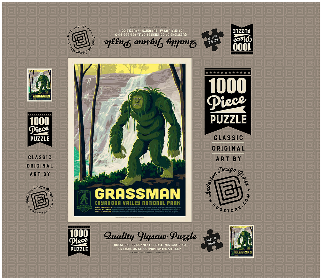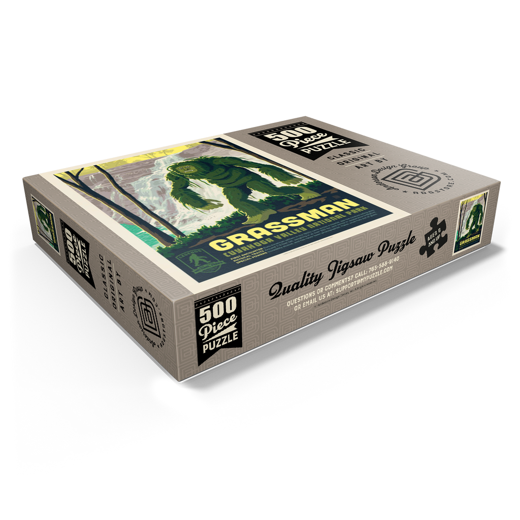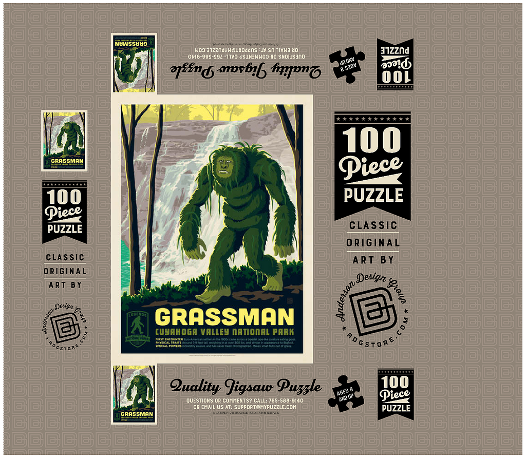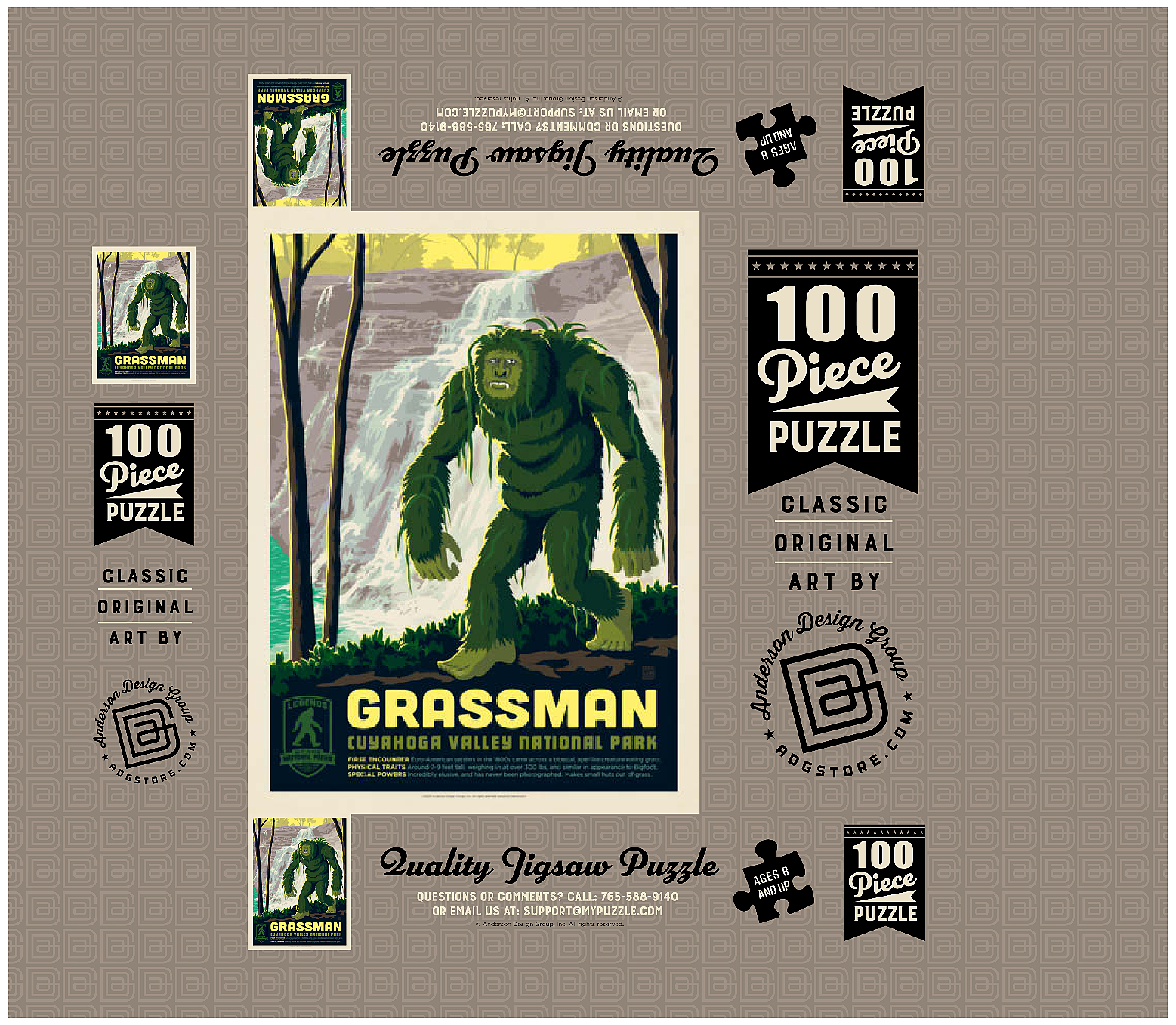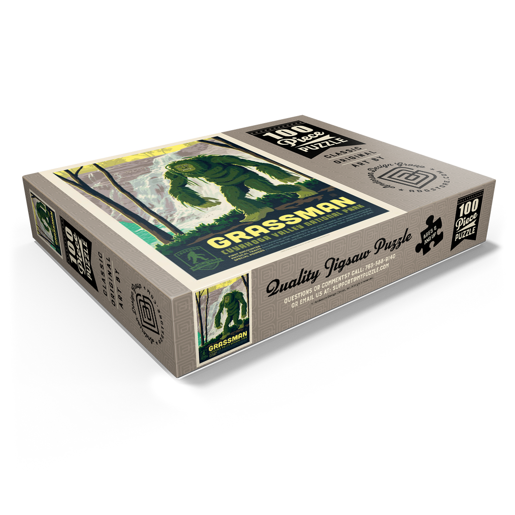 The Grassman is an Ohio-based cryptid often compared to Bigfoot, said to inhabit the dense forests of Cuyahoga Valley National Park. First reported by Euro-American settlers in the 1800s, this mysterious creature is described as a large, bipedal ape-like figure, standing between 7 to 9 feet tall and weighing over 300 pounds. Unlike other Sasquatch legends, the Grassman is noted for its thick, grass-covered fur and its ability to build small huts out of grass, adding to its mystique. Incredibly elusive, no confirmed photographs exist, making it one of the most intriguing creatures in American folklore. This vintage-style illustration captures the eerie presence of the Grassman emerging from the wilderness, set against the backdrop of a stunning waterfall in Cuyahoga Valley. A perfect piece for cryptid enthusiasts, Bigfoot hunters, and lovers of national park legends, this artwork brings a local legend to life.