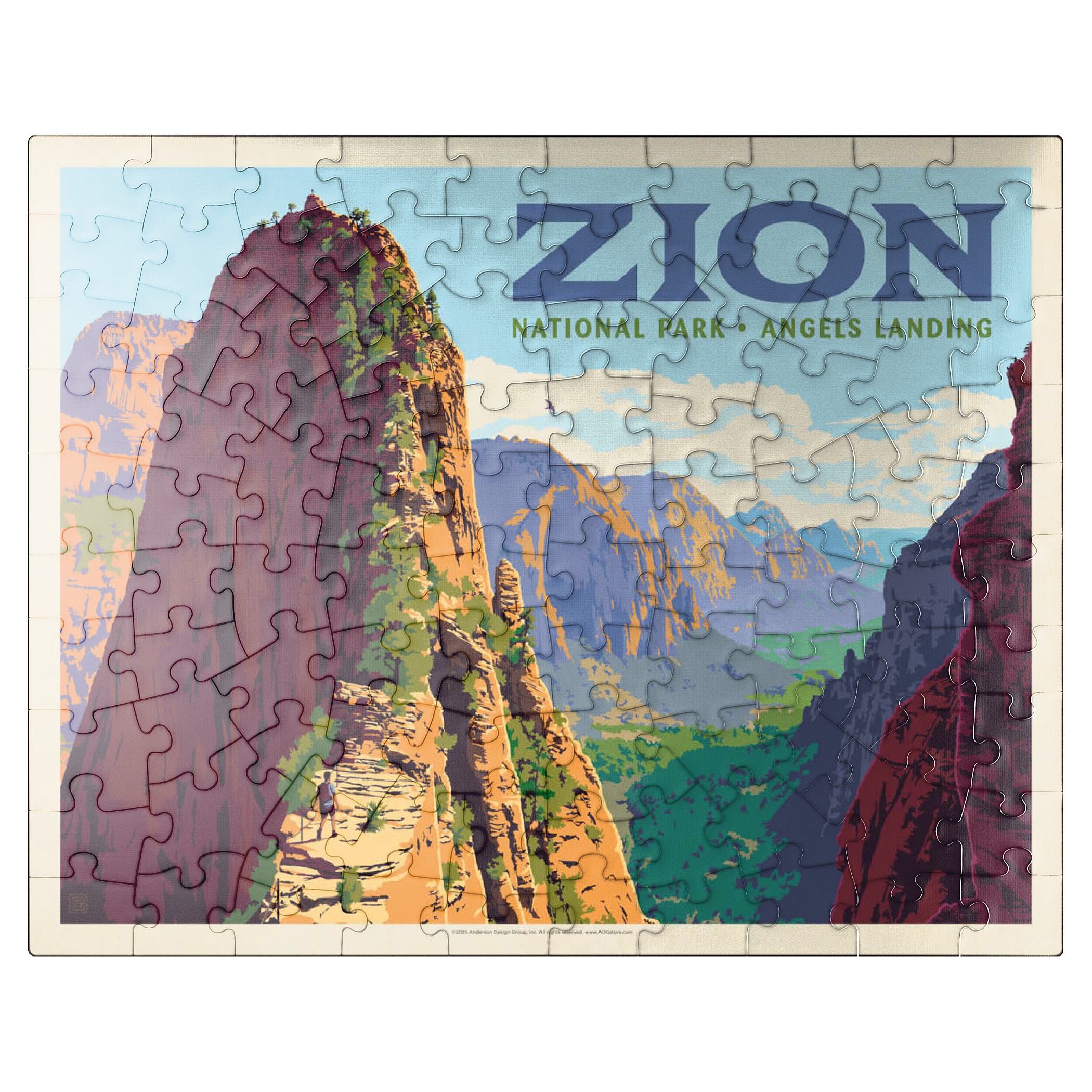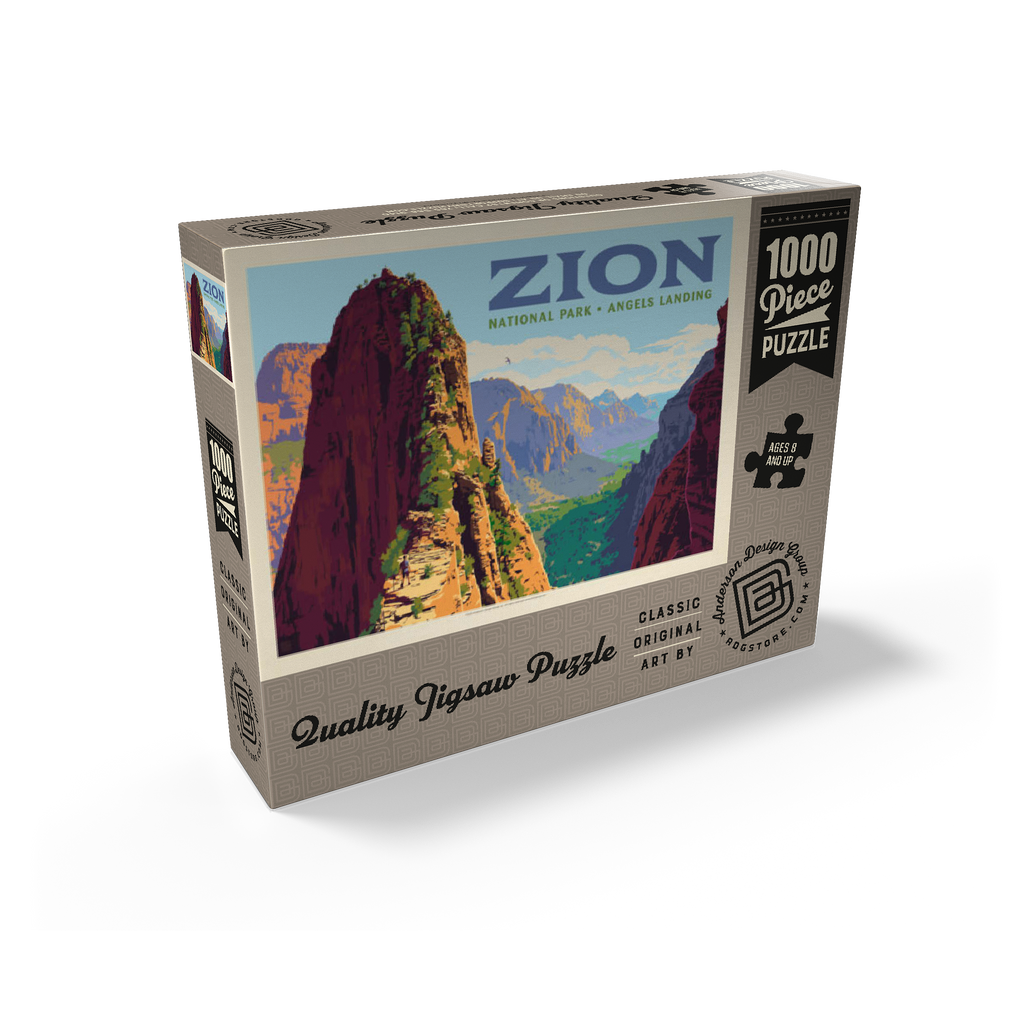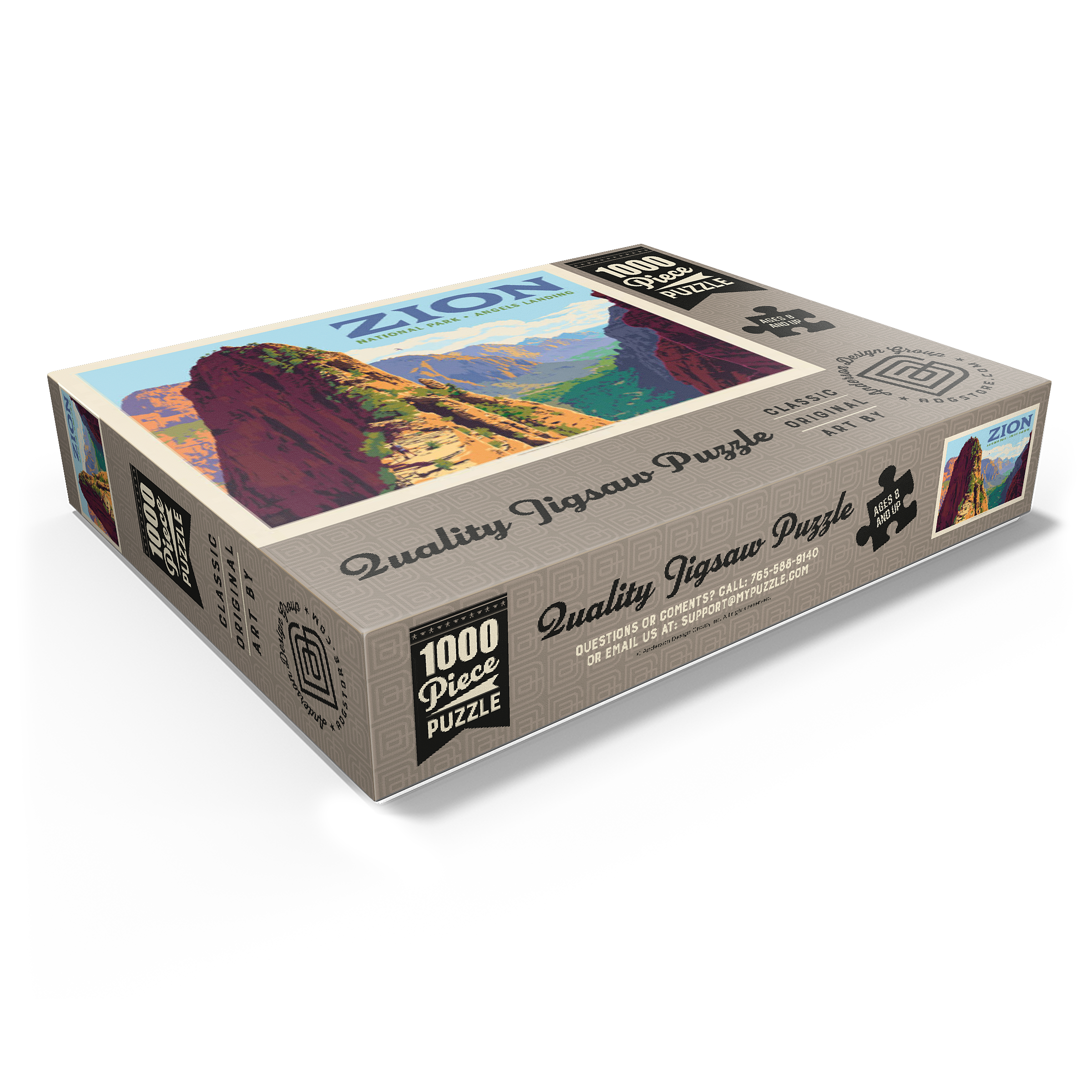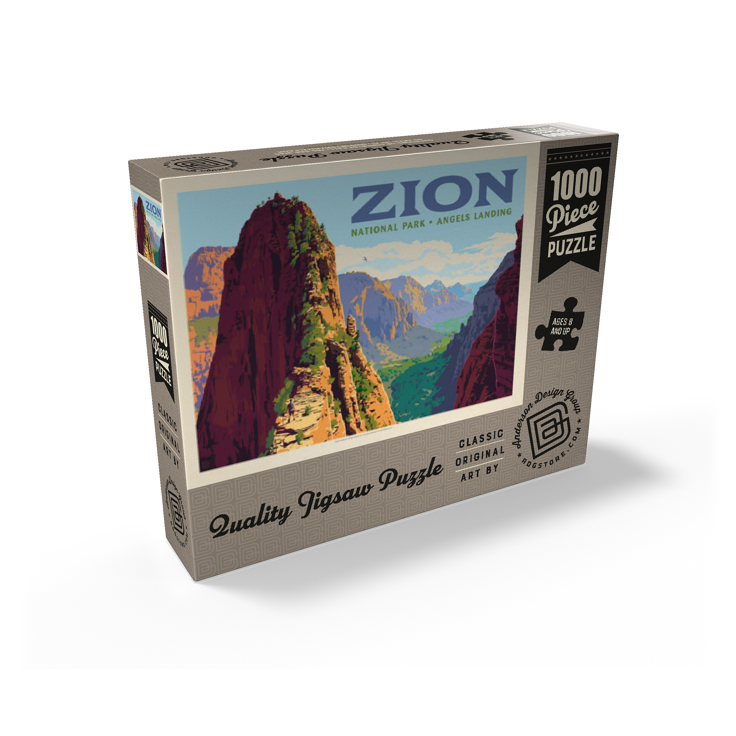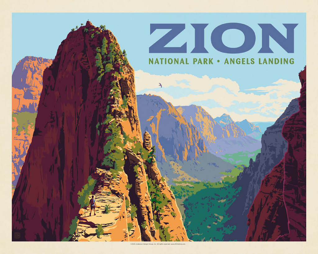 Zion National Park in Utah is a breathtaking destination known for its towering sandstone cliffs, lush canyons, and world-famous hiking trails. This artwork captures one of the park’s most iconic and thrilling locations, Angels Landing, a dramatic rock formation that rises nearly 1,500 feet above the Virgin River valley. The scene highlights the narrow ridgeline trail that leads to the summit, where adventurous hikers are rewarded with panoramic views of Zion Canyon stretching out into the distance. The red and orange cliffs contrast beautifully with the deep greens of the valley floor and the brilliant blue sky, creating a striking visual representation of the park’s unique geology. Angels Landing is celebrated as one of the most exhilarating hikes in the United States, attracting visitors from around the world who come to test their courage on its steep, chain-assisted path.