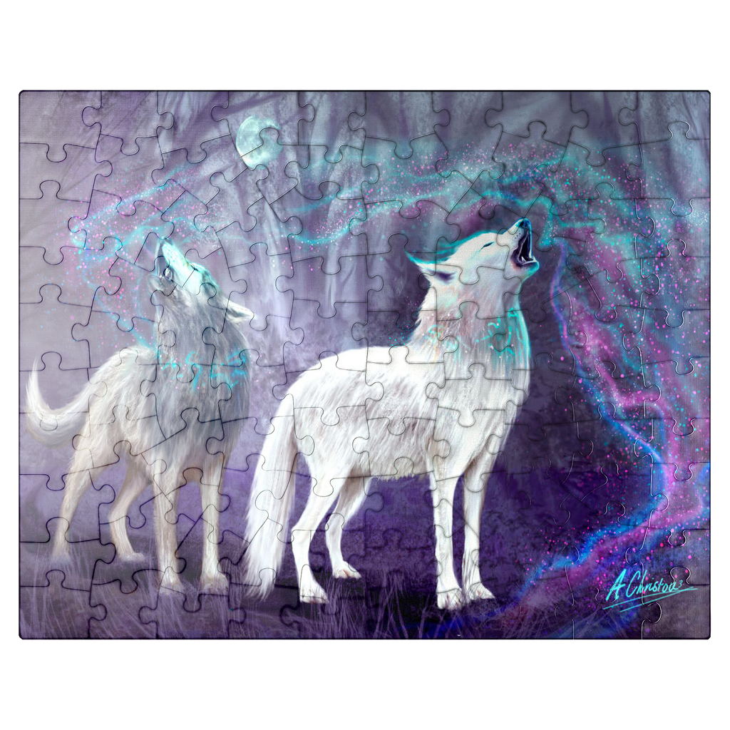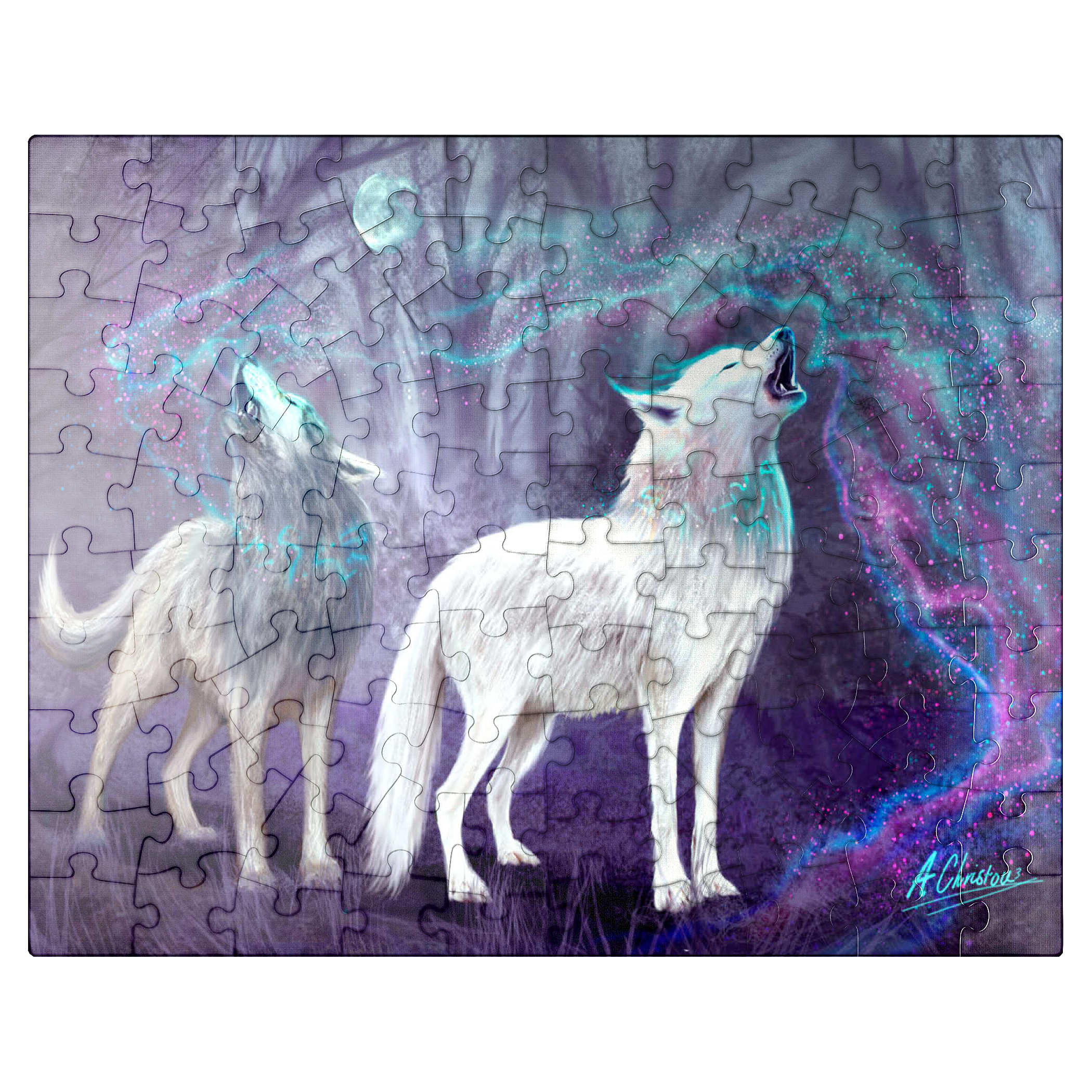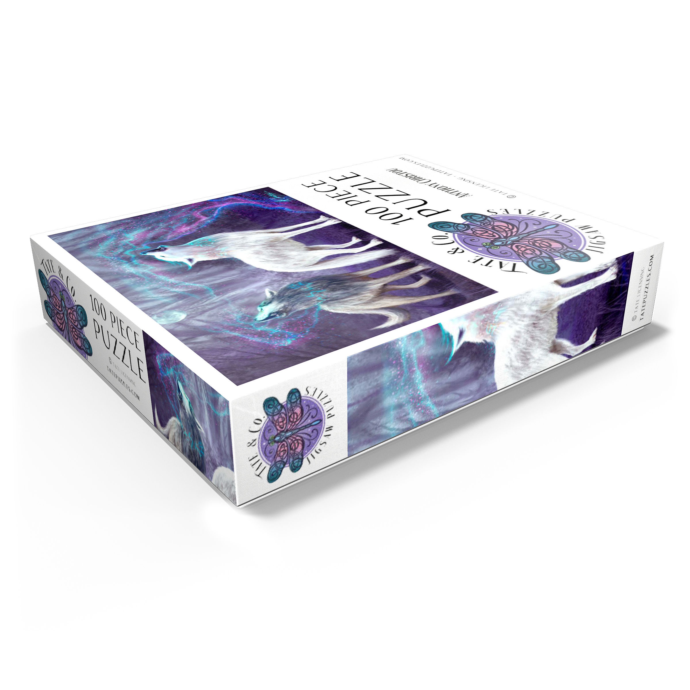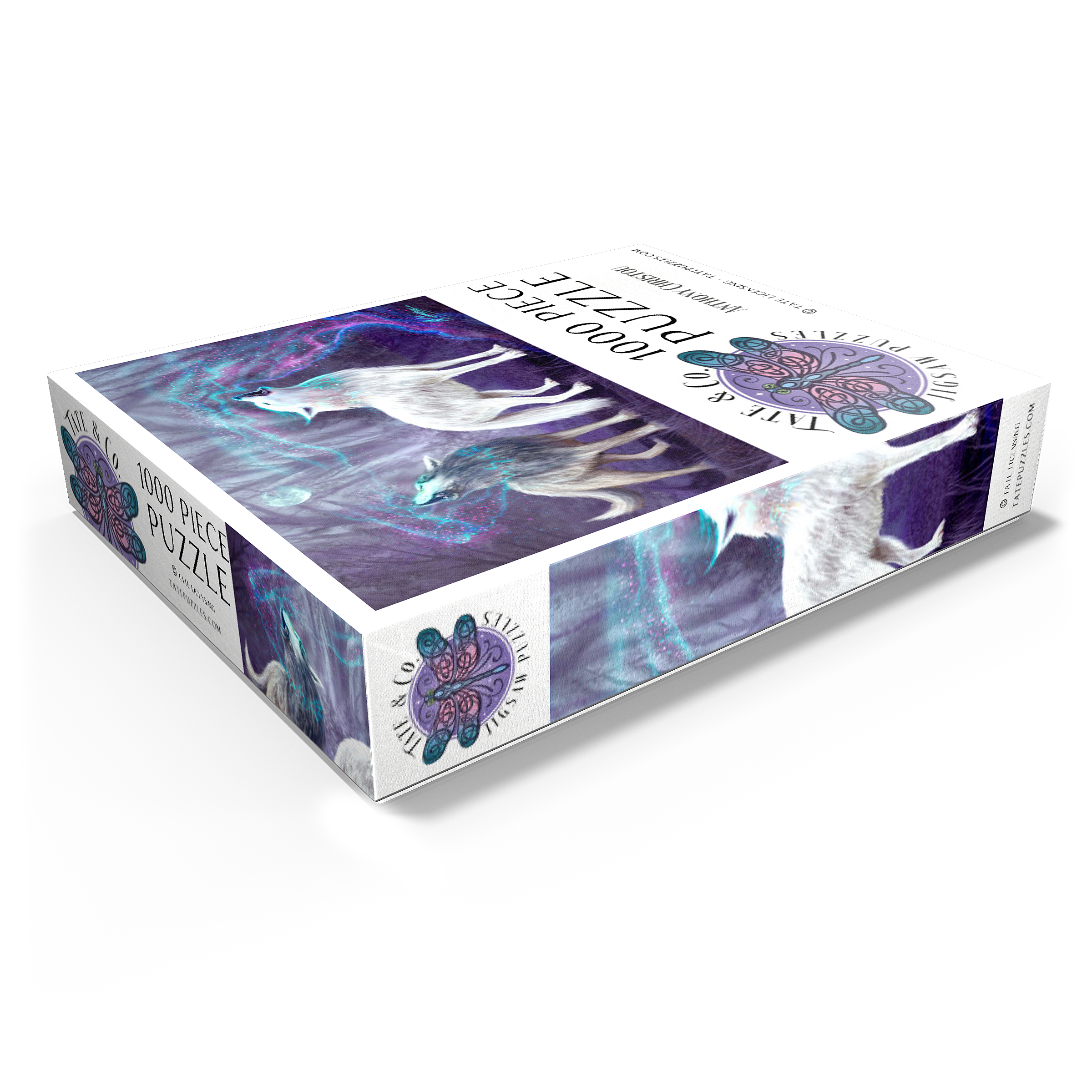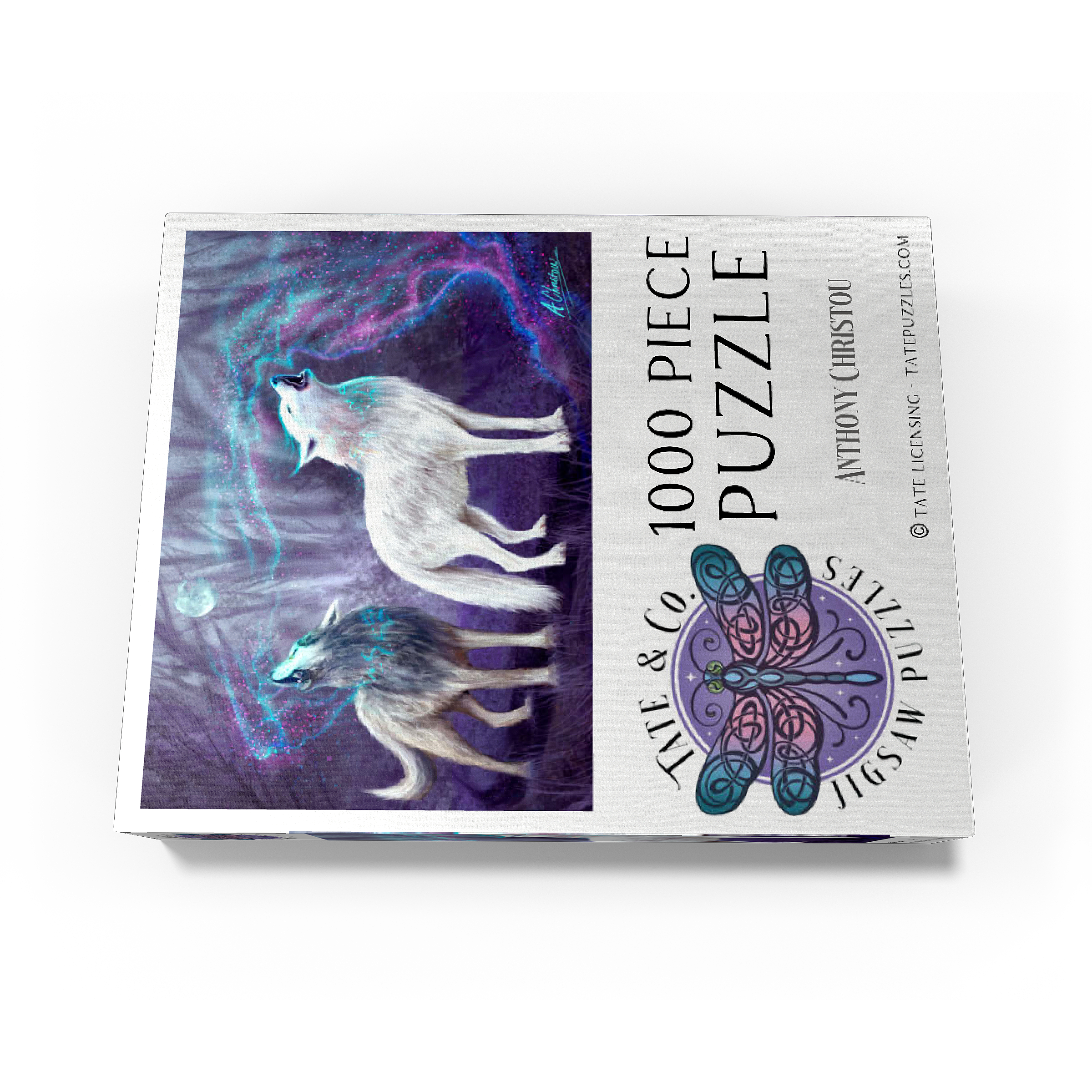 Experience the raw, mystical power of nature with Anthony Christou's -Wolves Howl- This stunning painting captures a breathtaking moment as a majestic white wolf and a fierce gray wolf unleash their calls to the heavens. They stand within a mysterious, purple-lit forest, where an ethereal glow permeates the air. Above them, a luminous full moon bathes the scene in its ancient light, while vibrant magical energy swirls around the wolves, amplifying their powerful song. Christou's artistry beautifully conveys the wild spirit and enchanting allure of these creatures, making -Wolves Howl- a captivating addition to any collection.