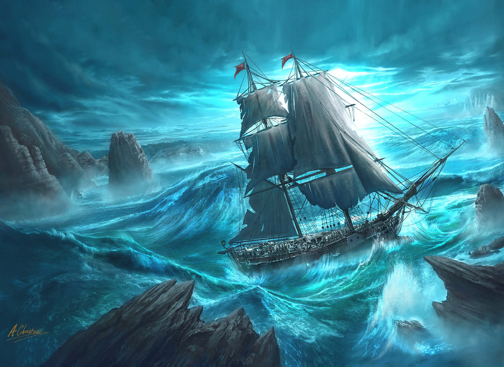 Experience the raw power of the ocean with Anthony Christou's -Dangerous Seas.- This captivating painting plunges you into a tempestuous world where a lone ship battles high seas. The vibrant blue water crashes against the vessel, its frothy waves reaching skyward with dramatic force. Jagged rocks loom in the foreground, underscoring the perilous journey. Christou's masterful brushwork perfectly captures the intensity and grandeur of nature's fury, making this a truly arresting piece for any art enthusiast. It's a testament to resilience and the untamed beauty of the open ocean.