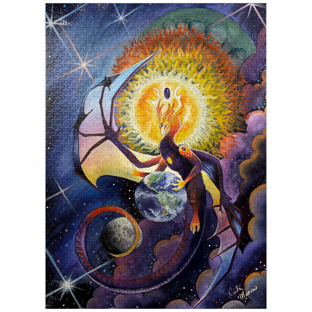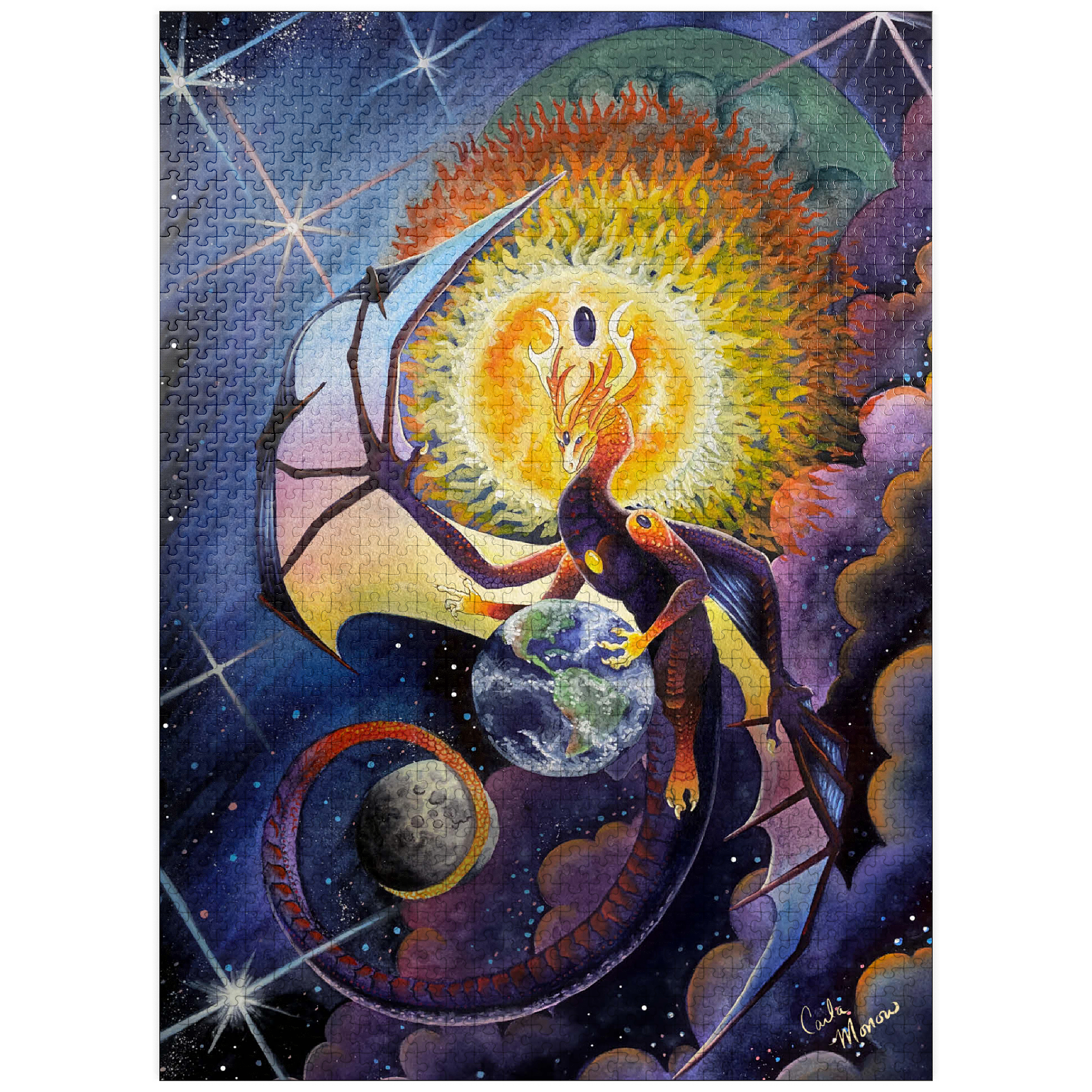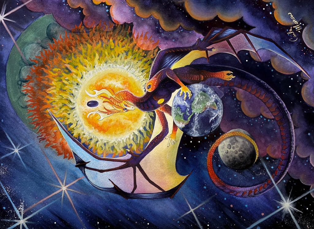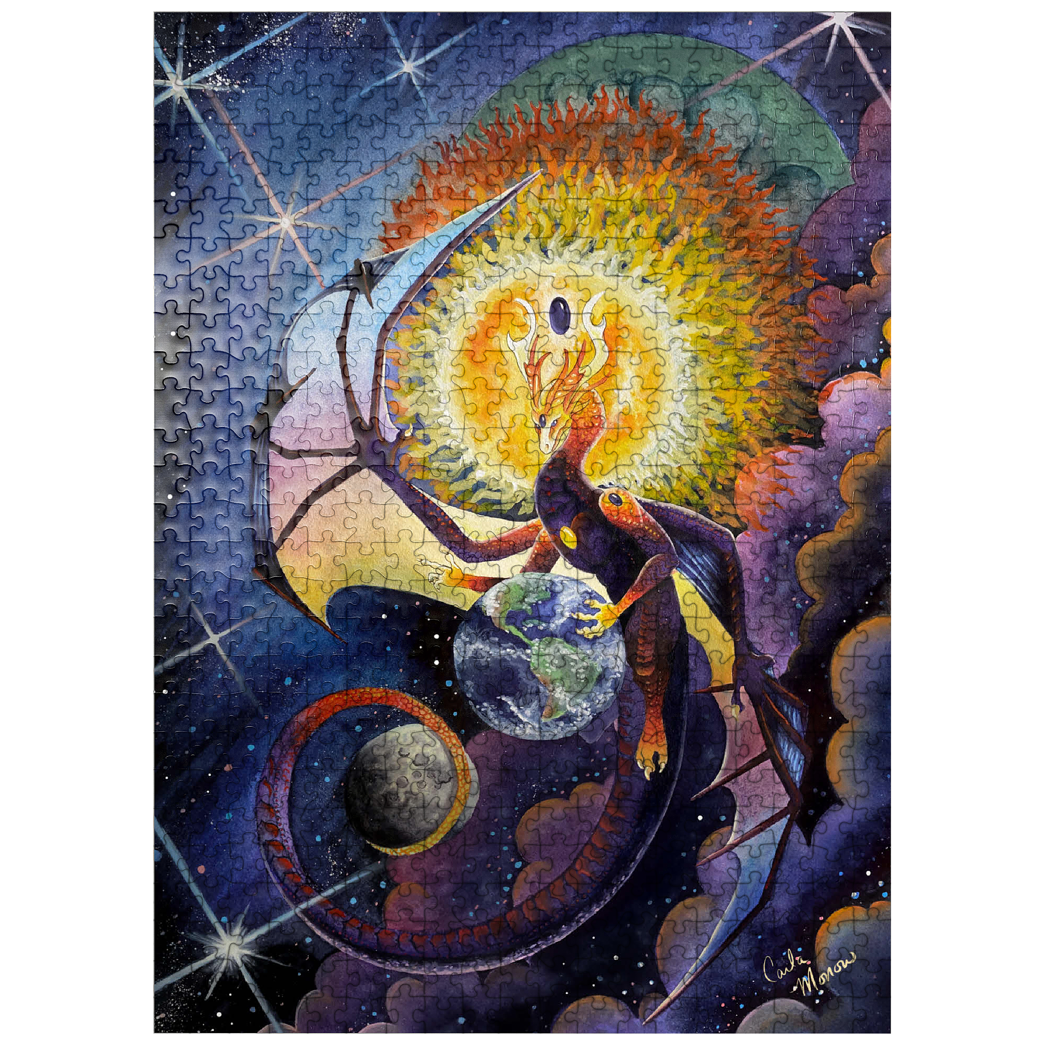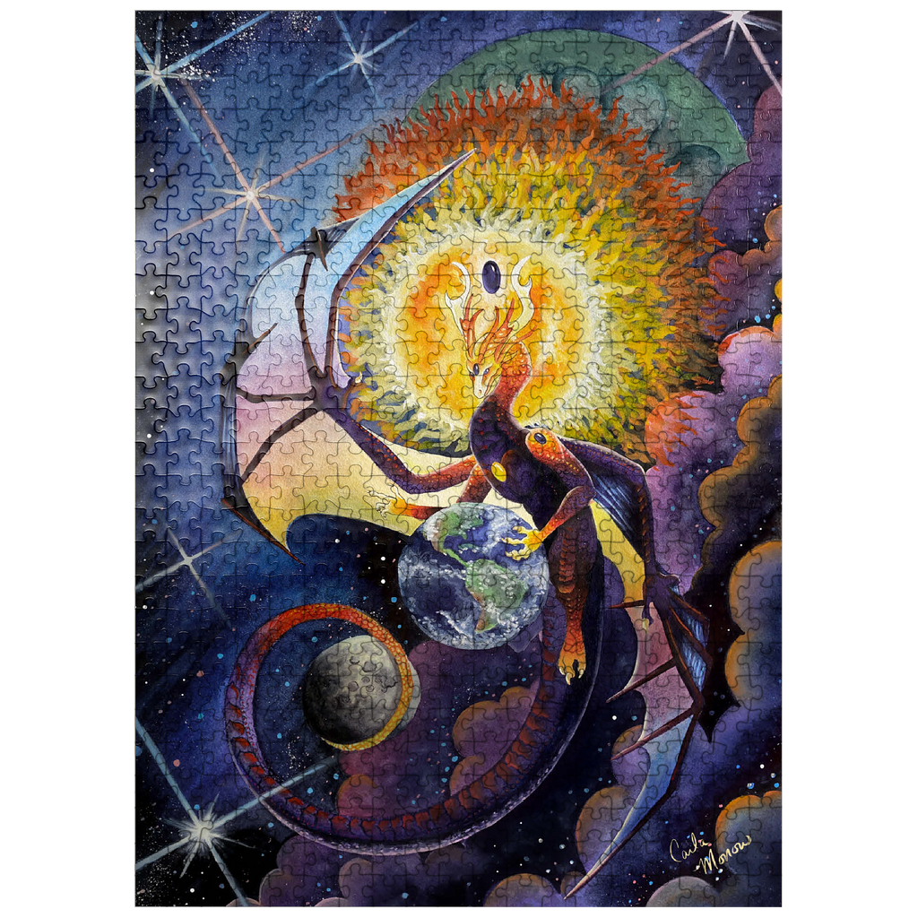 Across the sky the great being soars, carrying the heavens upon its back and the earth nestled in its talons. The Old One, The Great One, All That Is. Carla Morrow's All that Is dragon is one of the great Source dragons. They are the creators of all things and help facilitate the movement of the heavens. They rule over the mysteries of life and the place where our inspiration springs from. They hold the spark of all life within their chest and breathe all things into being. Sometimes we are lucky enough to feel this spark flow through us and are able to create amazing things. These dragons inspire us to always trust our imaginations.