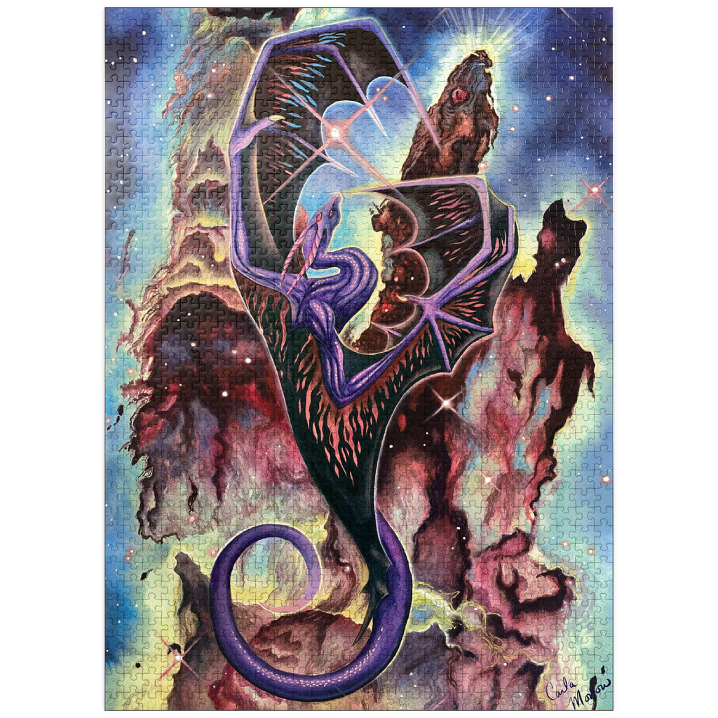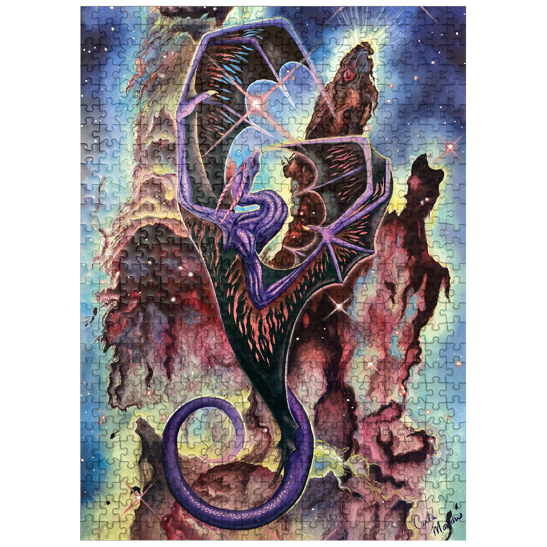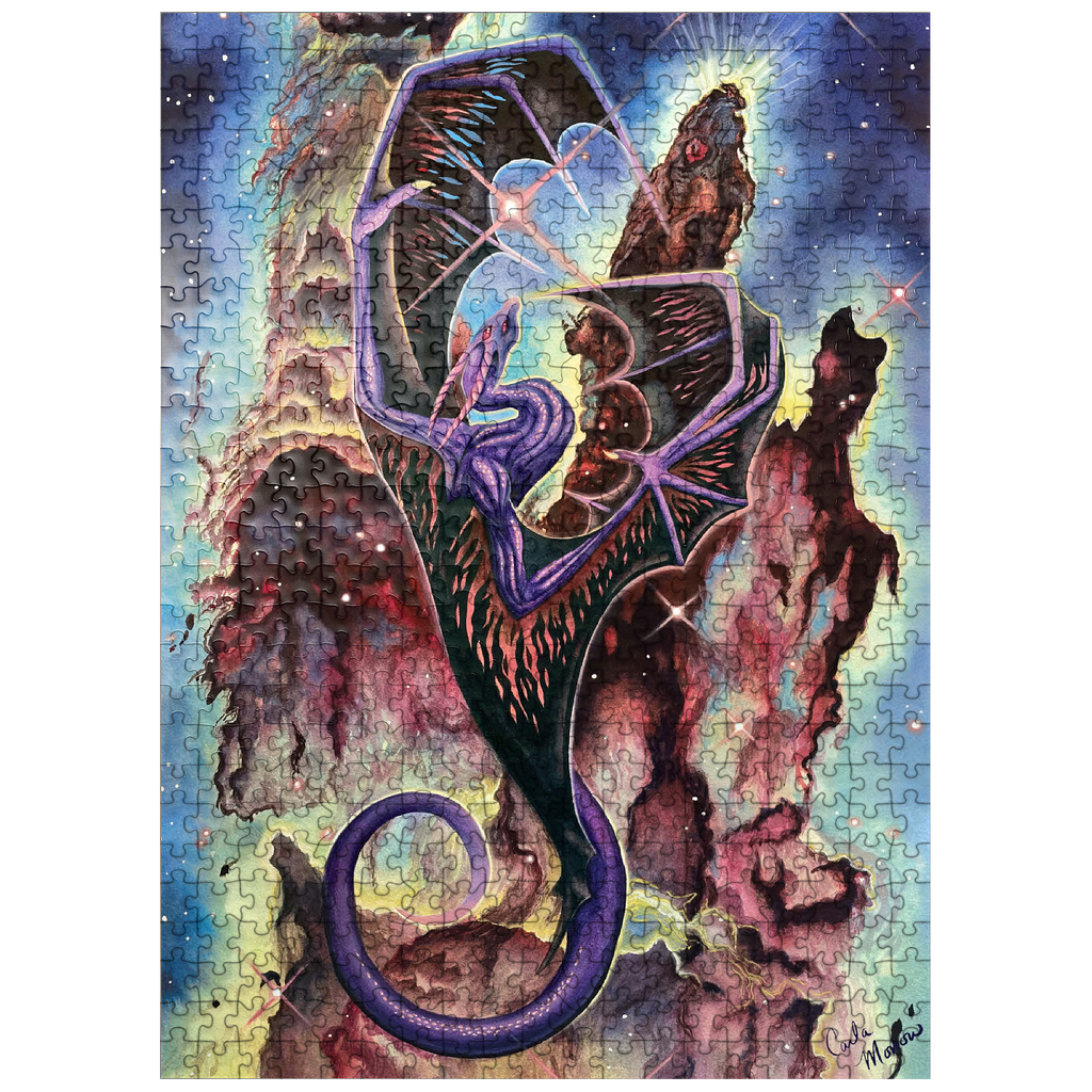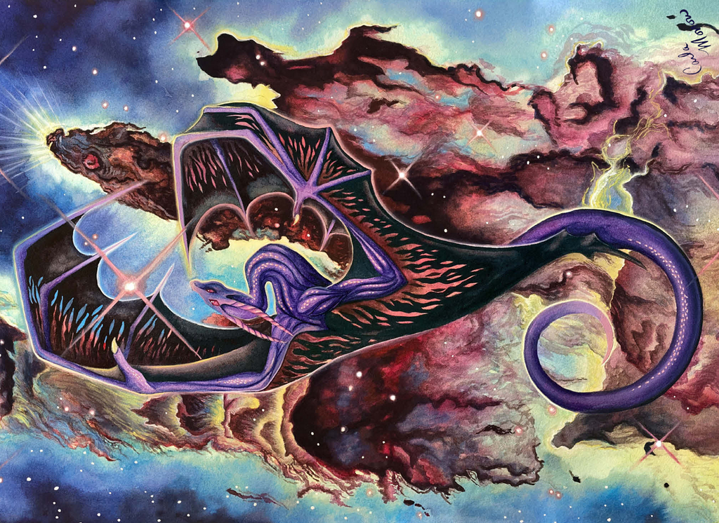 Swiftly she soars through the silence of space. She is the energy and the embodiment of this nebula, the Pillars of Creation. Ever connected, she is of it and it's keeper, tending the stars over the millennials as it turns and flies ever onward through space. She revels in the beauty that we can just now see, and may never fully understand during our lifetime. She tells us to create. No matter what it is, no matter how -good- or -bad- you think you are, just create. Revel in your creativity, experiment and play. Not FOR anyone or anything. No need to fear judgement, for this moment of inspiration is for no one but yourself. It's the ACT of creating that matters, not the end product. Then do it again.