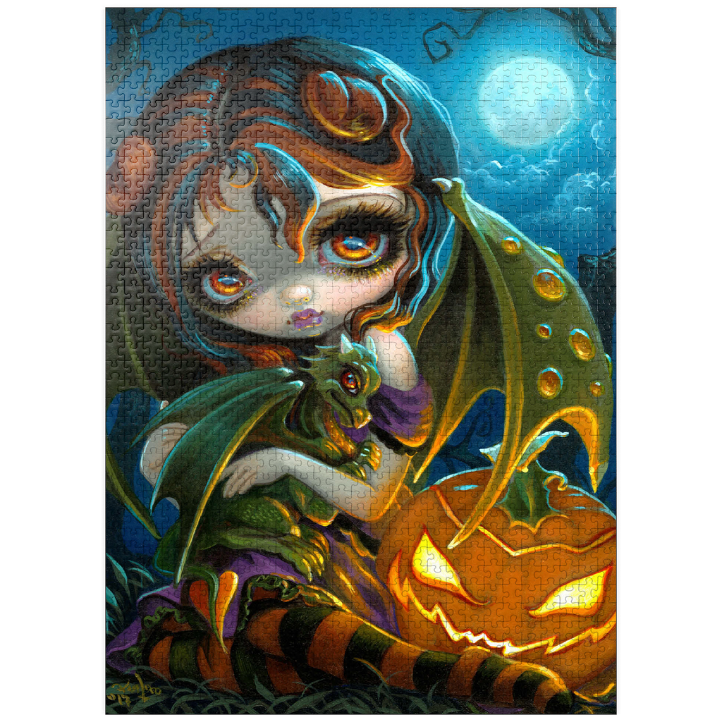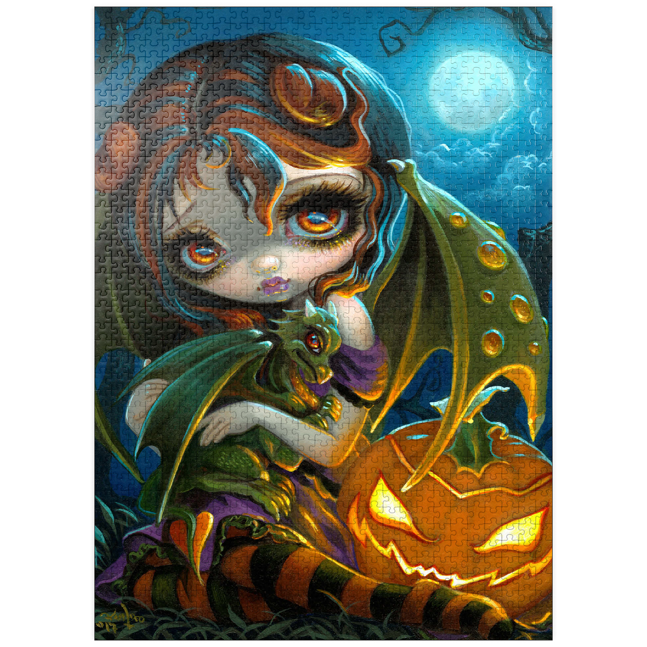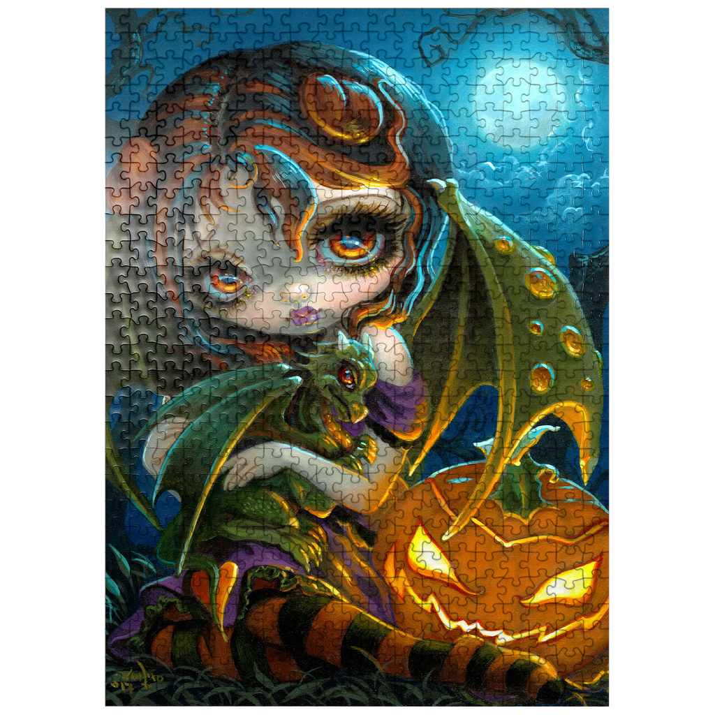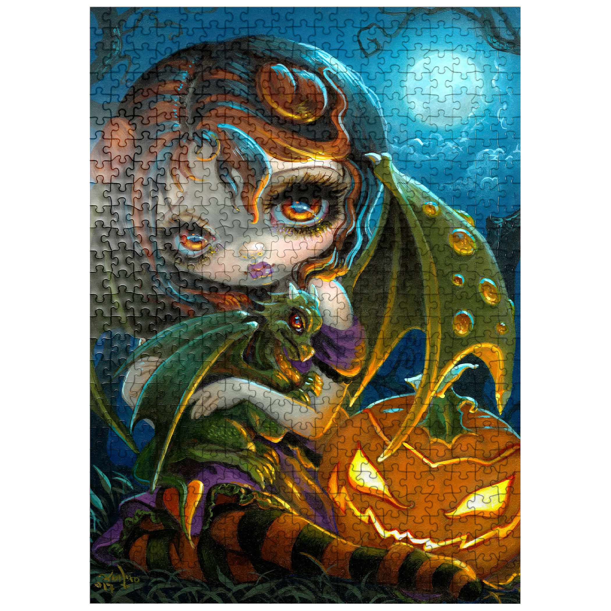 Celebrate spooky season with the -Halloween Dragonling- jigsaw puzzle! This delightful puzzle features a grinning Jack O'Lantern alongside an adorable dragon. Perfect for Halloween enthusiasts and puzzle lovers, this festive scene captures the charm of the holiday. Piece together this whimsical image and add a touch of Halloween magic to your home.