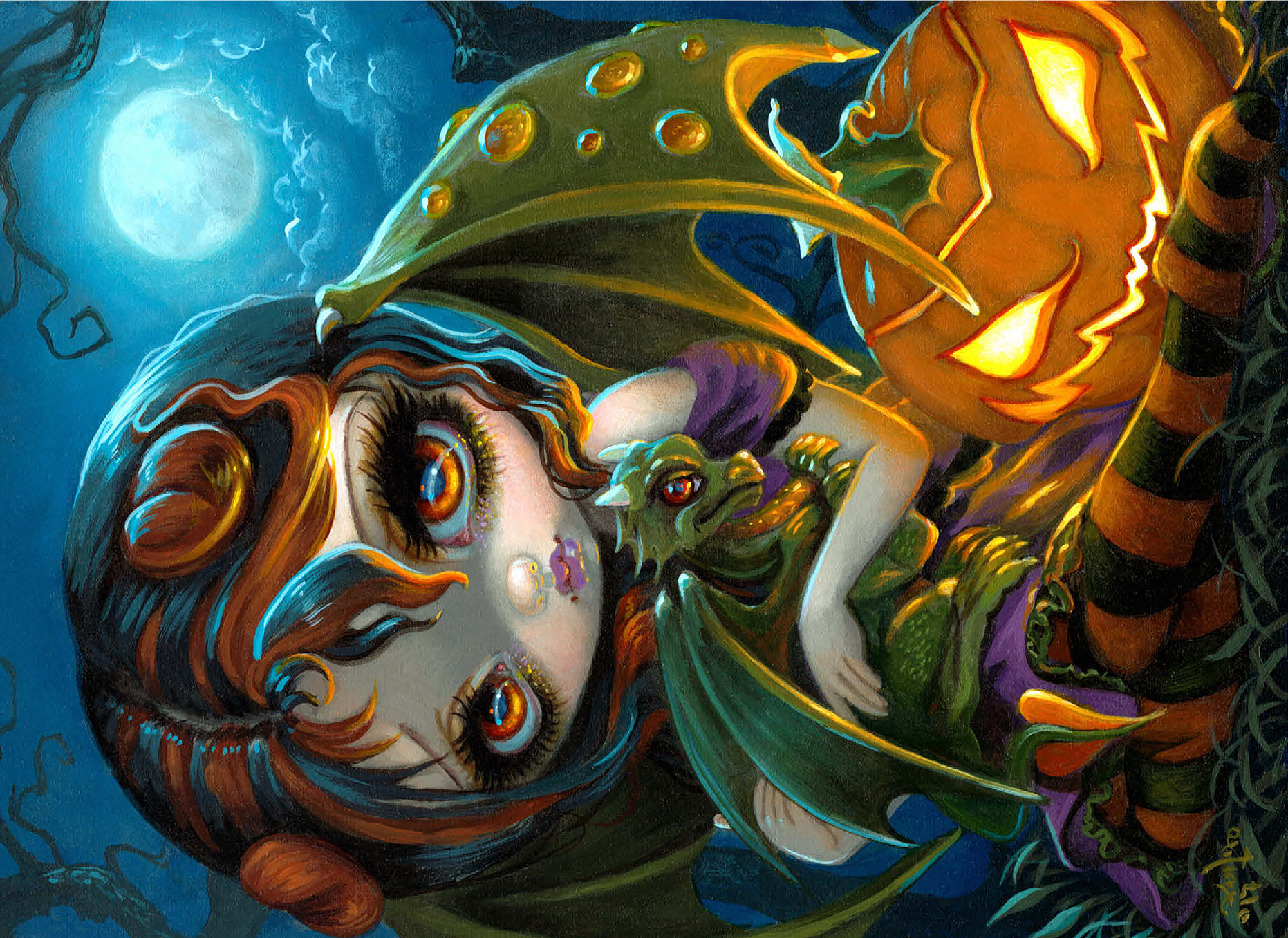 Jasmine Becket-Griffith is a traditional acrylic painter, combining elements of realism with fantasy and the surreal. Historical and spiritual references are intertwined with fairy tales and the beauty of nature. Her trademark liquid-eyed maidens evoke a wide range of emotions and responses to the surrounding imagery. It is her goal to bring a bit of magic and mystery to the mundane world with every painting! Jasmine’s images appear in many books, oracle decks and magazines as well as countless merchandising lines such as the Bradford Exchange and Hamilton Collection, and her artwork with the Walt Disney Company, Lucasfilm, and more. Her paintings have a very wide appeal, appearing in public and private collections throughout the world, and she maintains an ever-growing legion of fans from all walks of life with her “Strangeling” brand and the “Death & the Maiden” co-brand with her partner David Van Gough. Jasmine has been showing her work professionally since 1997. She is a full-time painter, working from her studios in Long Beach and Julian, California. Her work can be found at galleries across the US, including the Corey Helford Gallery in Los Angeles, Dark Art Emporium in Long Beach, and Disney’s WonderGround Galleries in Disney Springs, the Walt Disney World Resort and Disneyland. More from the artist