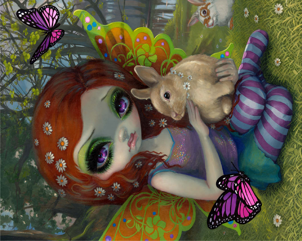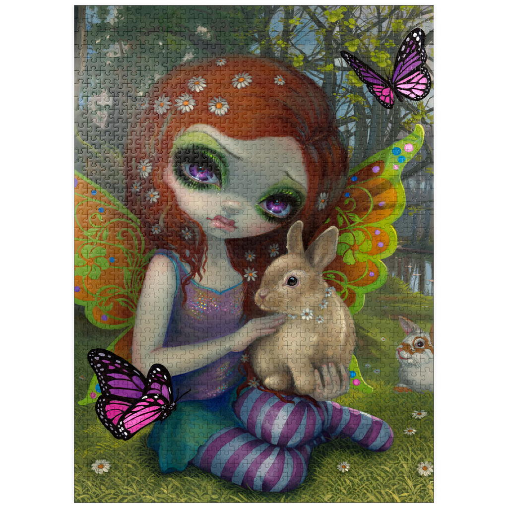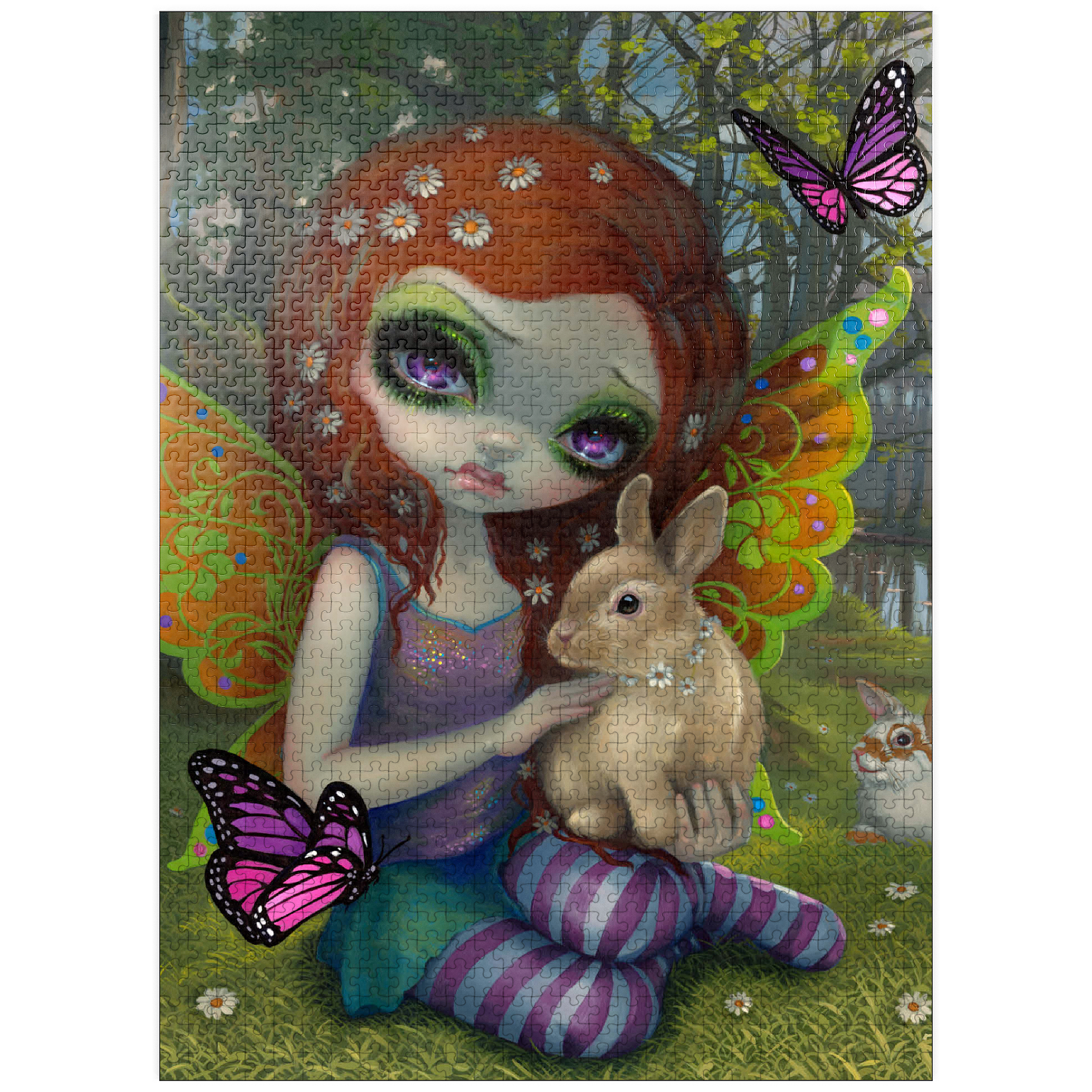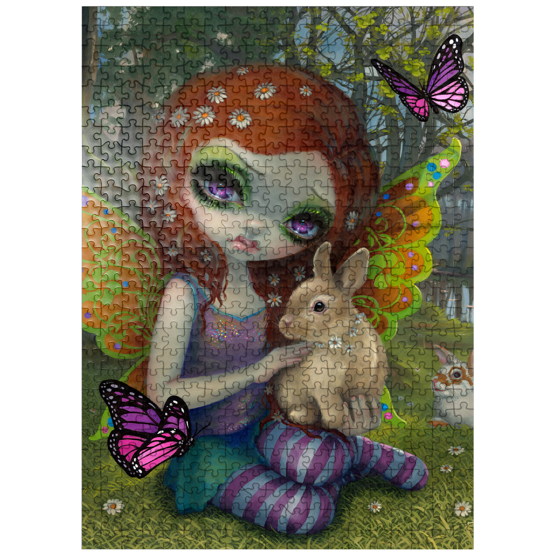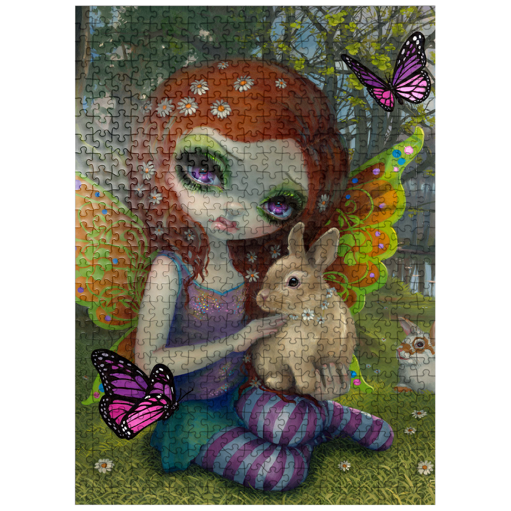 Welcome spring with this enchanting puzzle! Assemble the Spring Fairy from the -Four Seasons- collection, surrounded by adorable bunnies and vibrant blossoms. Piece together her bright, springy colors and the romantic 19th-century landscape, all connected by beautiful butterflies. A delightful puzzle celebrating the season of renewal!