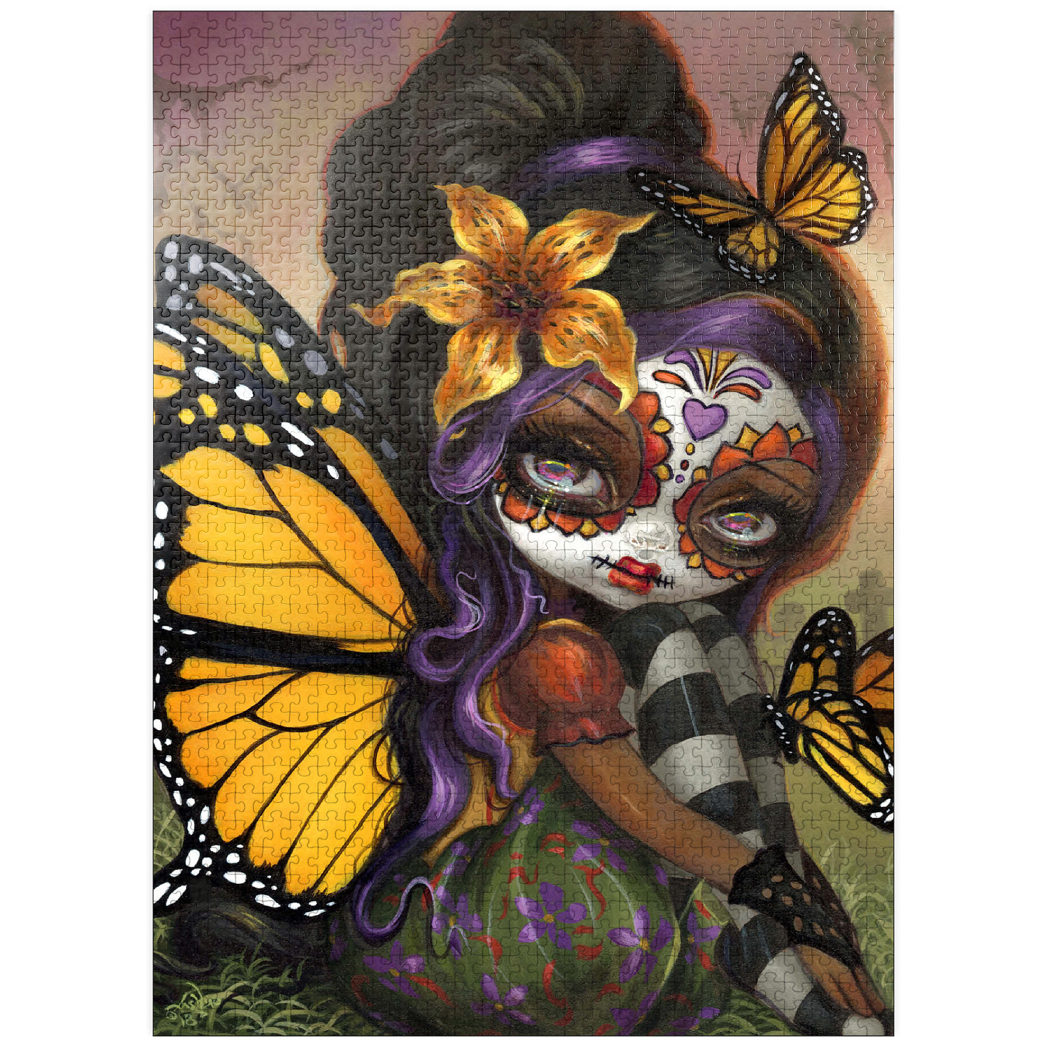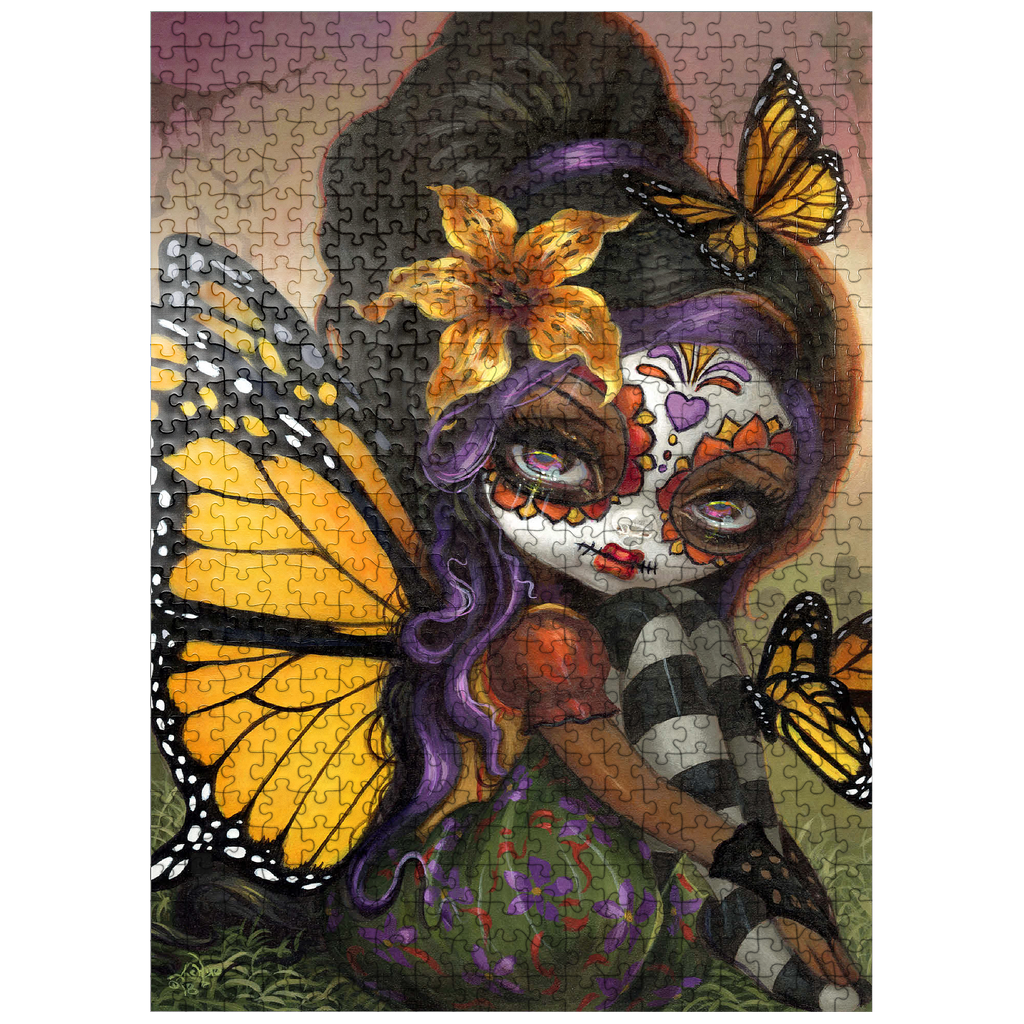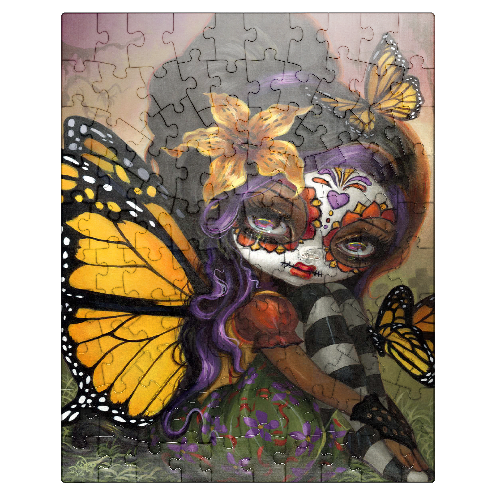 Unravel the sweet spirit of Isabella in this Dia de los Muertos puzzle! Piece together her traditional Calavera face paint and the stunning Monarch butterfly wings that mirror her fluttering companions. Immerse yourself in the beauty and symbolism of this -Milagros- series artwork. A soulful and vibrant puzzle experience!
