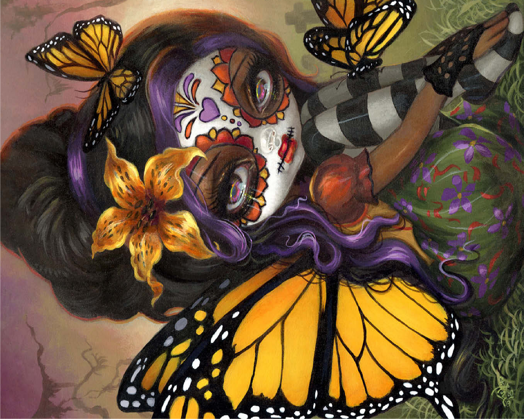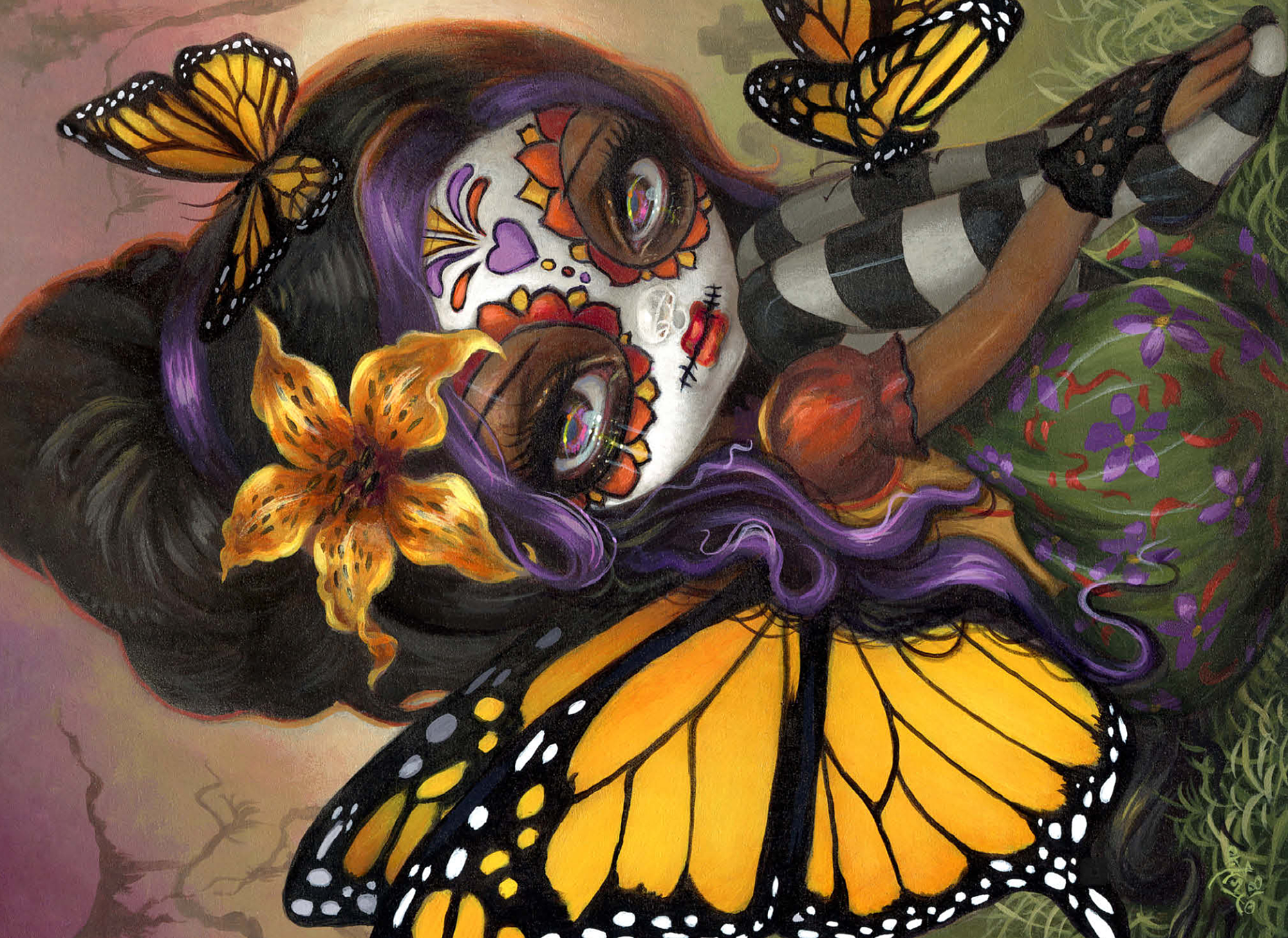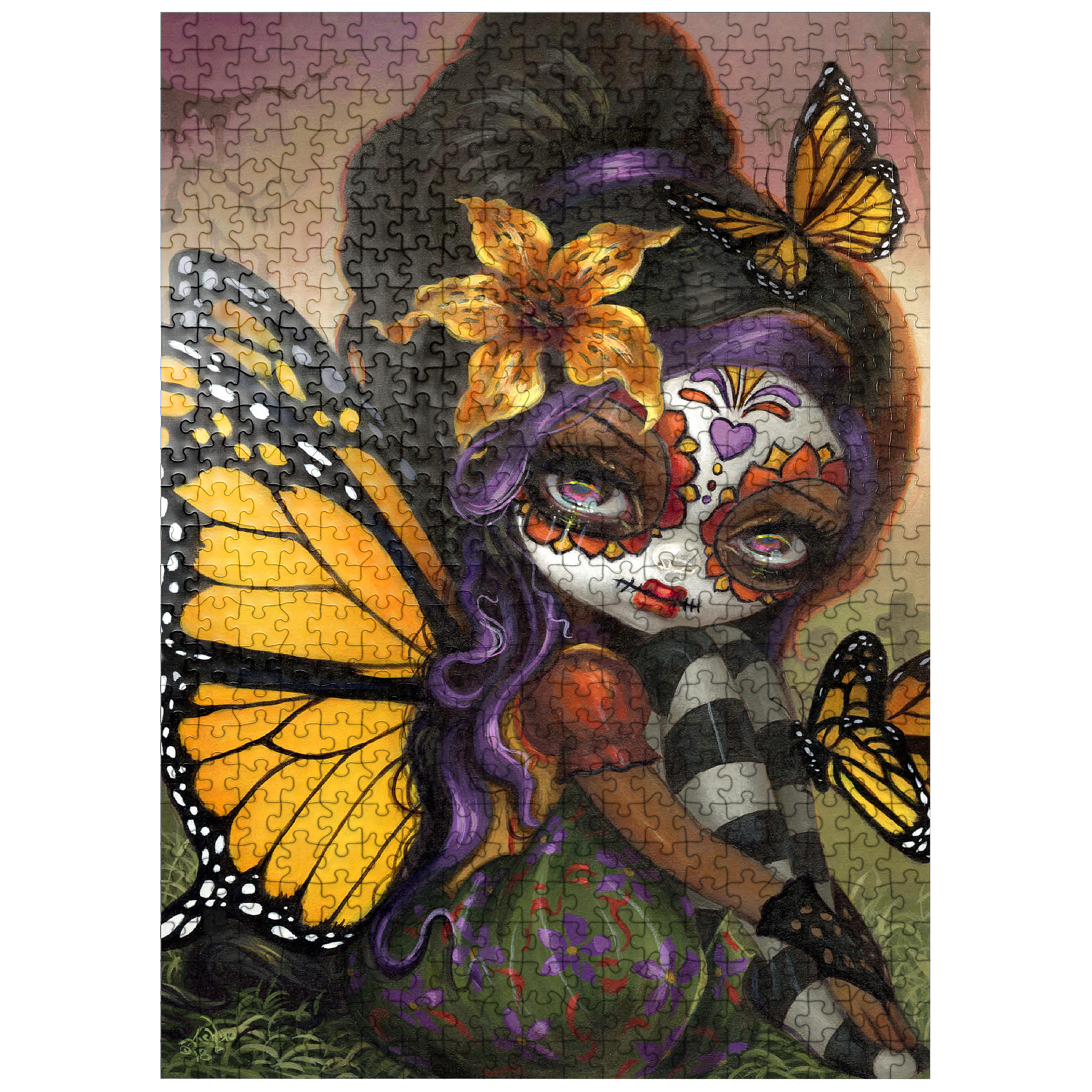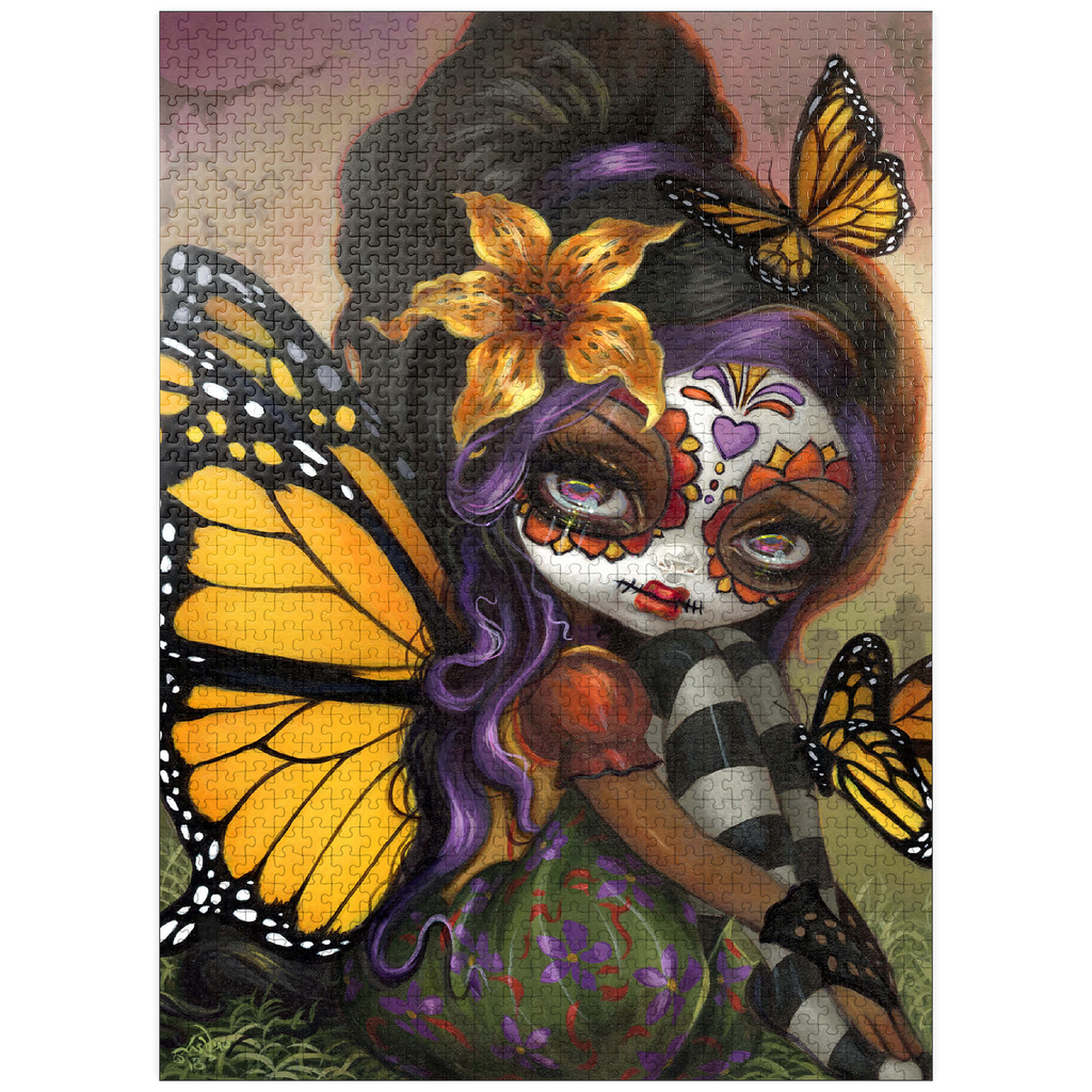 Unravel the sweet spirit of Isabella in this Dia de los Muertos puzzle! Piece together her traditional Calavera face paint and the stunning Monarch butterfly wings that mirror her fluttering companions. Immerse yourself in the beauty and symbolism of this -Milagros- series artwork. A soulful and vibrant puzzle experience!
