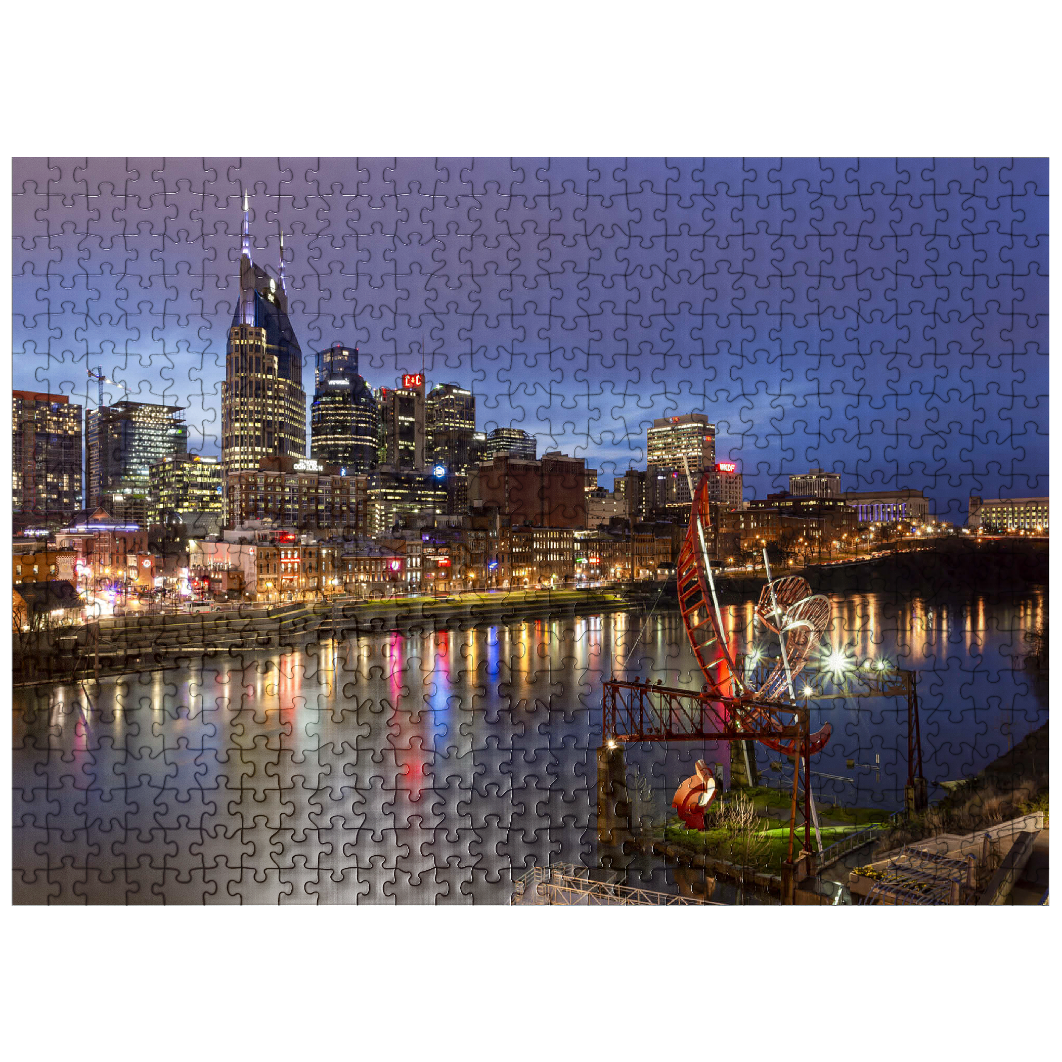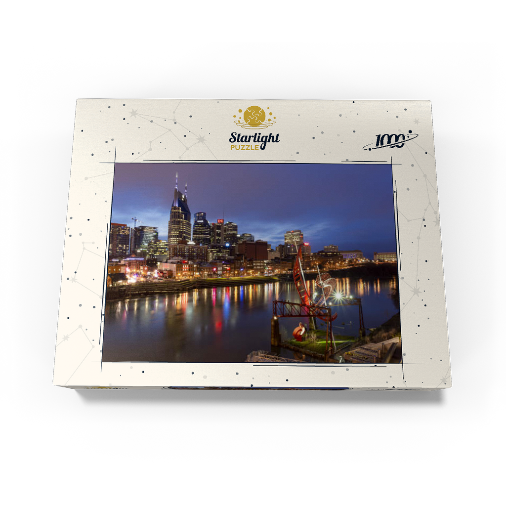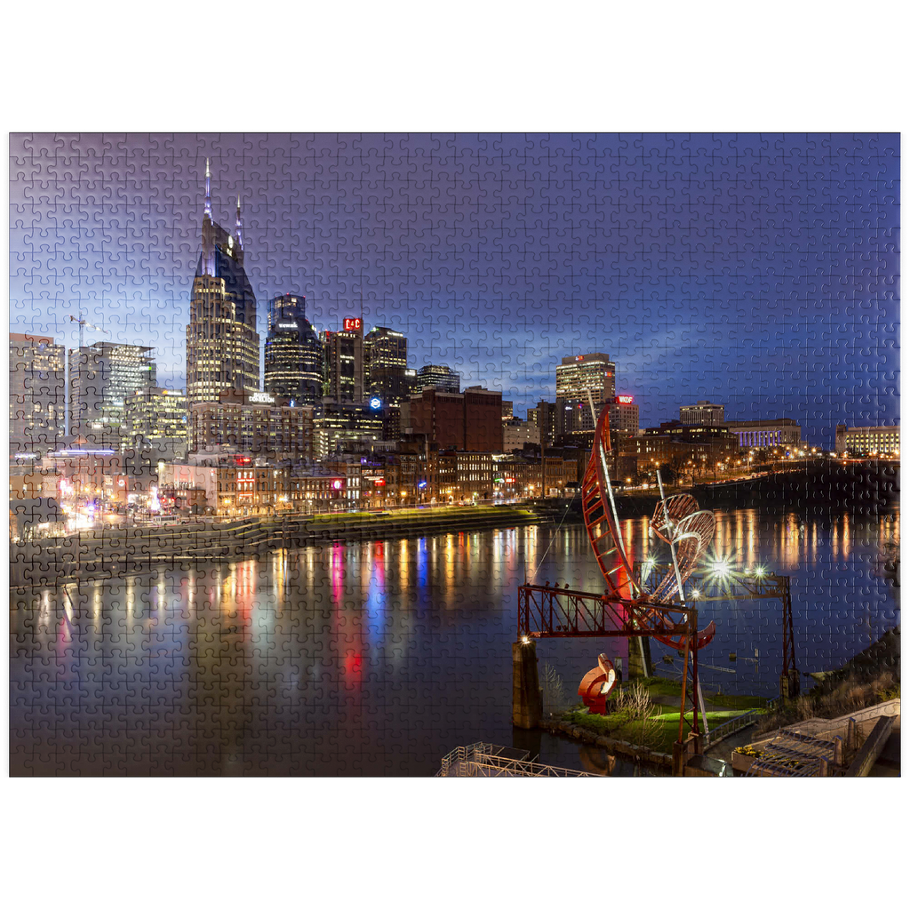 Nashville Skyline with Cumberland River Reflections at Dusk