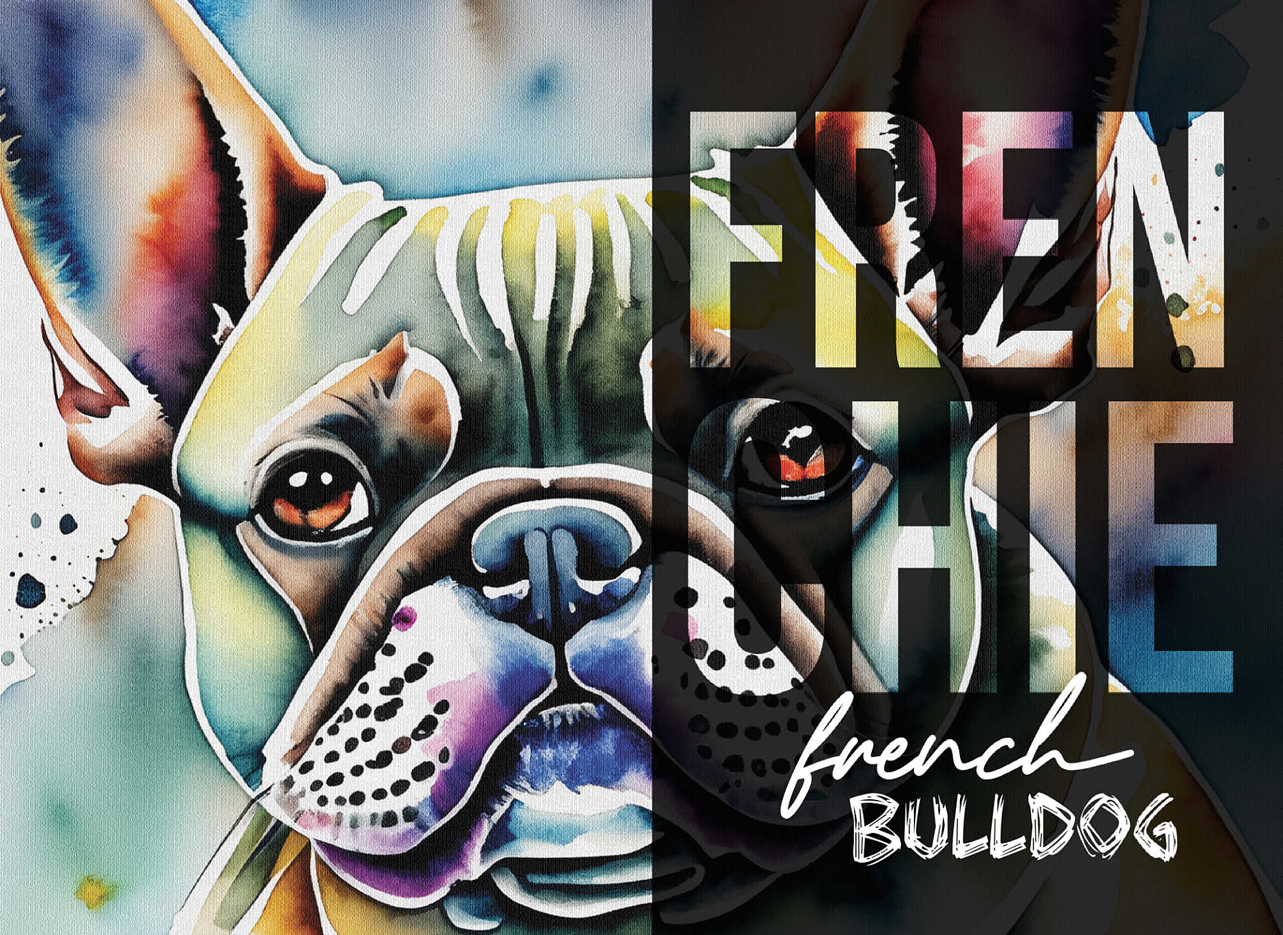 The watercolor canvas collection is a unique way to display some of your favorite animals from the wild-combined with a text overlay of each animal's name. Designed to mimic an authentic watercolor with vivid splashes of color and a canvas-like background-this Frenchie is a must-have for any wall. Choose from many other animals in this collection and display them all together to bring brilliant hues of color into your home.