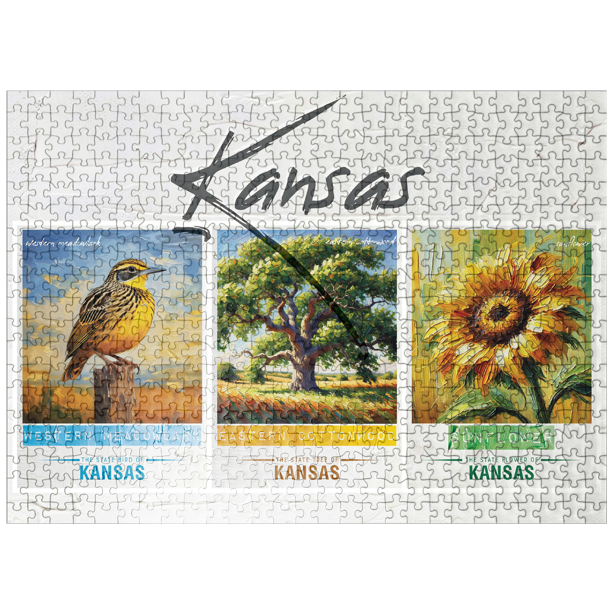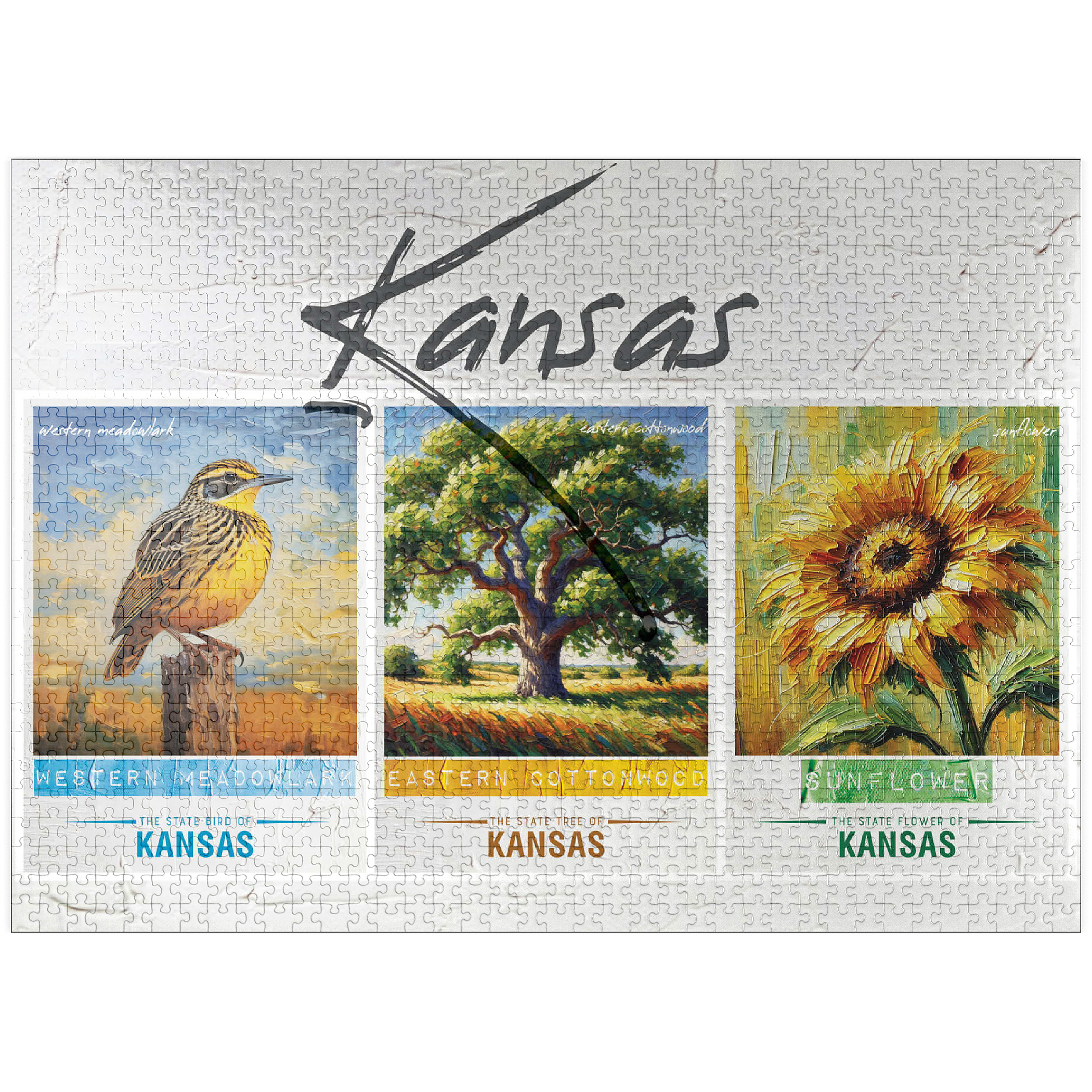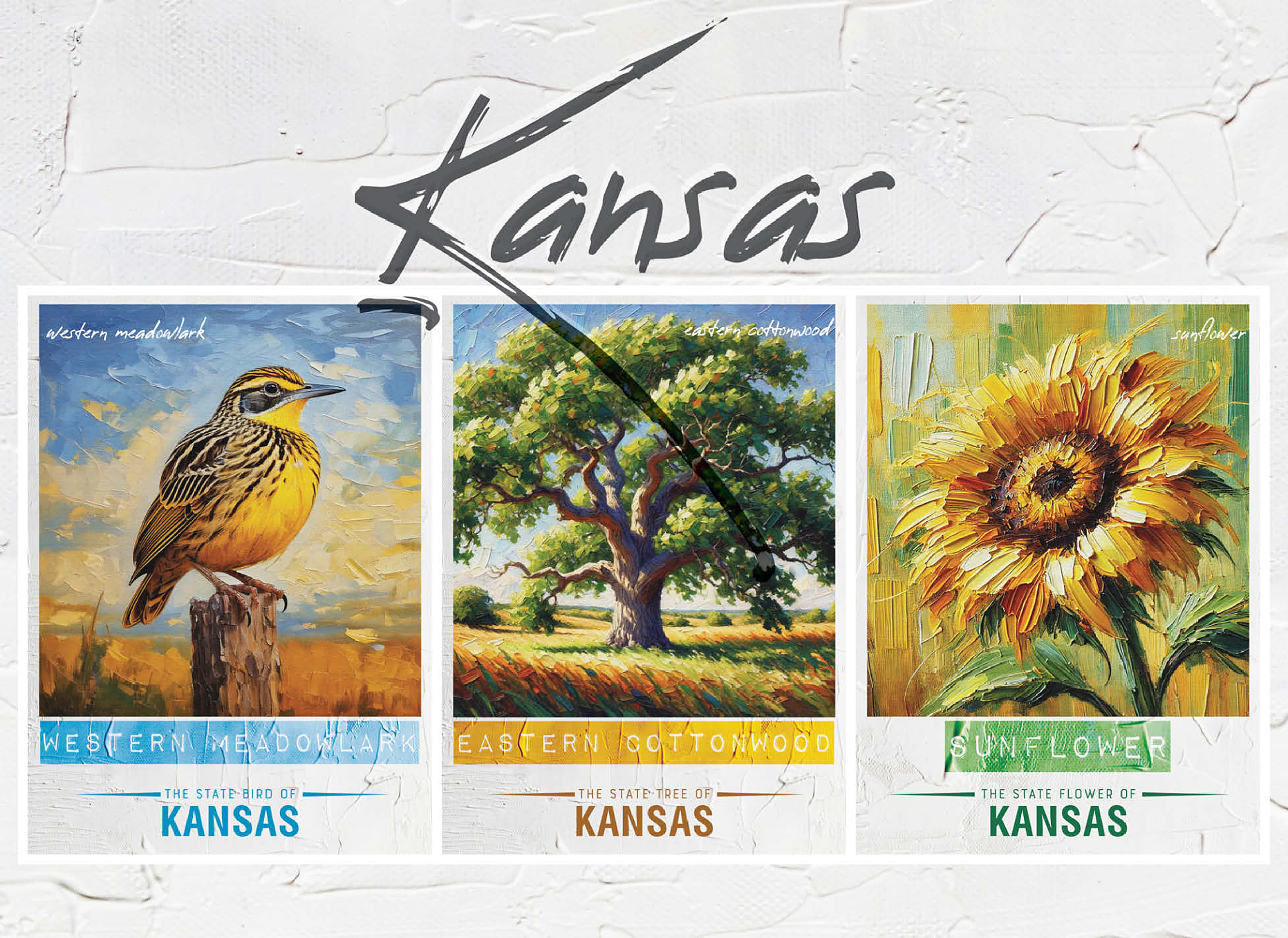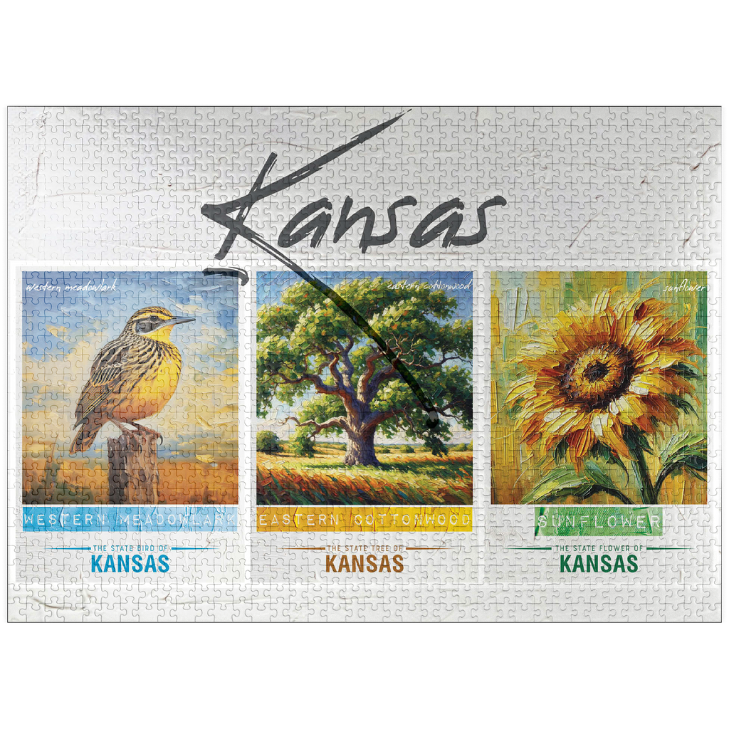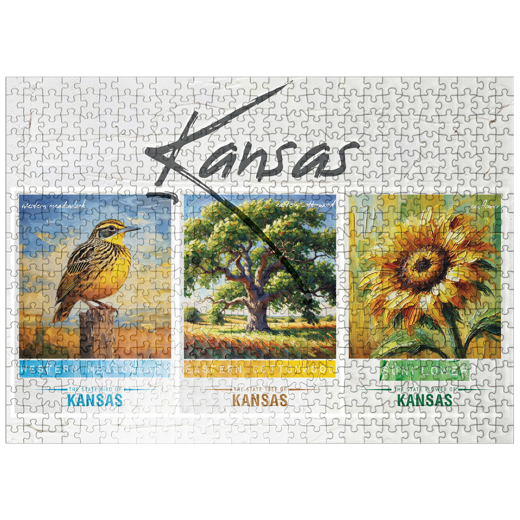 Kansas: Bird, Tree, Flower- State Symbols Collage Series