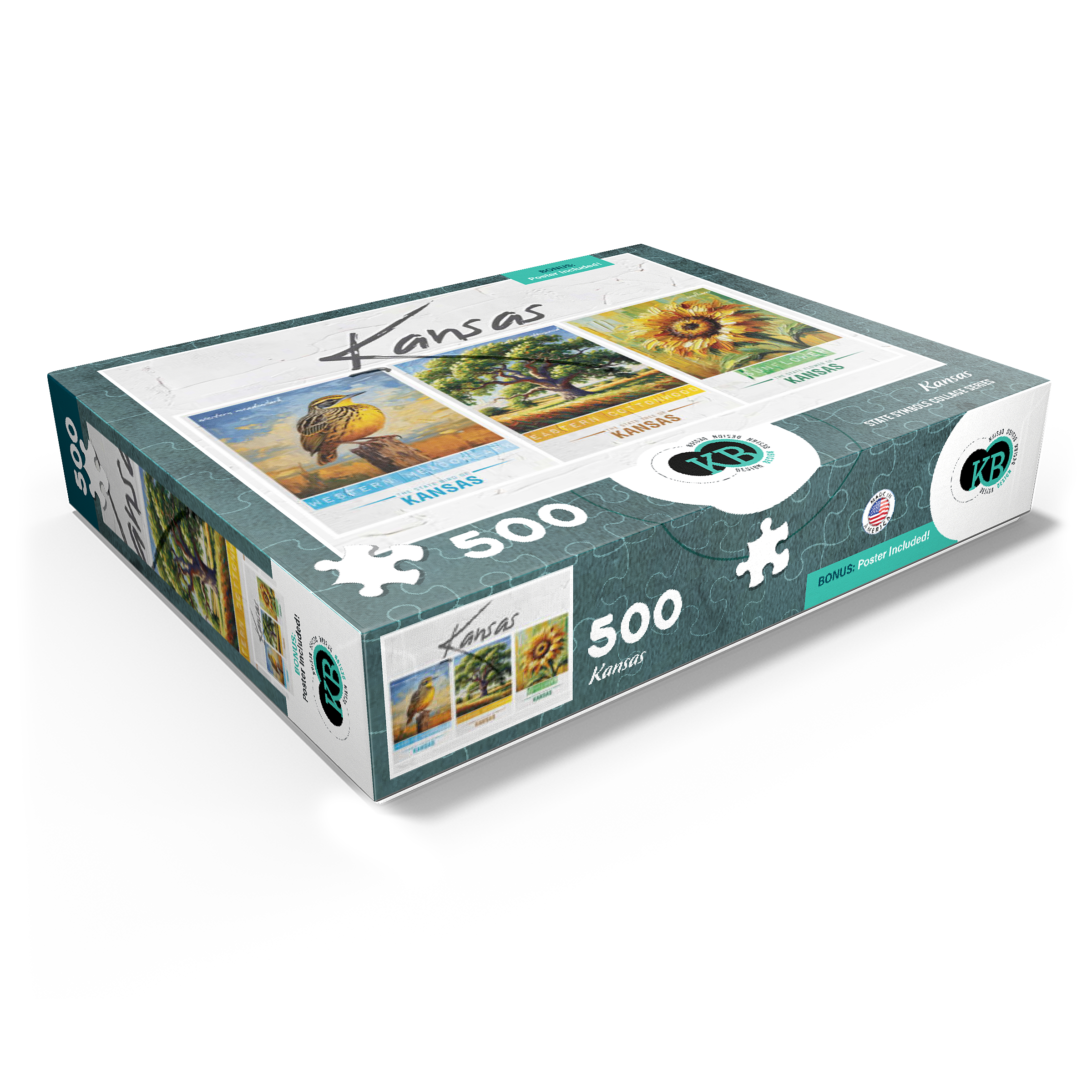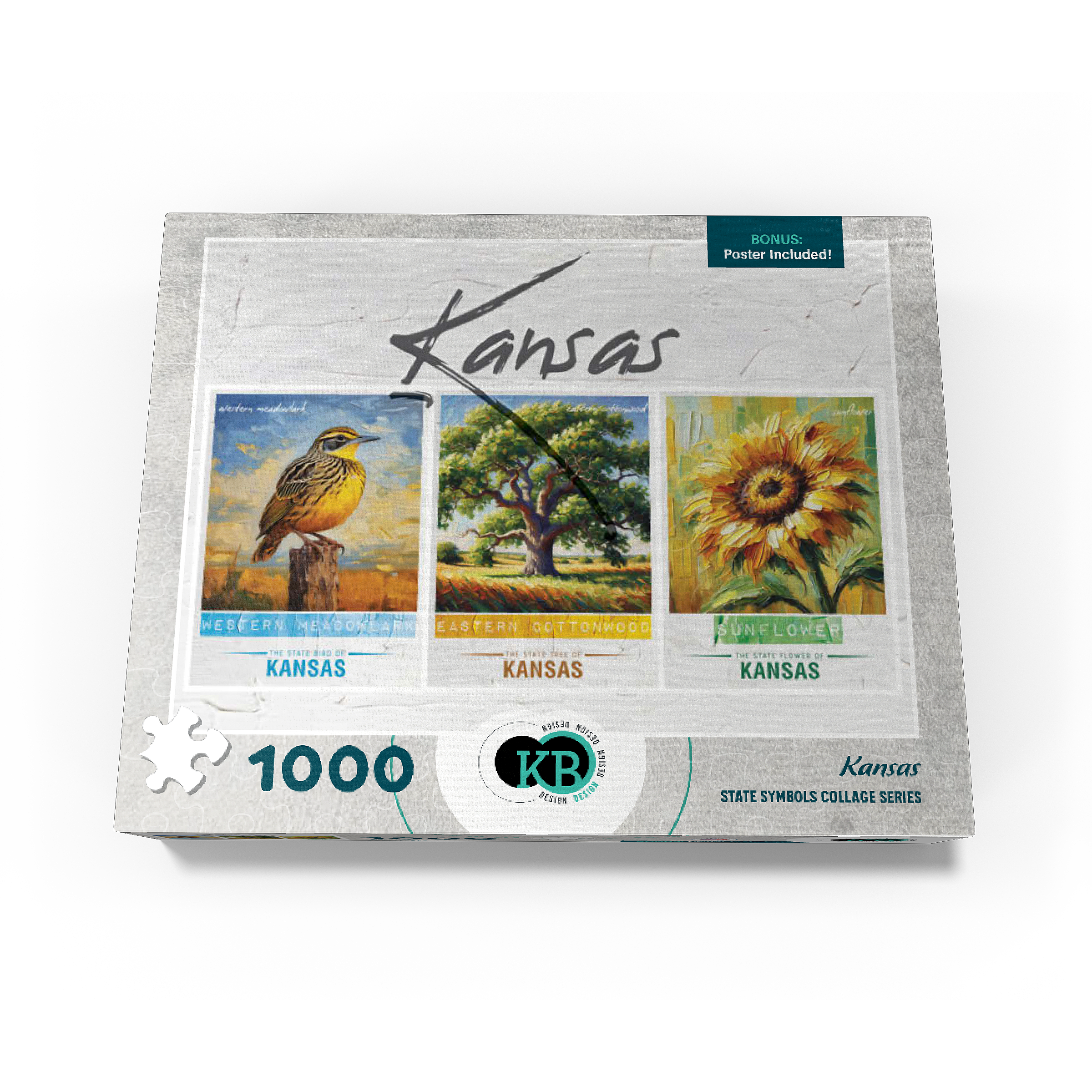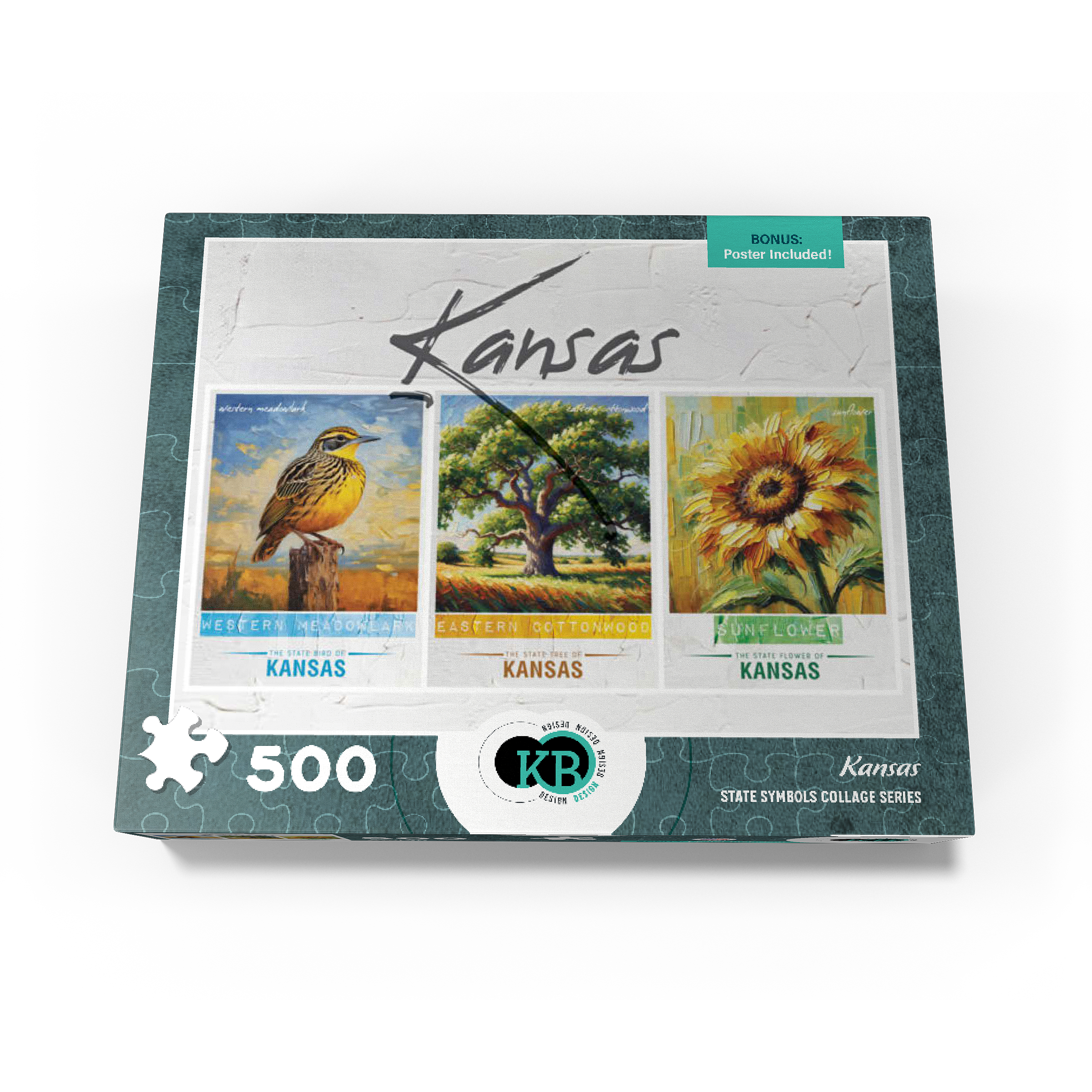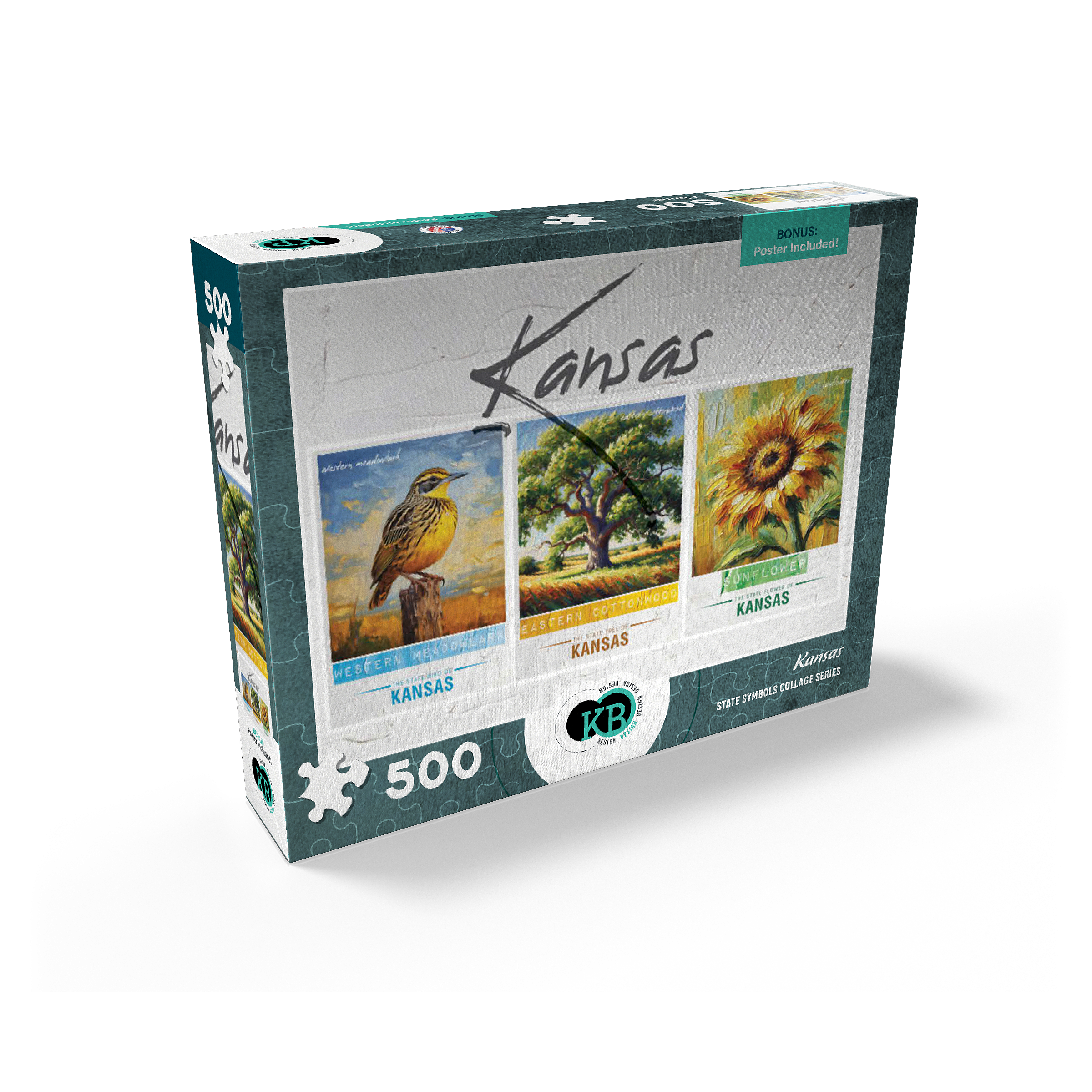 Kansas: Bird, Tree, Flower- State Symbols Collage Series