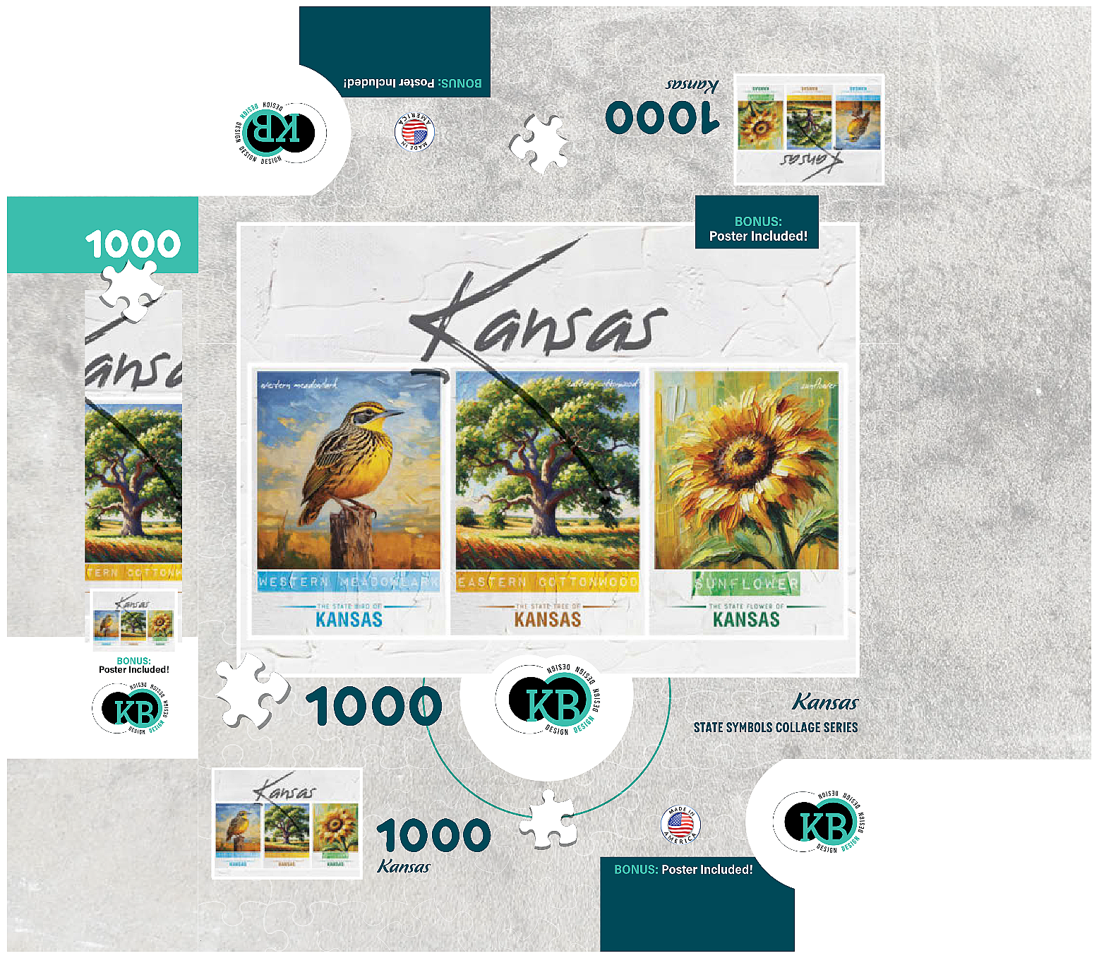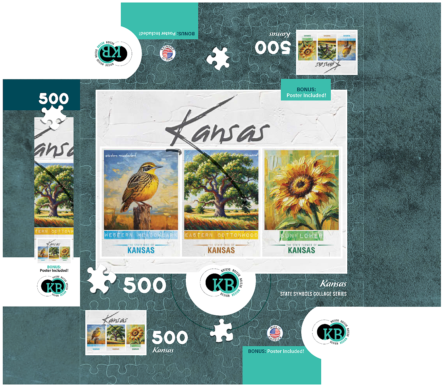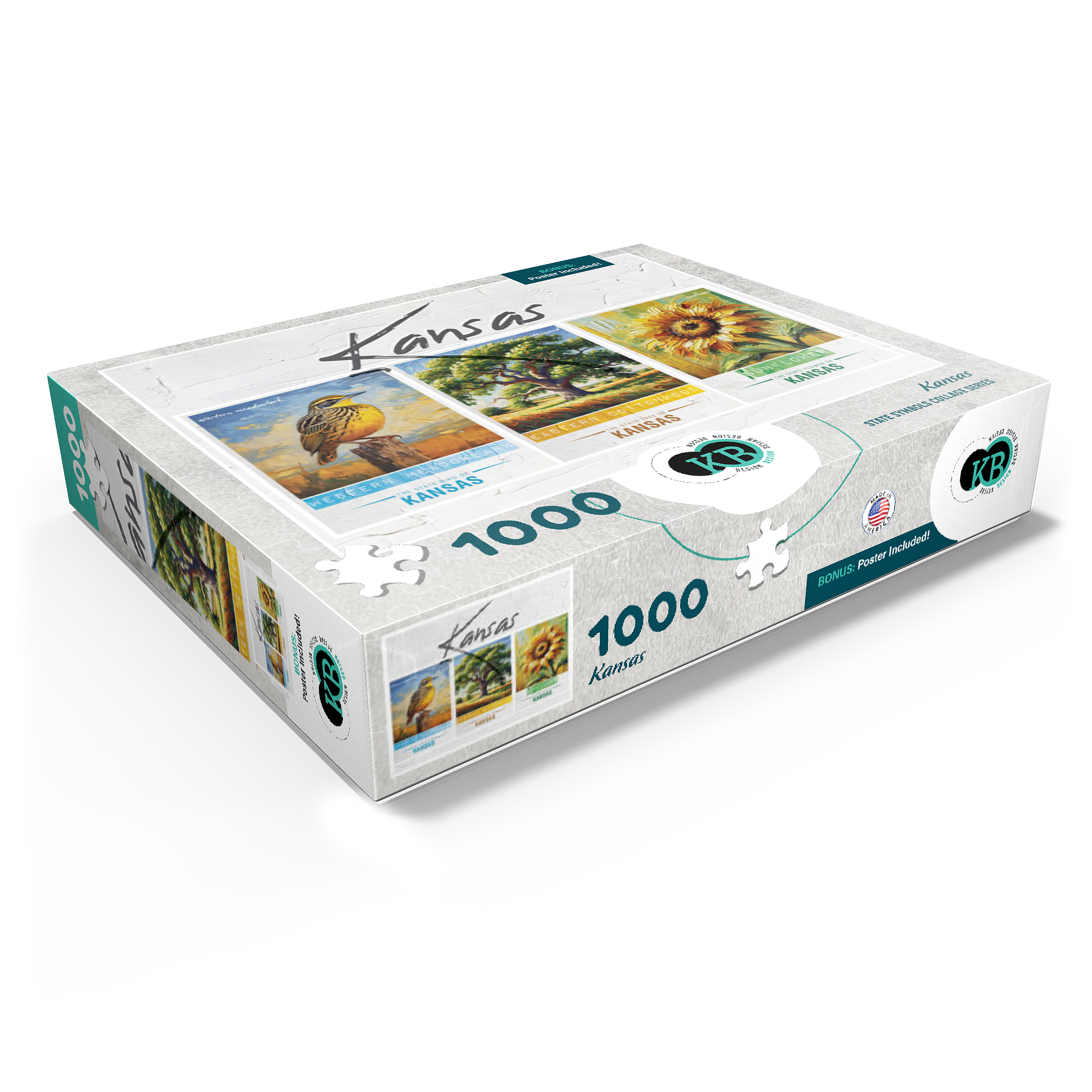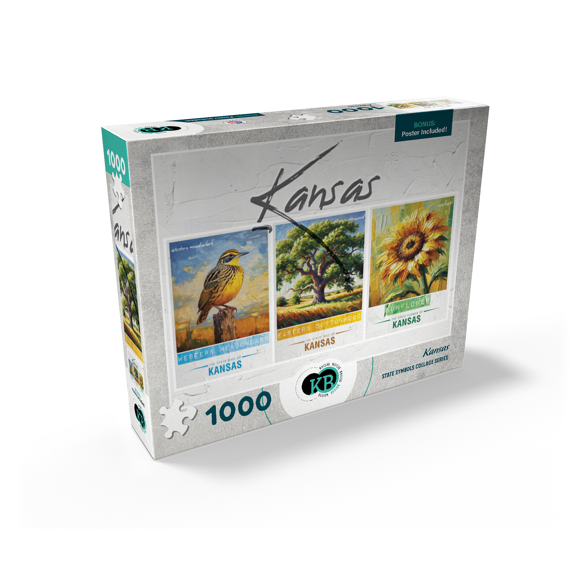 Kansas: Bird, Tree, Flower- State Symbols Collage Series