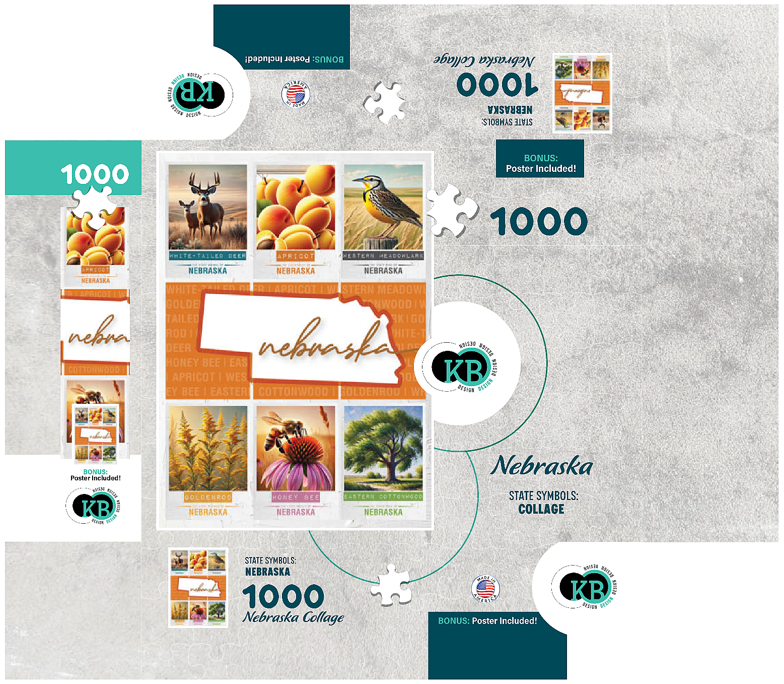 The State Symbols Posters are a fun, colorful way to show your state pride. each poster features a collage of the state: animal, fruit, bird, flower, insect, and tree from the region. this would make a great gift for a fellow out-of-state puzzle-lover-or go on an 'adventure across the country' and collect them all for yourself!
