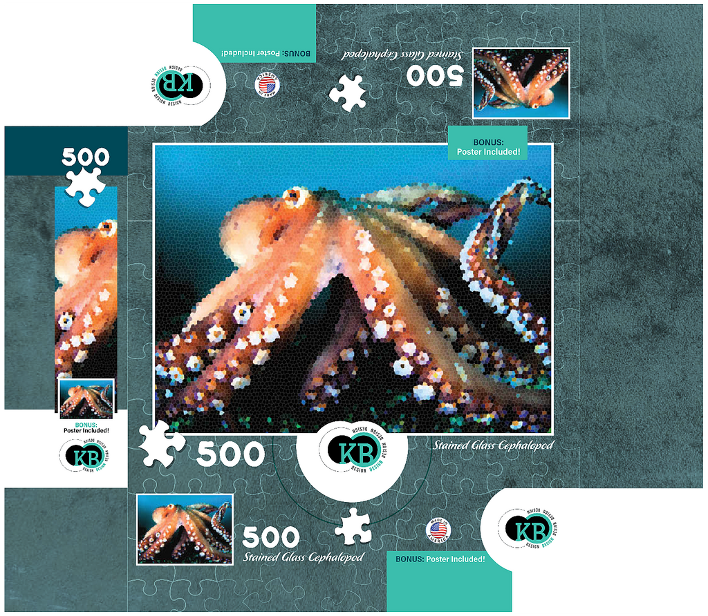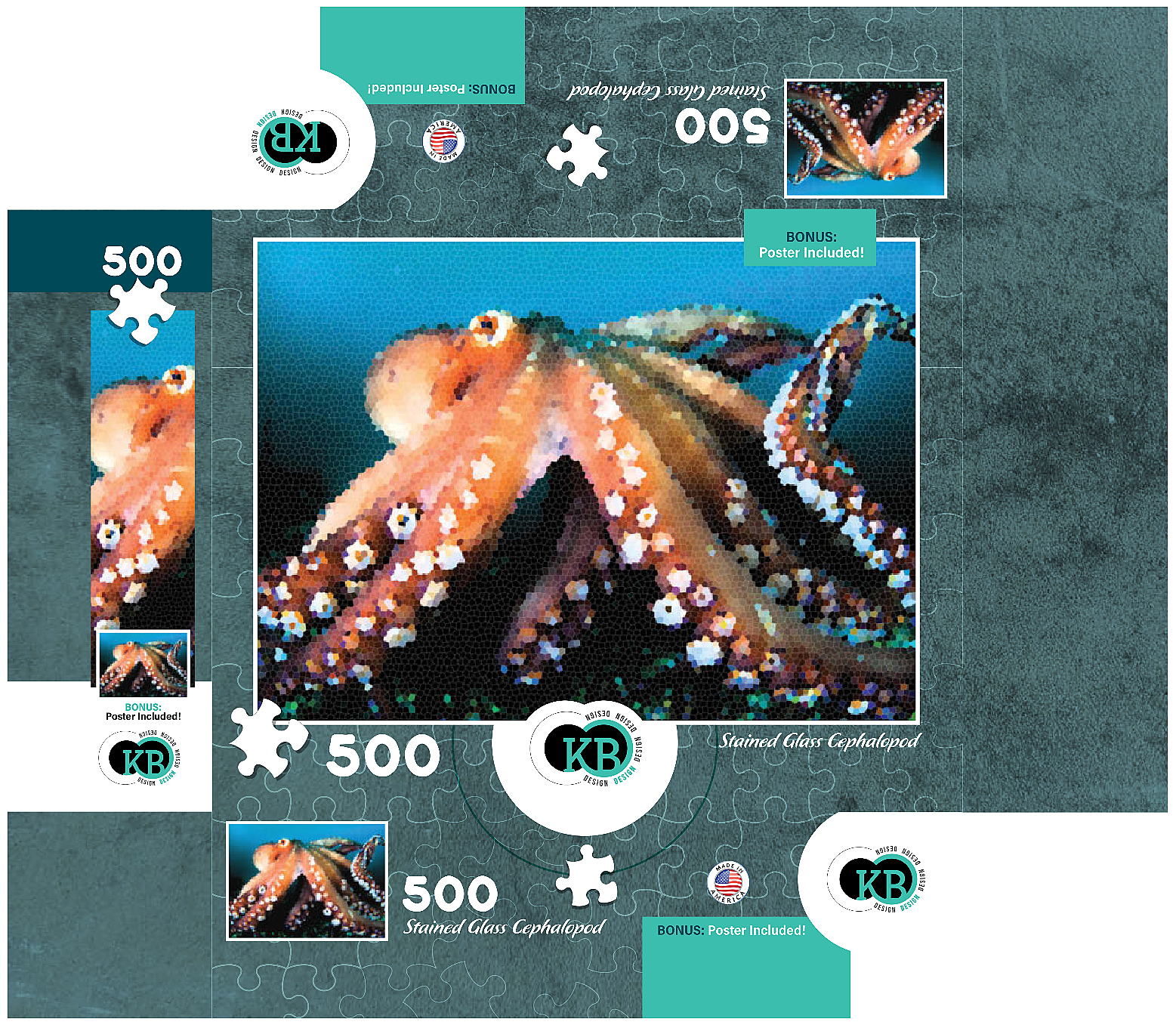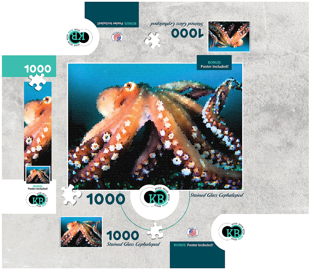 The abstract stained glass collection is a unique way to display some of your favorite subjects in artistic fashion. Designed to mimic the beauty of a stained glass window with bold panels of color-this octopus is a must-have for any wall. Choose from many other puzzles in this collection and display them all together to bring brilliant hues of abstract color into your home.