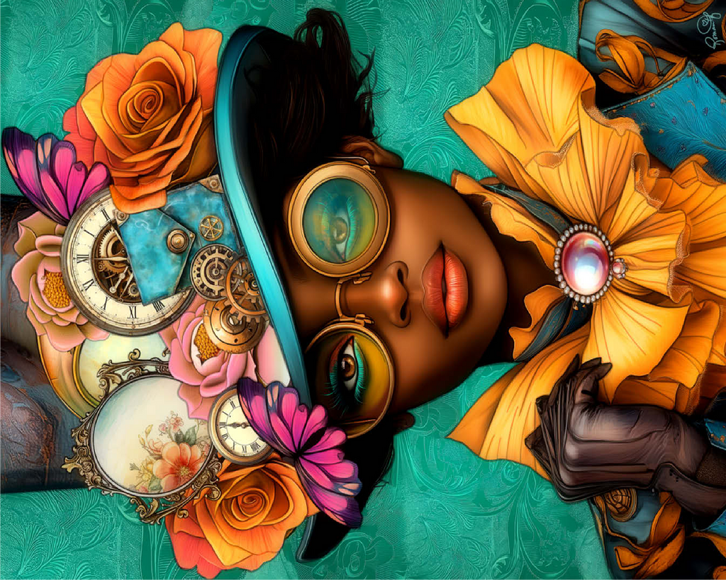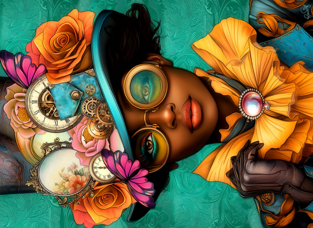 Steampunk Woman with Floral Hat and Gears