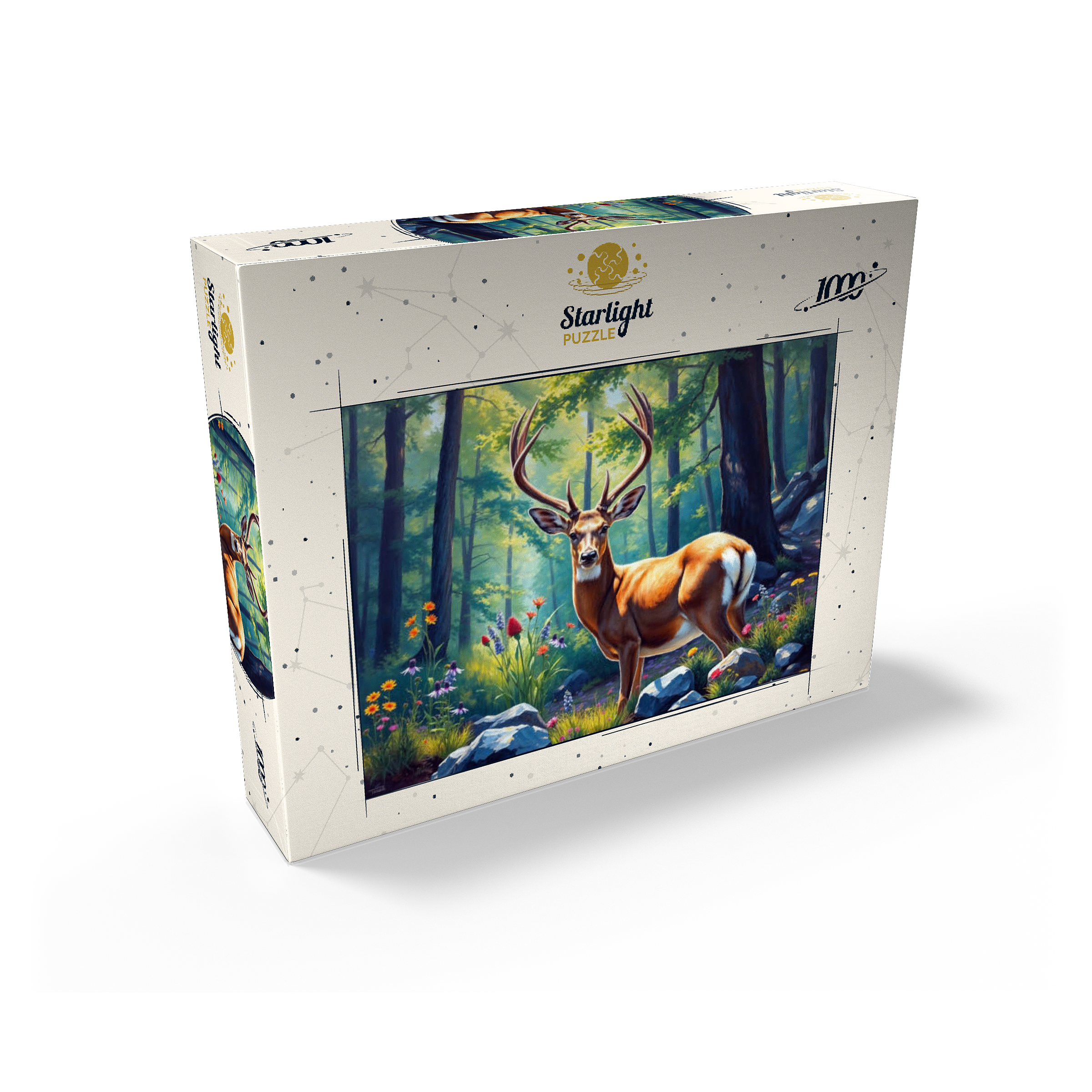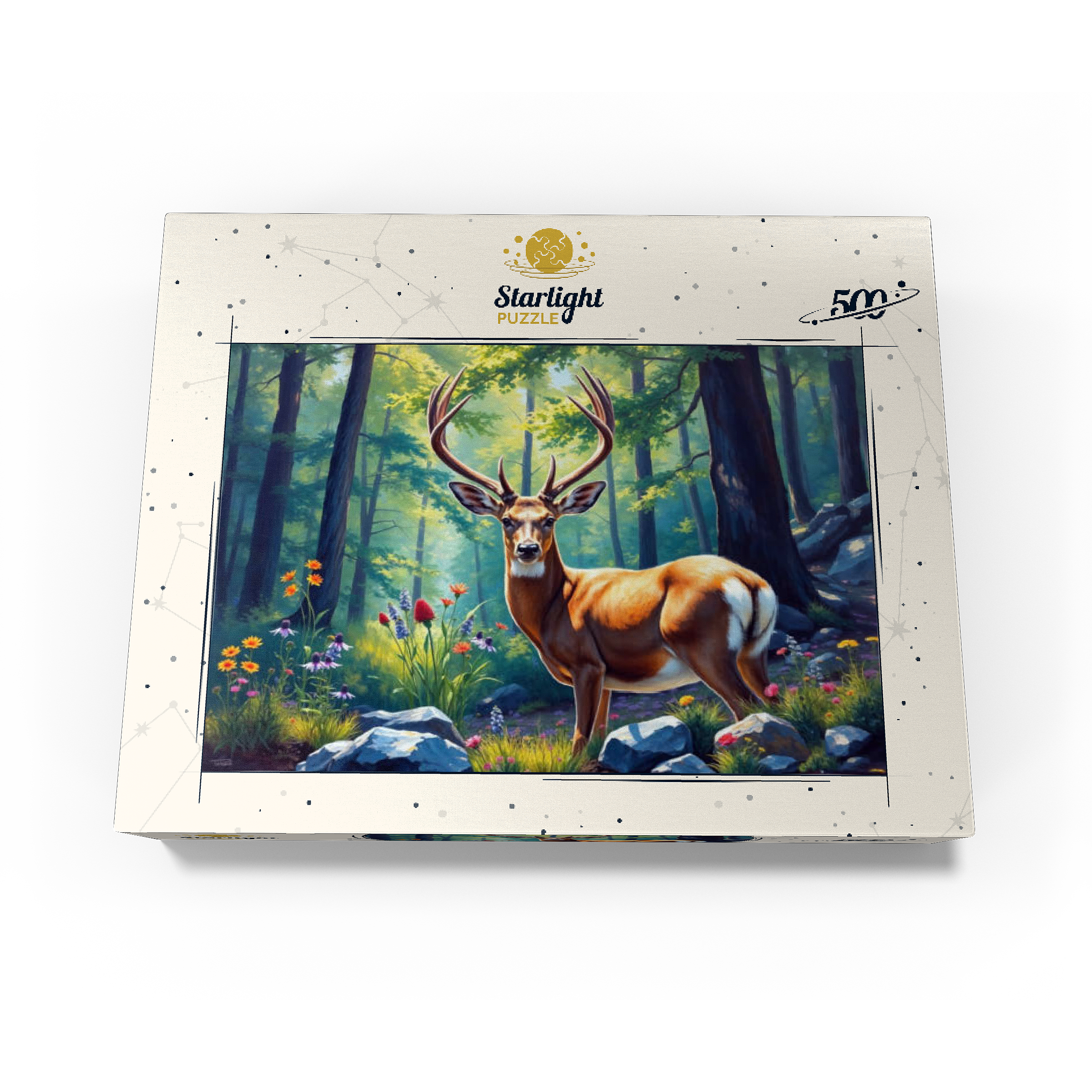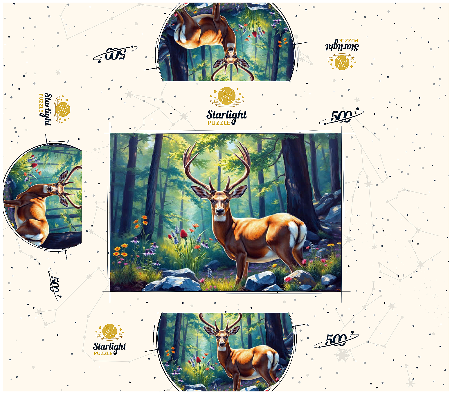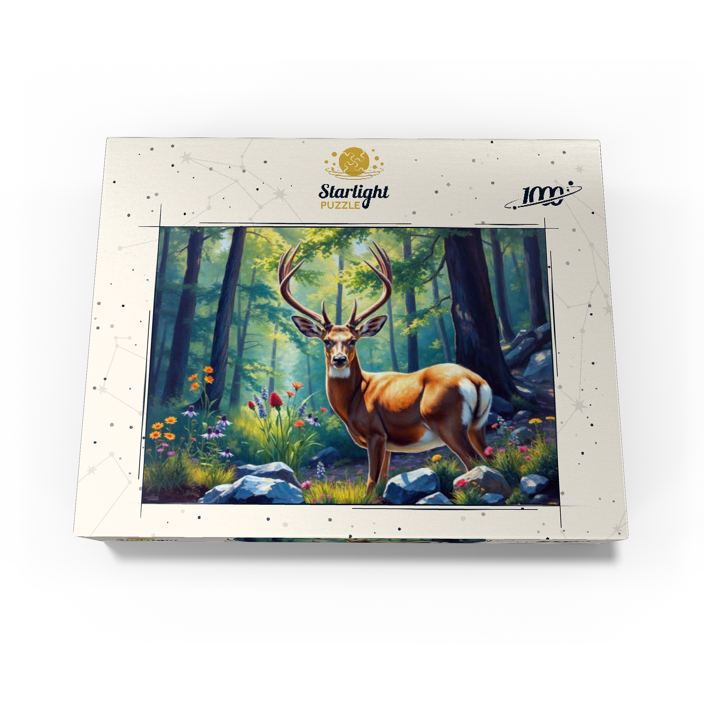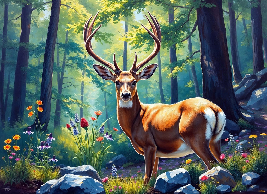 Majestic Deer in a Sunlit Forest with Wildflowers