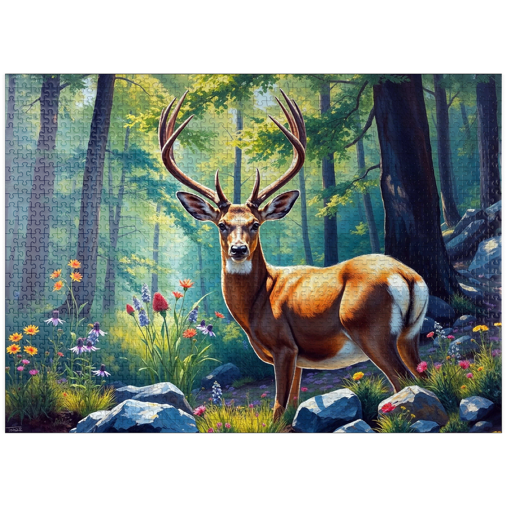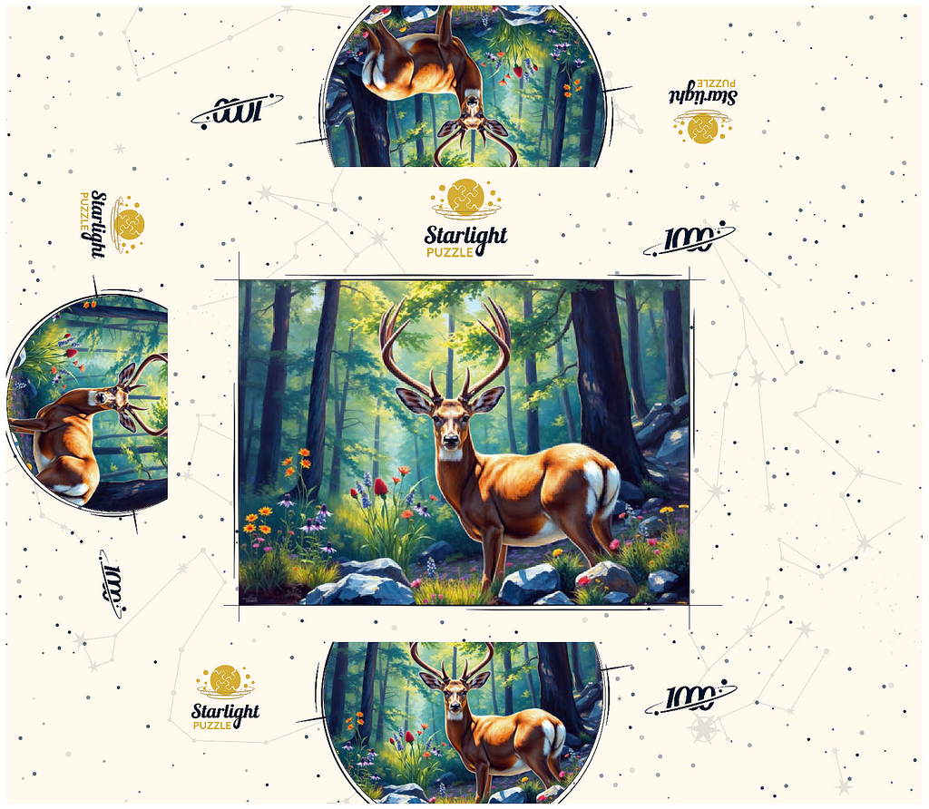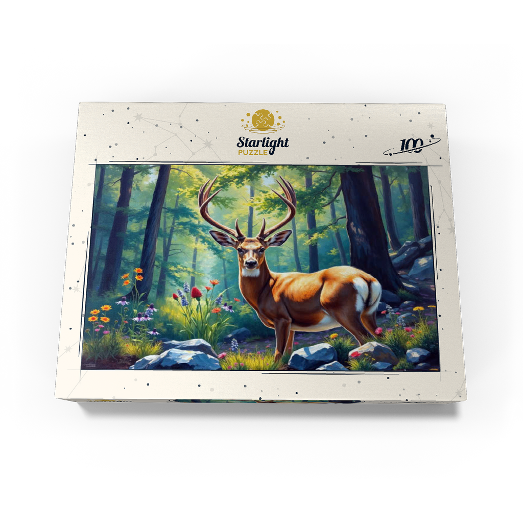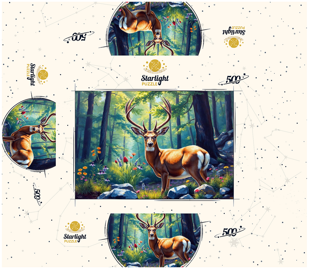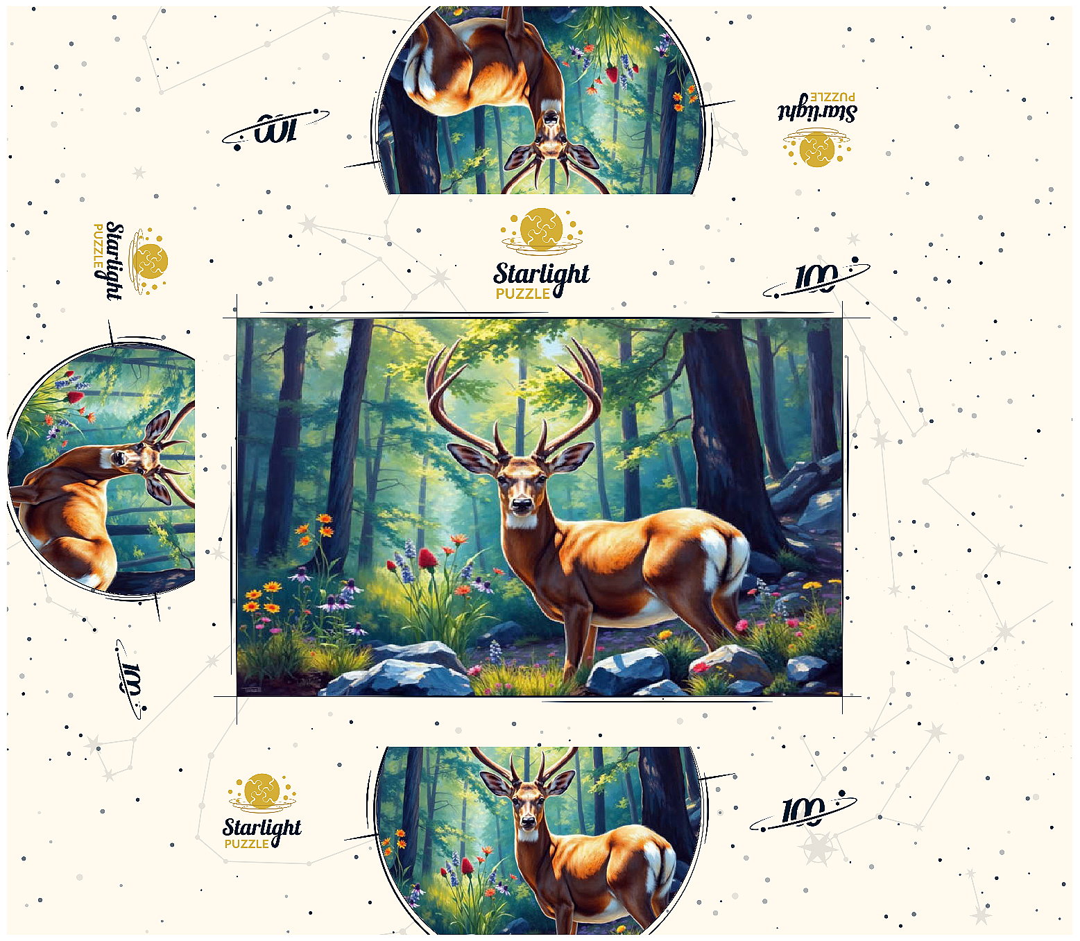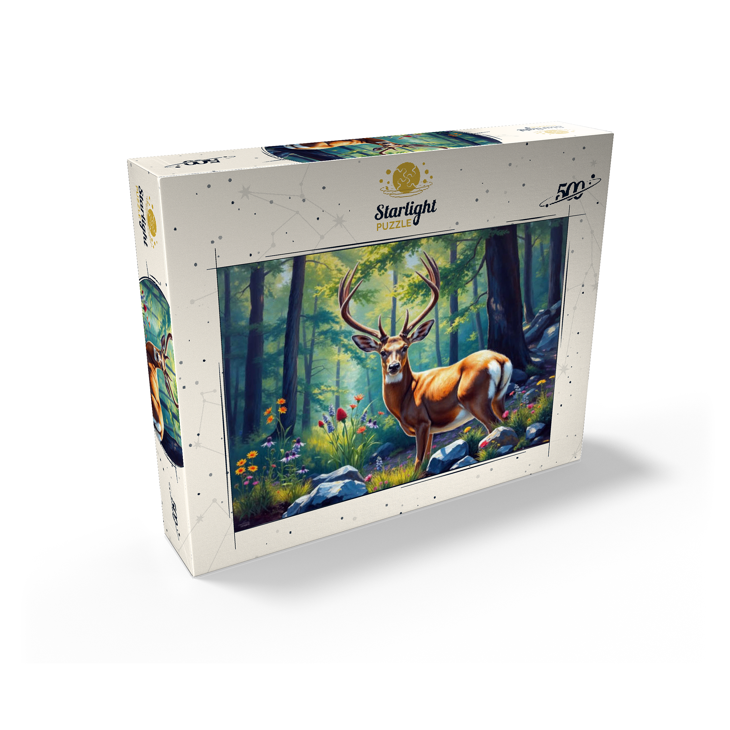Majestic Deer in a Sunlit Forest with Wildflowers