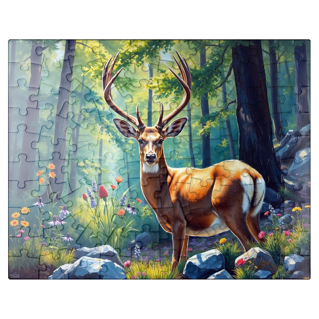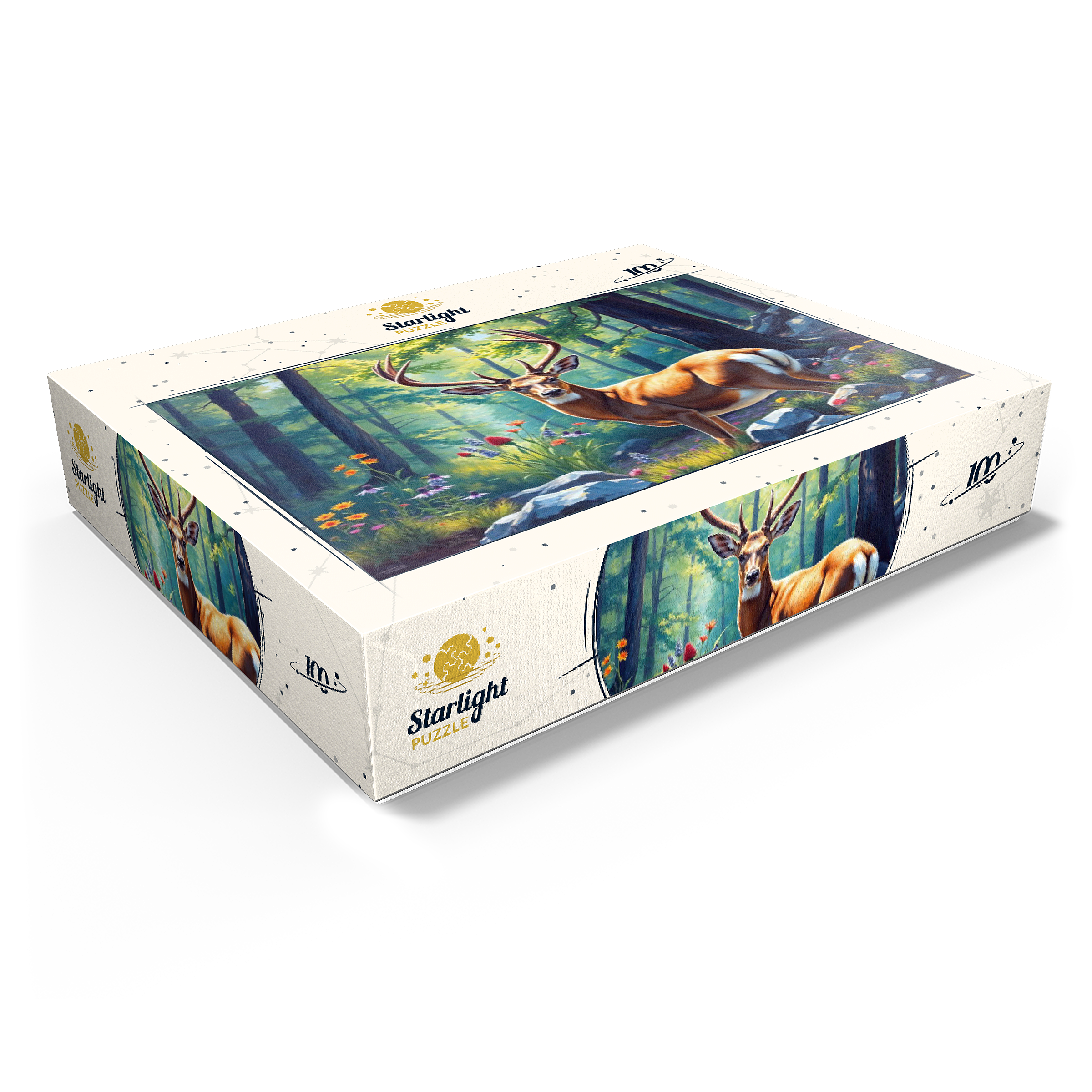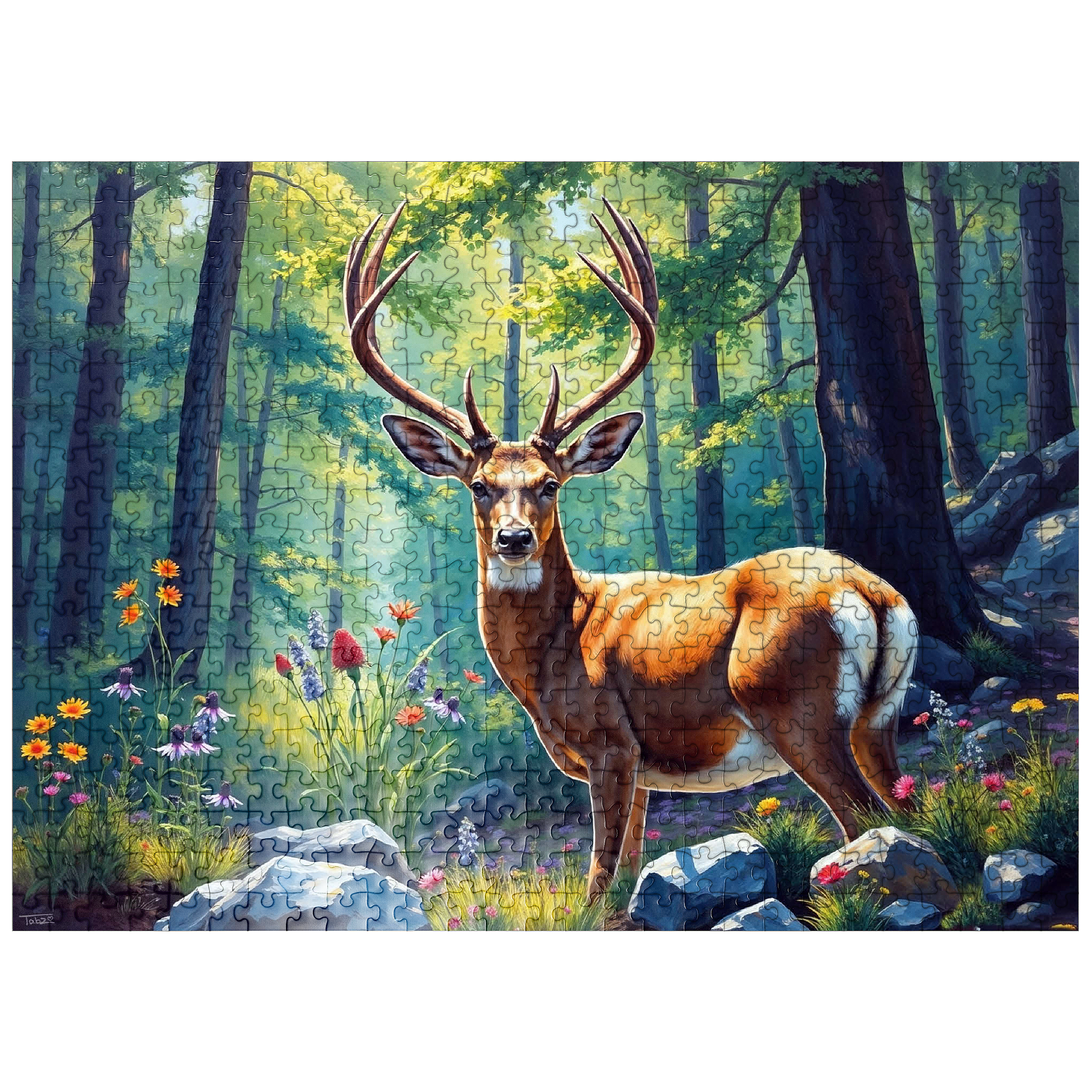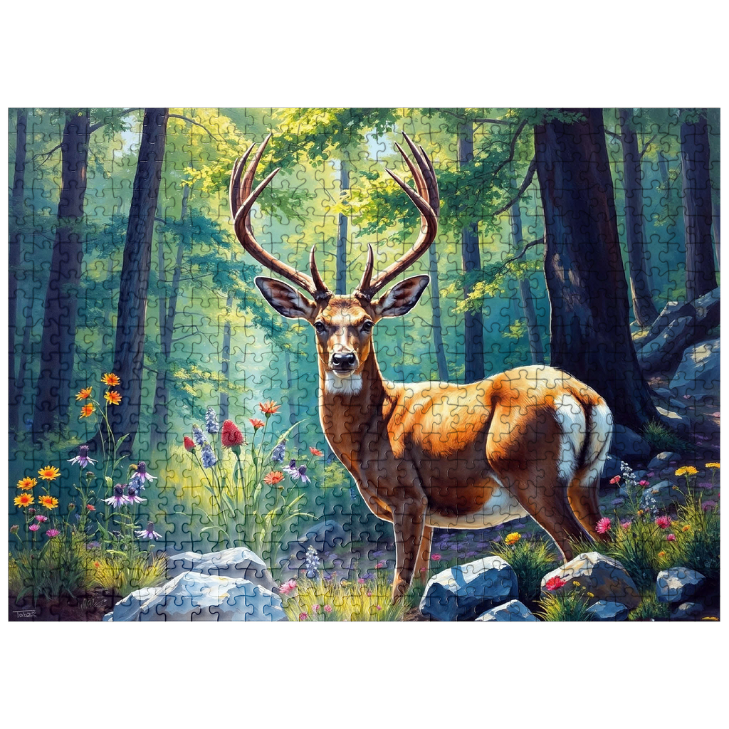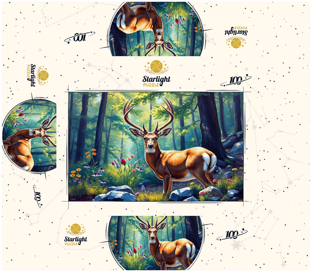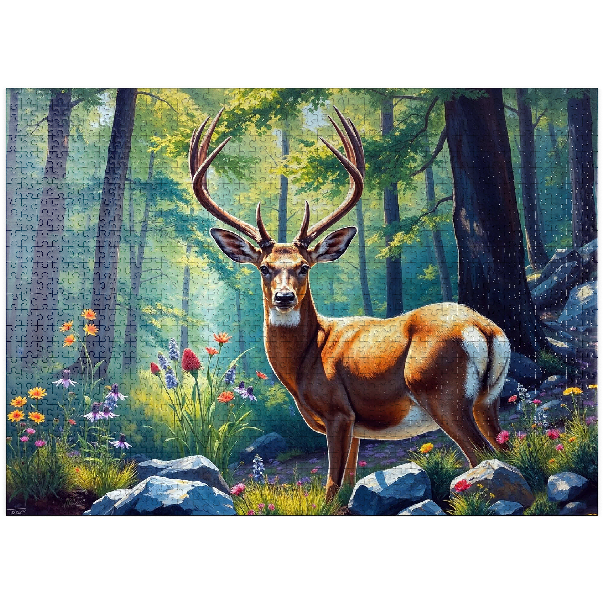 Majestic Deer in a Sunlit Forest with Wildflowers