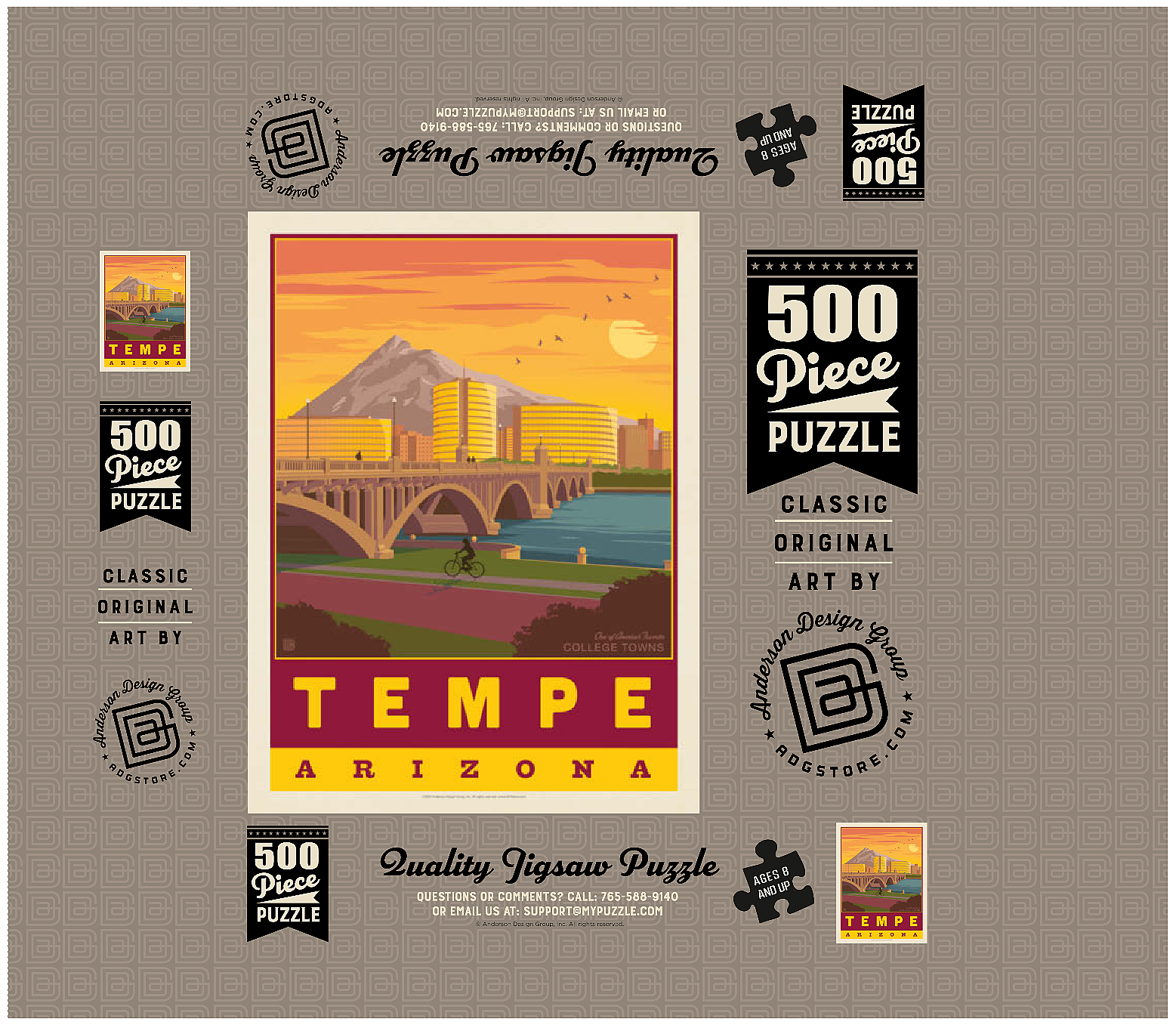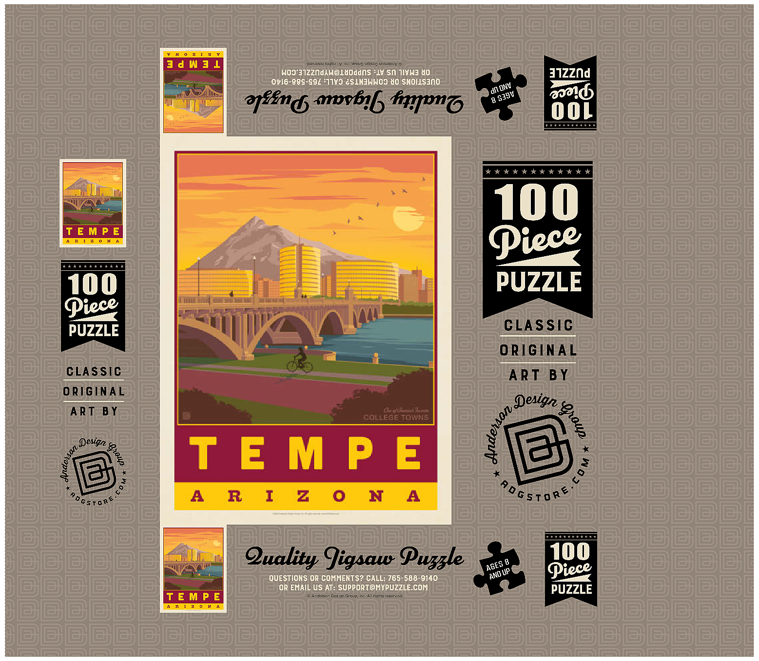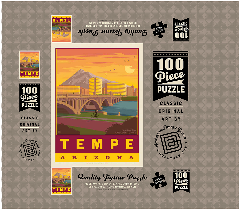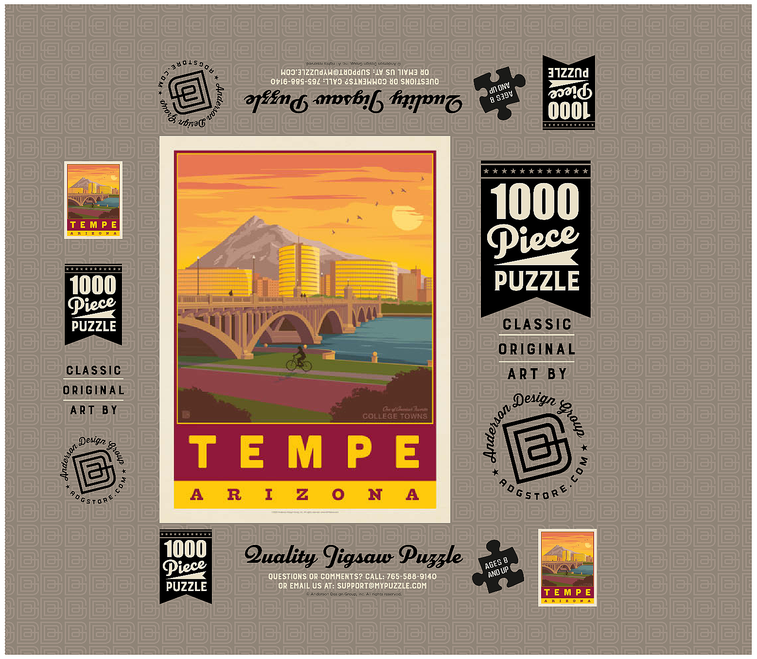 Tempe, Arizona, a lively college town in the heart of the Southwest, is beautifully illustrated with the Mill Avenue Bridge crossing Tempe Town Lake at sunset. The golden skyline reflects modern architecture, while mountains rise in the distance to create a striking desert backdrop. A cyclist along the waterfront highlights the city’s active outdoor lifestyle. Known for its vibrant downtown, cultural events, and warm climate, Tempe blends youthful energy with stunning desert landscapes. This design captures the city’s spirit, scenic waterways, and the iconic views that make Tempe one of the Southwest’s most appealing destinations.