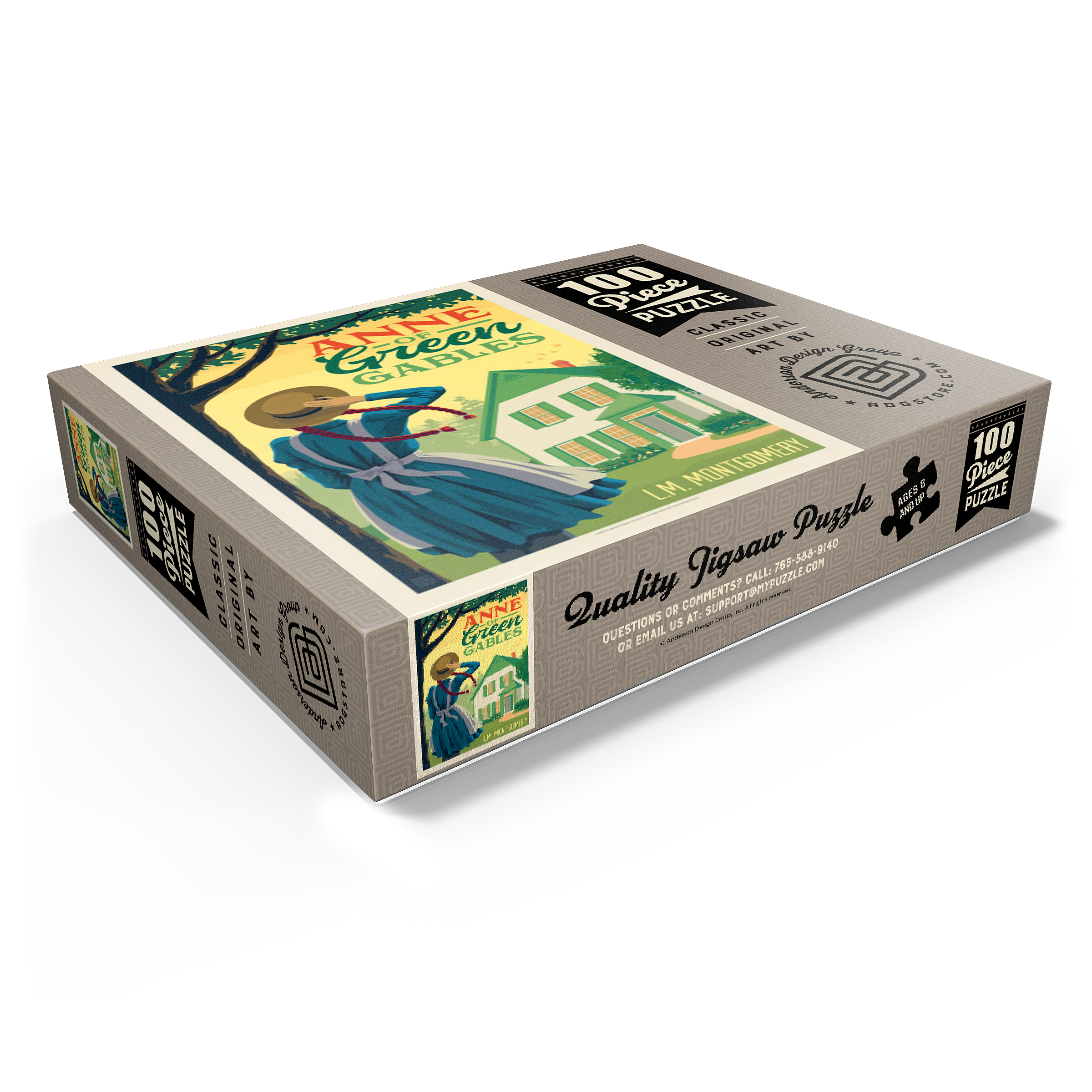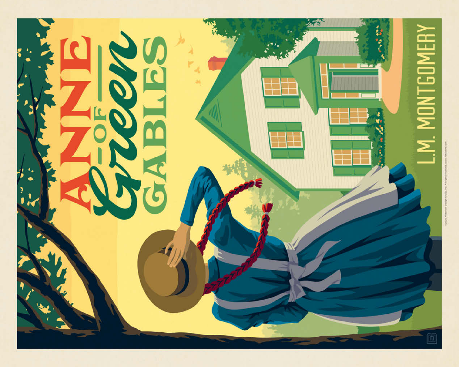 This charming illustration features Anne Shirley, the spirited heroine of Anne of Green Gables, gazing toward the iconic green-roofed farmhouse in Prince Edward Island. With her signature red braids, straw hat, and apron dress, Anne stands under a tree in a warm countryside scene filled with soft light and nostalgic colors. The design captures the essence of L.M. Montgomery's beloved novel, symbolizing imagination, adventure, and the beauty of rural life. Perfect for literature lovers and classic book collectors, this depiction honors one of the most enduring characters in children's fiction.
