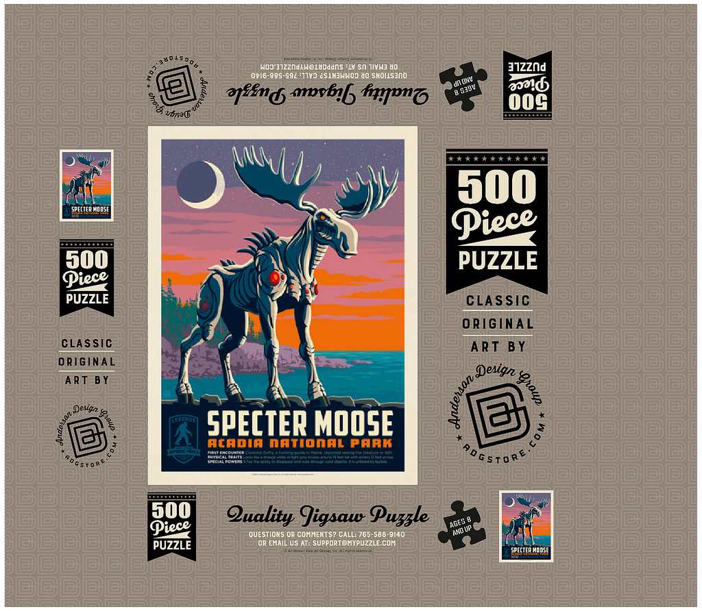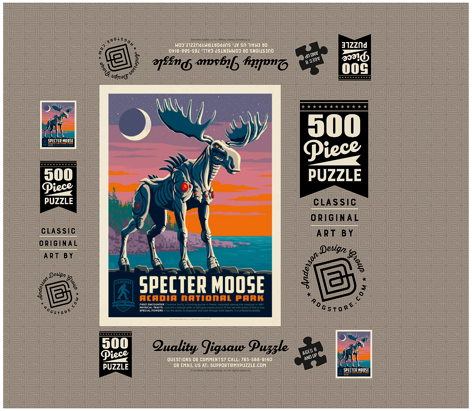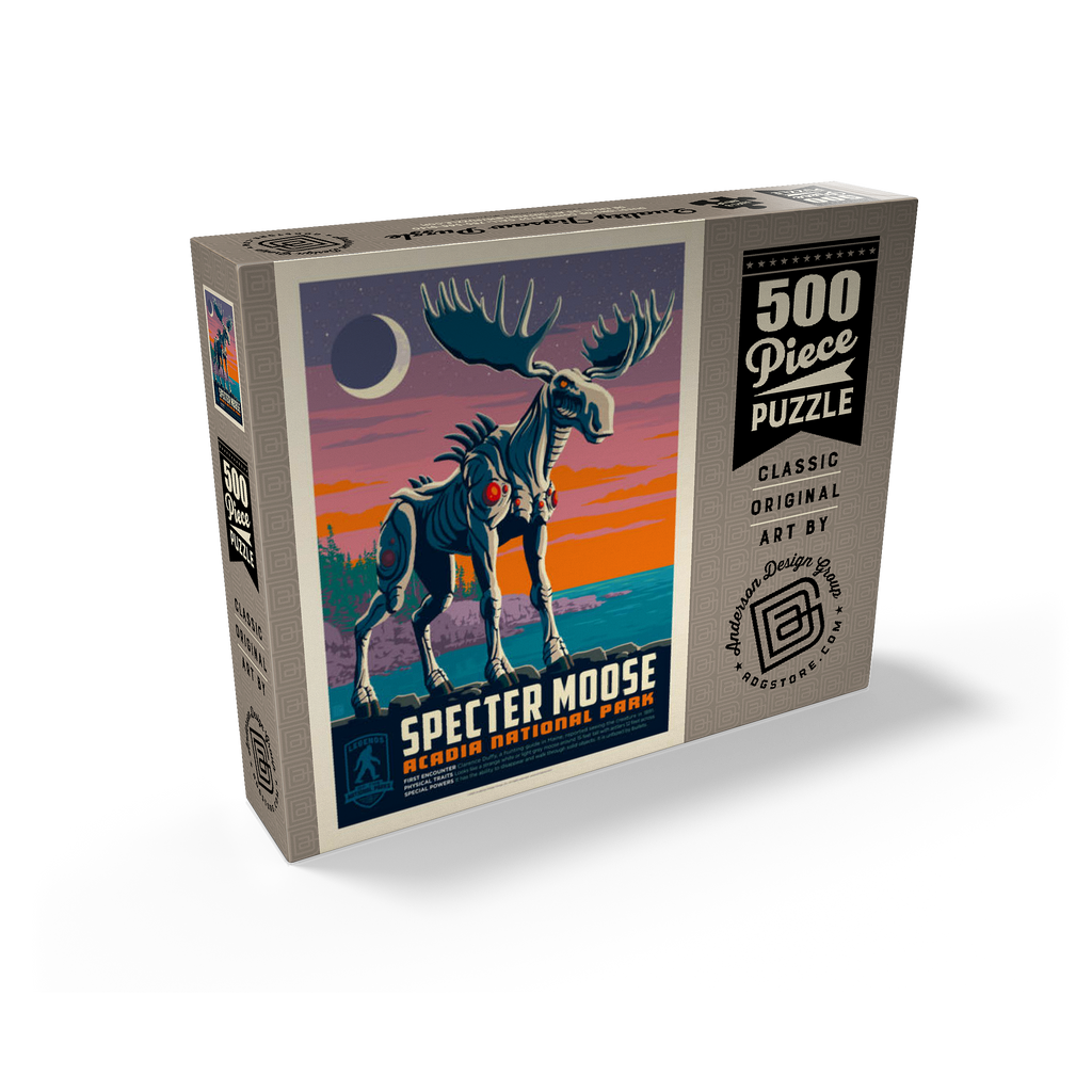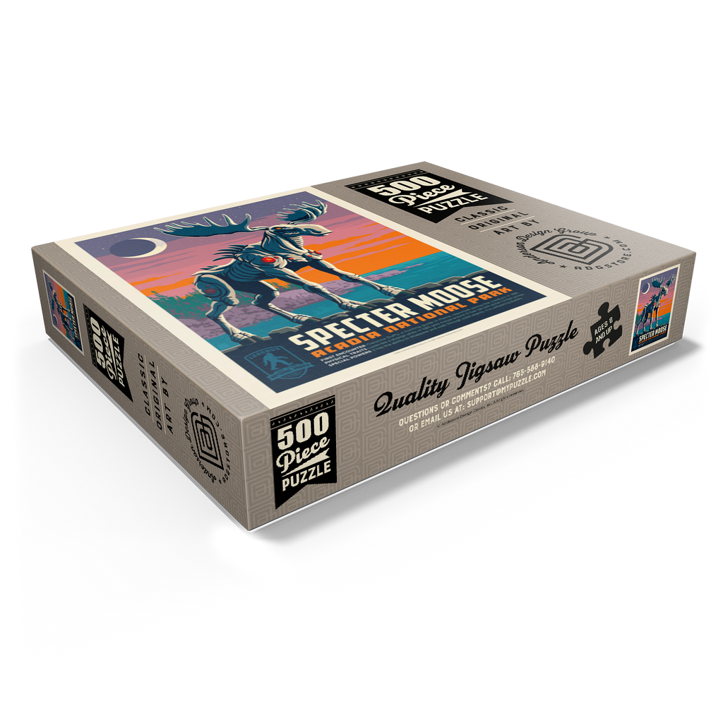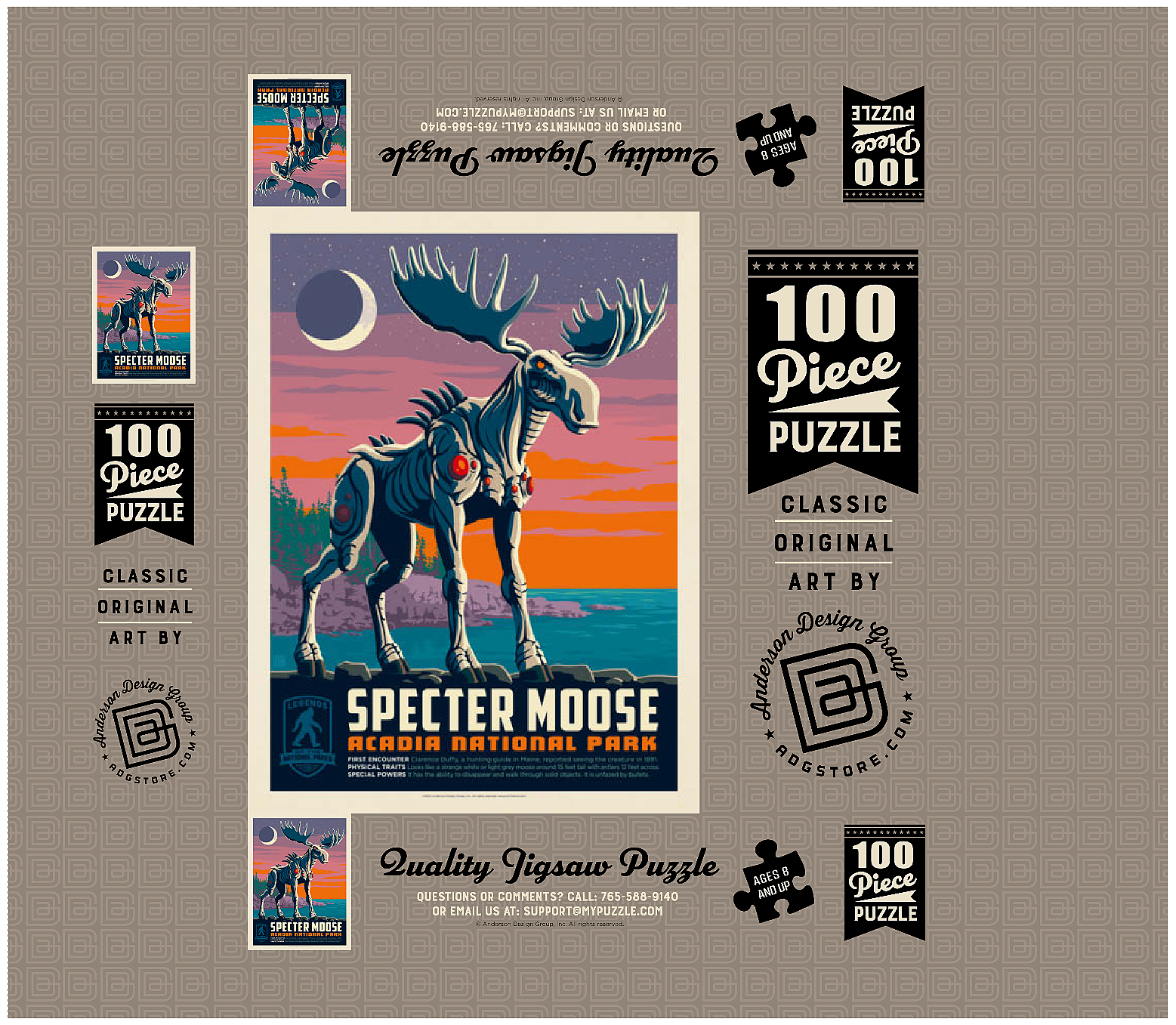 The Specter Moose is a legendary cryptid said to roam the forests of Acadia National Park, Maine. First reported in 1891 by hunting guide Clarence Duffy, this supernatural creature is described as an enormous moose, standing 15 feet tall with 12-foot-wide antlers. Its eerie white or ghostly appearance adds to its mystique, and folklore claims it possesses the ability to disappear and walk through solid objects, making it impervious to bullets. This vintage-style artwork captures the mythical beast under a moonlit sky, with a stunning twilight backdrop of Acadia's rugged coastline. A perfect piece for cryptid enthusiasts, national park lovers, and fans of American folklore, this design merges artistic creativity with legendary storytelling.