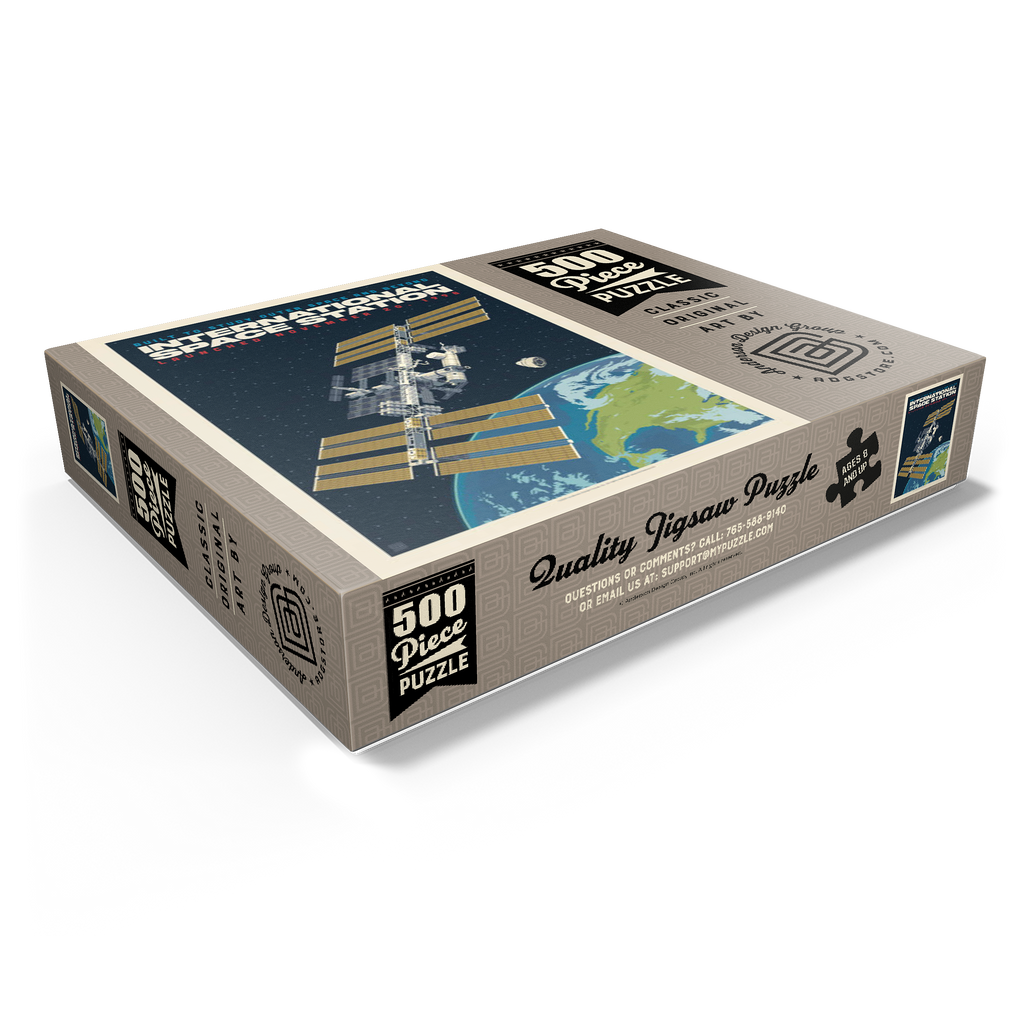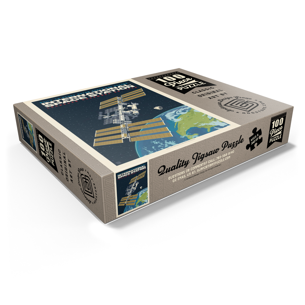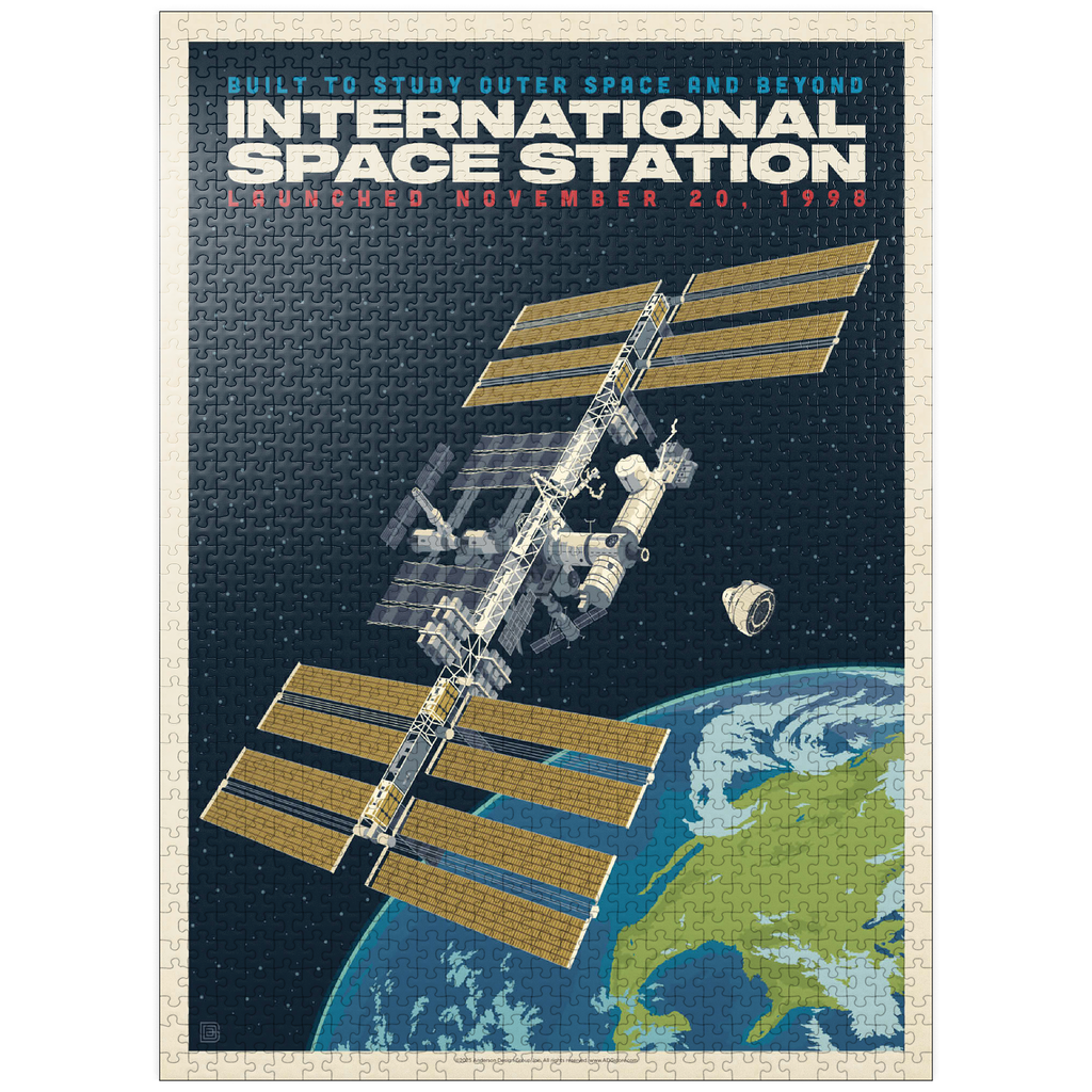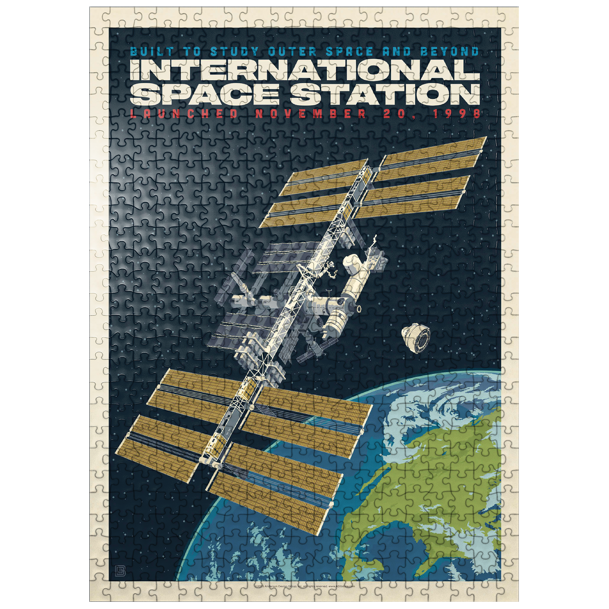 The International Space Station (ISS), launched on November 20, 1998, is a landmark achievement in global space exploration. This detailed artwork captures the ISS orbiting above Earth, with its expansive solar arrays illuminated against the backdrop of deep space. Floating nearby is a space capsule, emphasizing the station's role in transporting astronauts and conducting cutting-edge research. Positioned between day and night over the planet's surface, the scene reflects the ISS's continuous mission to study space, Earth science, and human physiology in microgravity. As a joint project by NASA, Roscosmos, ESA, JAXA, and CSA, the ISS symbolizes international cooperation in science and technology.