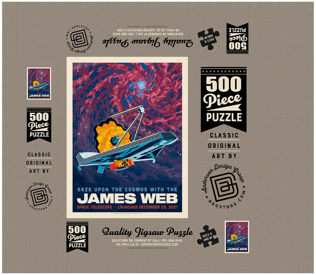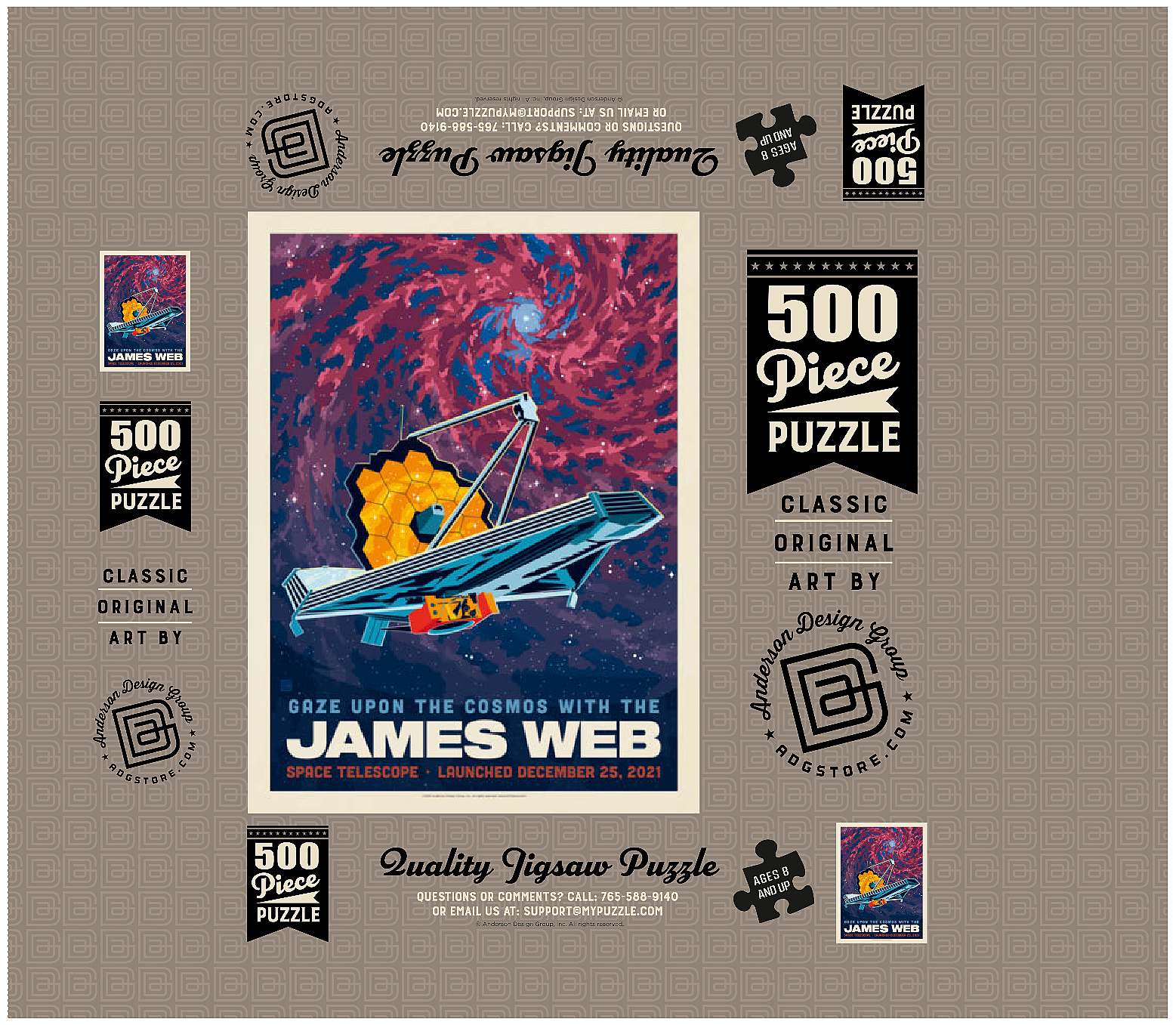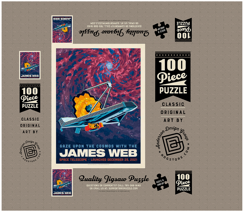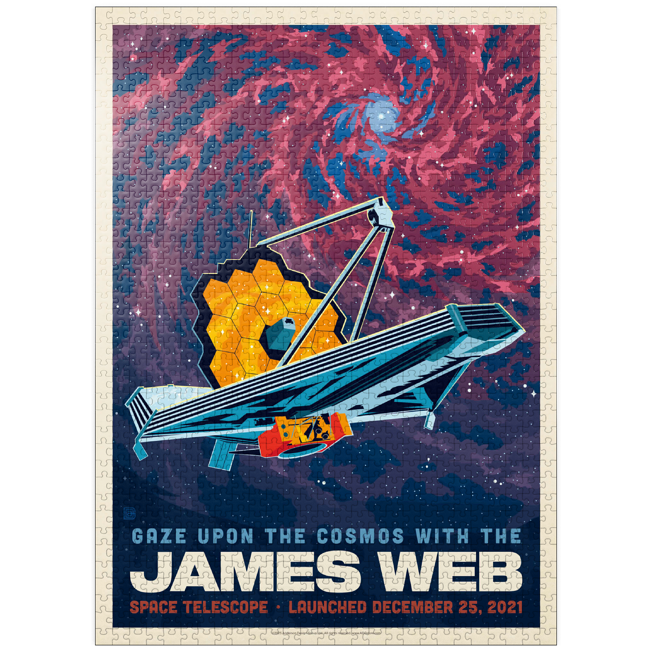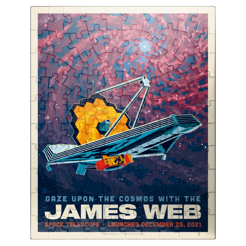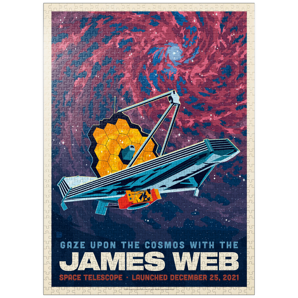 This bold retro-style artwork features the James Webb Space Telescope, launched on December 25, 2021, as it peers into the depths of the cosmos. Floating in space beyond Earth's orbit, its striking gold hexagonal mirrors reflect light from distant galaxies, nebulae, and the early universe. The swirling red and purple background evokes the vastness of space and the mysteries Webb continues to uncover. Designed to succeed Hubble, this powerful infrared observatory allows astronomers to study the origins of stars, planets, and galaxies with unprecedented clarity. The artwork celebrates scientific progress and the limitless curiosity of space exploration.