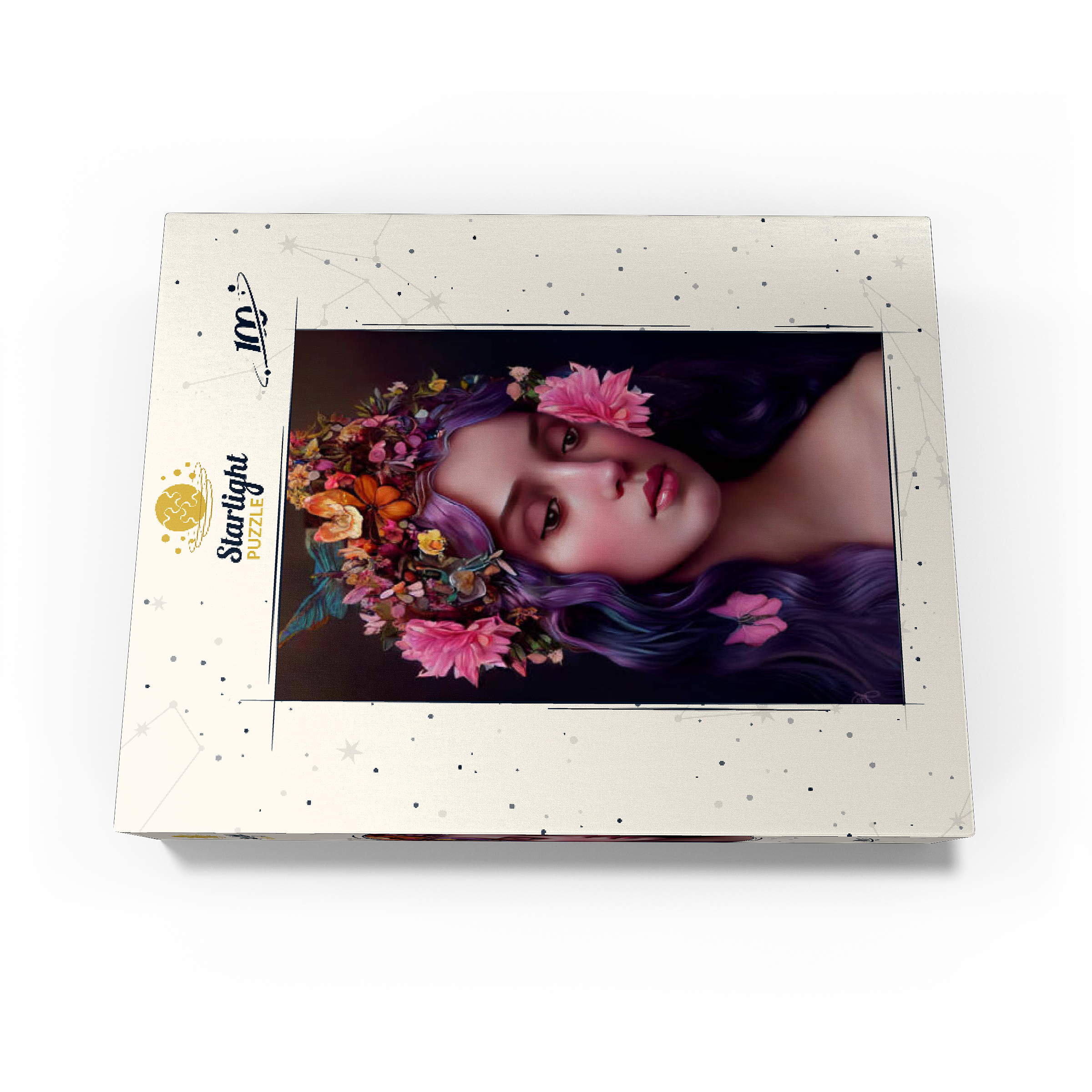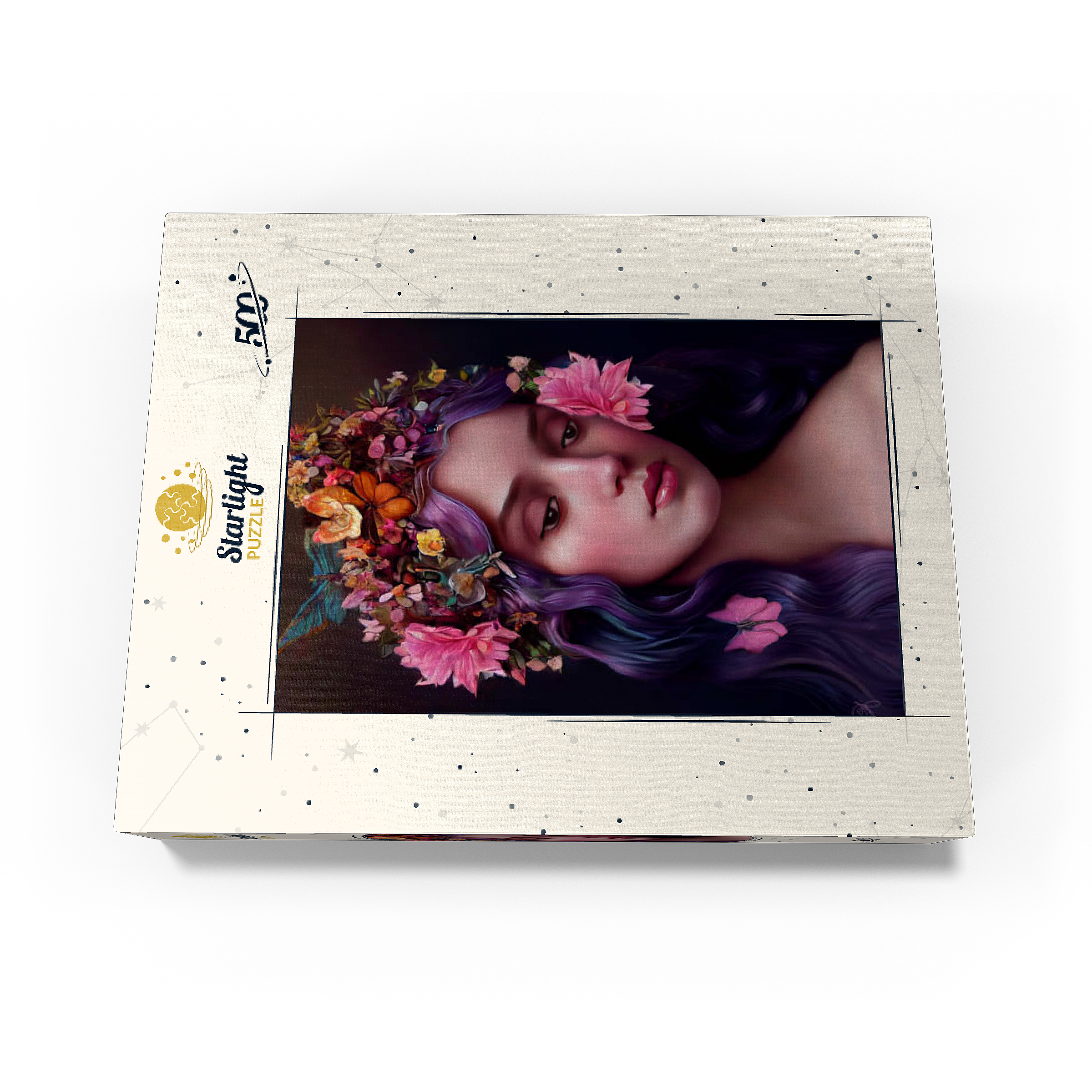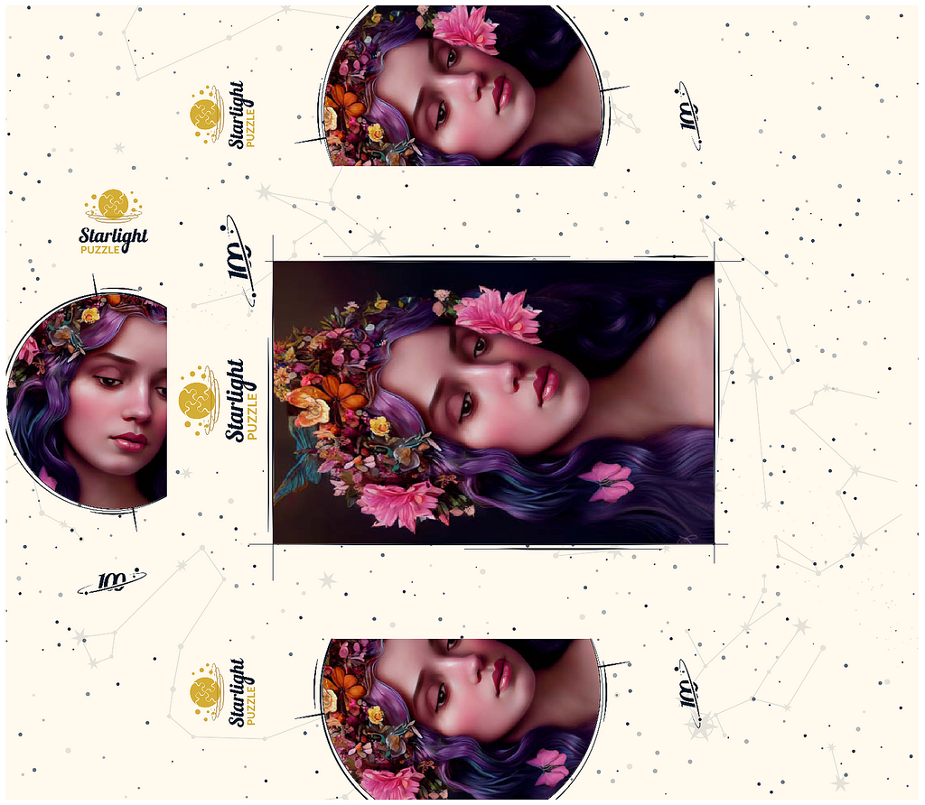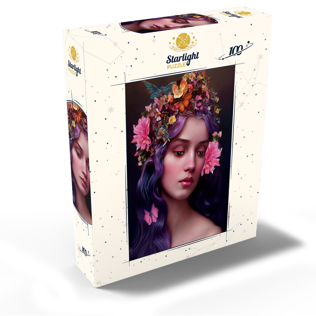 Ethereal Woman with Floral Crown and Violet Hair