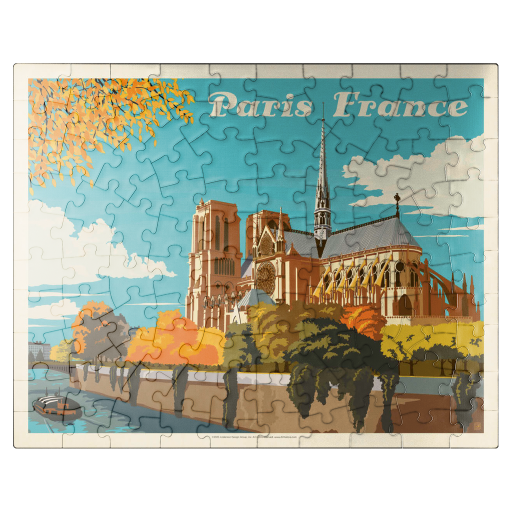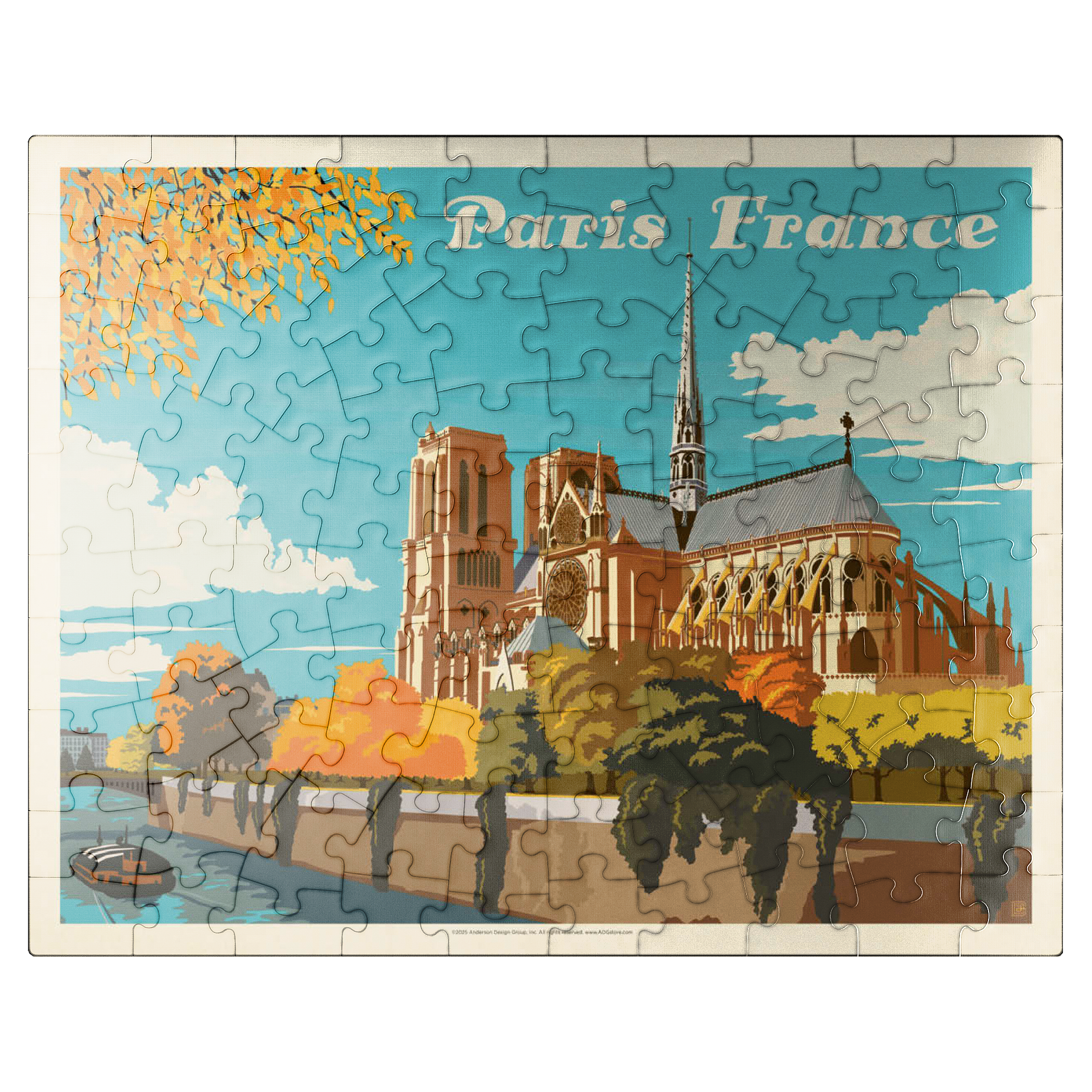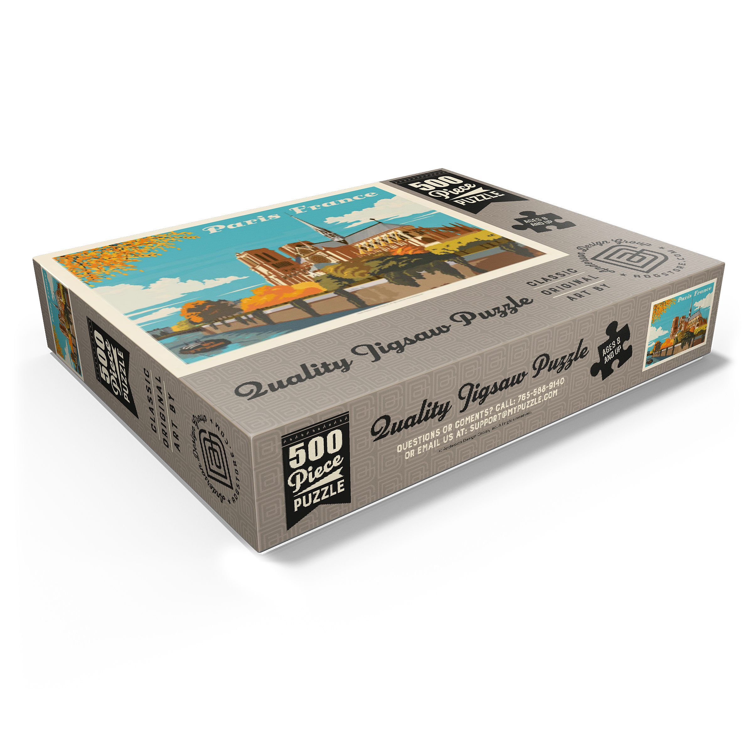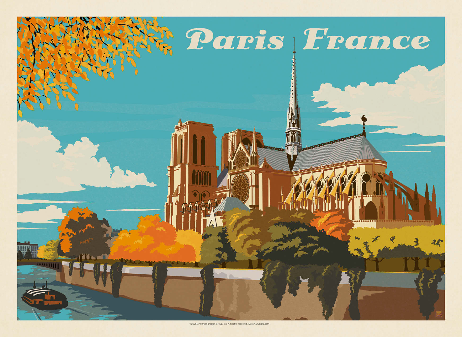 Paris, France, is renowned as the City of Light, and one of its most iconic landmarks is the Notre Dame Cathedral. This artwork beautifully depicts the Gothic masterpiece along the banks of the Seine, framed by autumn foliage and the cathedral’s soaring spire. Built beginning in the 12th century, Notre Dame is celebrated for its stunning stained glass windows, intricate stone carvings, and twin towers that dominate the Paris skyline. The cathedral has long been a symbol of French heritage and culture, immortalized in Victor Hugo’s classic novel The Hunchback of Notre Dame. Despite the tragic fire in 2019 that damaged its roof and spire, Notre Dame remains a beloved symbol of resilience, currently undergoing restoration. Alongside its architectural grandeur, the Seine River adds to the charm, with riverboats gliding by and tree-lined promenades inviting romantic strolls. Visiting Notre Dame is a quintessential Paris experience, blending history, art, and the city’s timeless beauty.