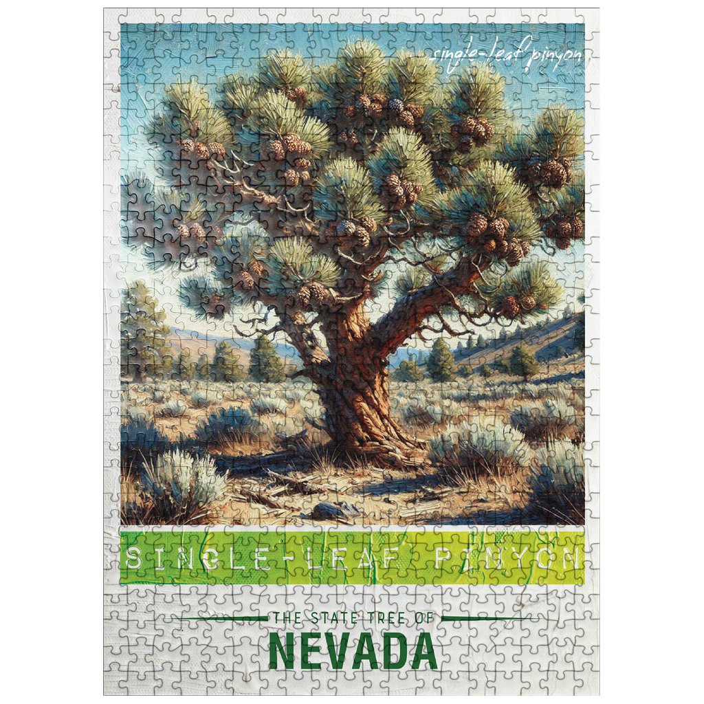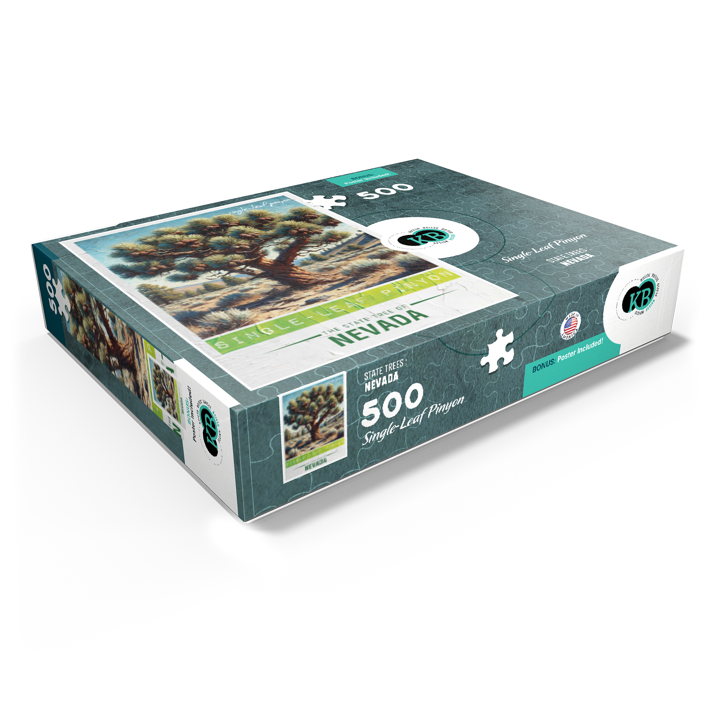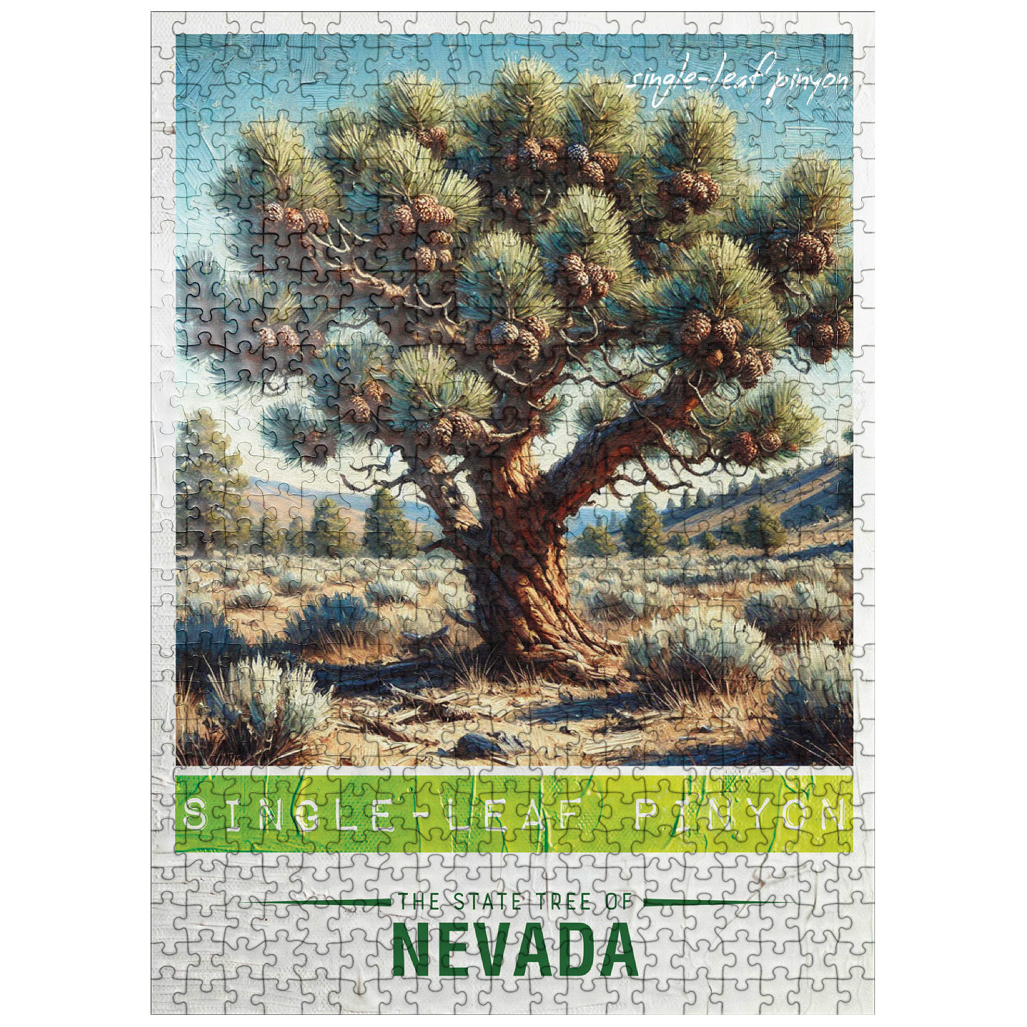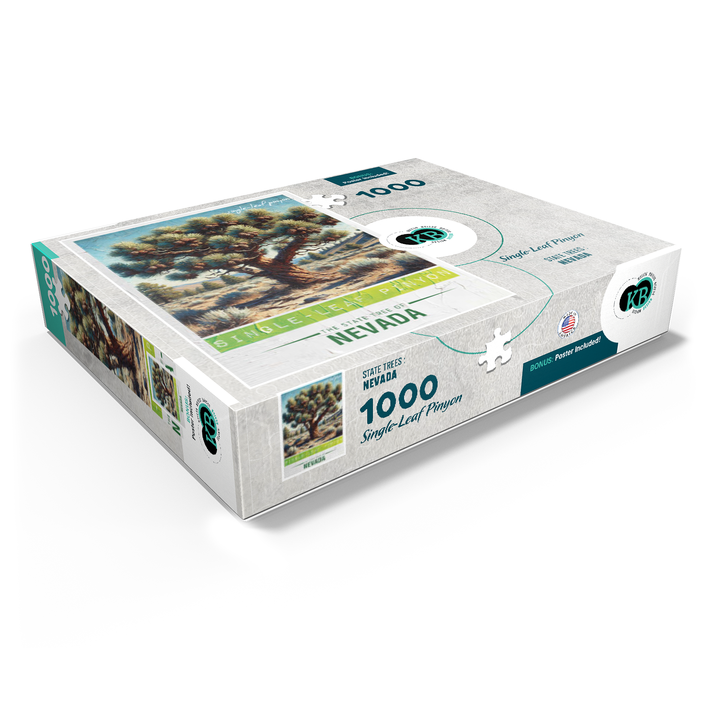 Nevada has two official state trees: the single-leaf pinyon pine (Pinus monophylla) and the Great Basin bristlecone pine (Pinus longaeva), both designated in 1953. The single-leaf pinyon pine is known for its nutritious pine nuts, which have been an important food source for Native Americans and wildlife. It thrives in Nevada's dry, mountainous regions and plays a key role in the state's ecosystem. Together, these two trees represent Nevada's resilience, history, and natural beauty. The State Trees collection is a unique way to show your state pride! Choose your state, or pick your favorite tree from the collection and watch it come to life. This would make a great gift for a fellow out-of-state puzzle-lover. Go on an 'adventure across the country' and collect them all!