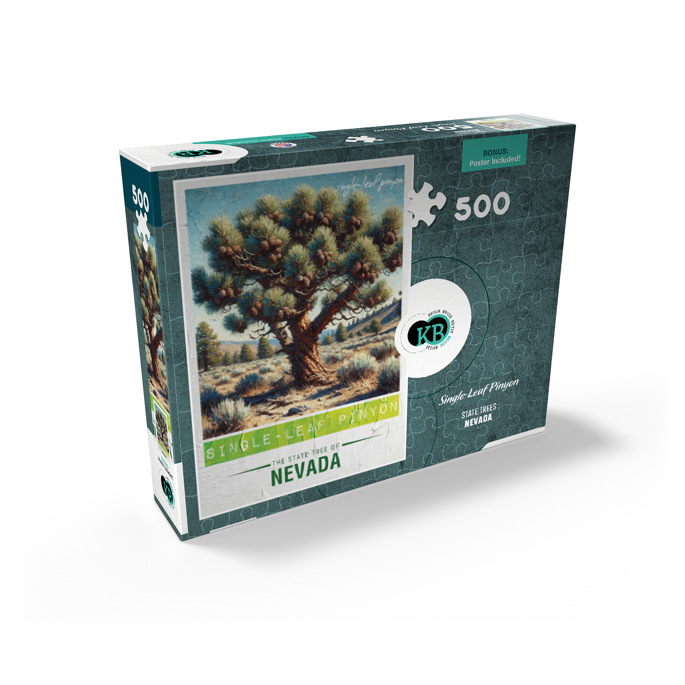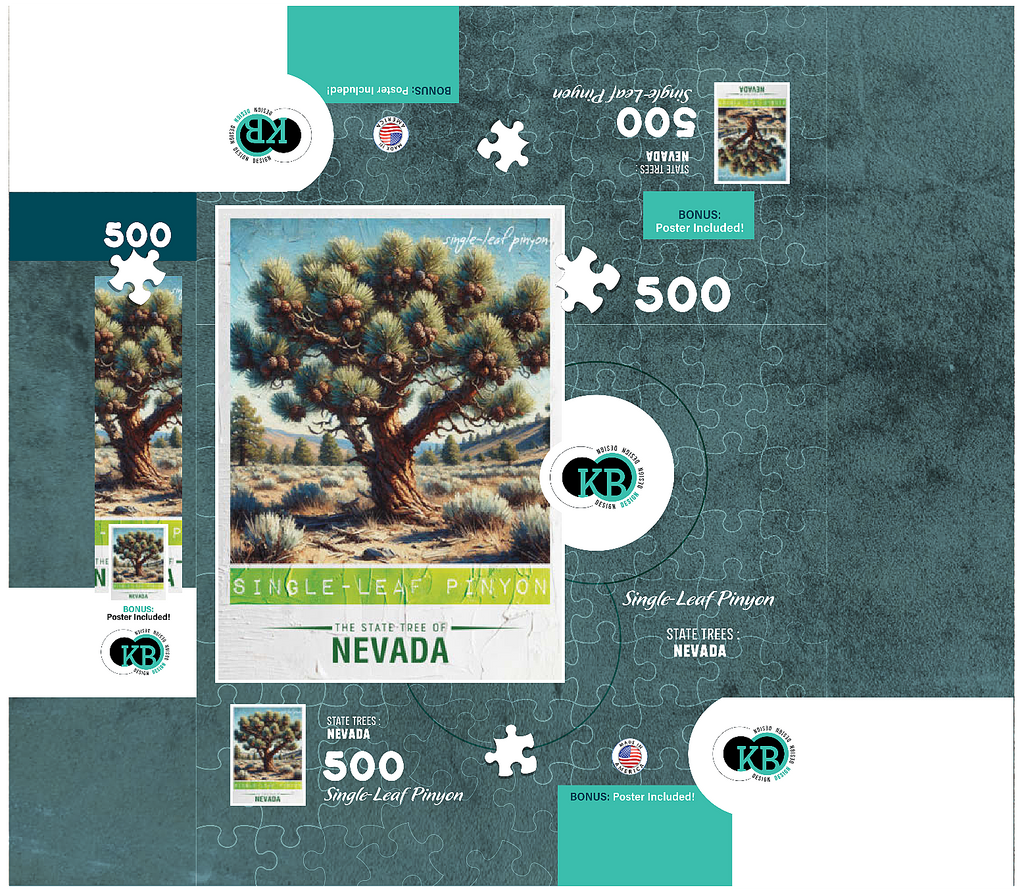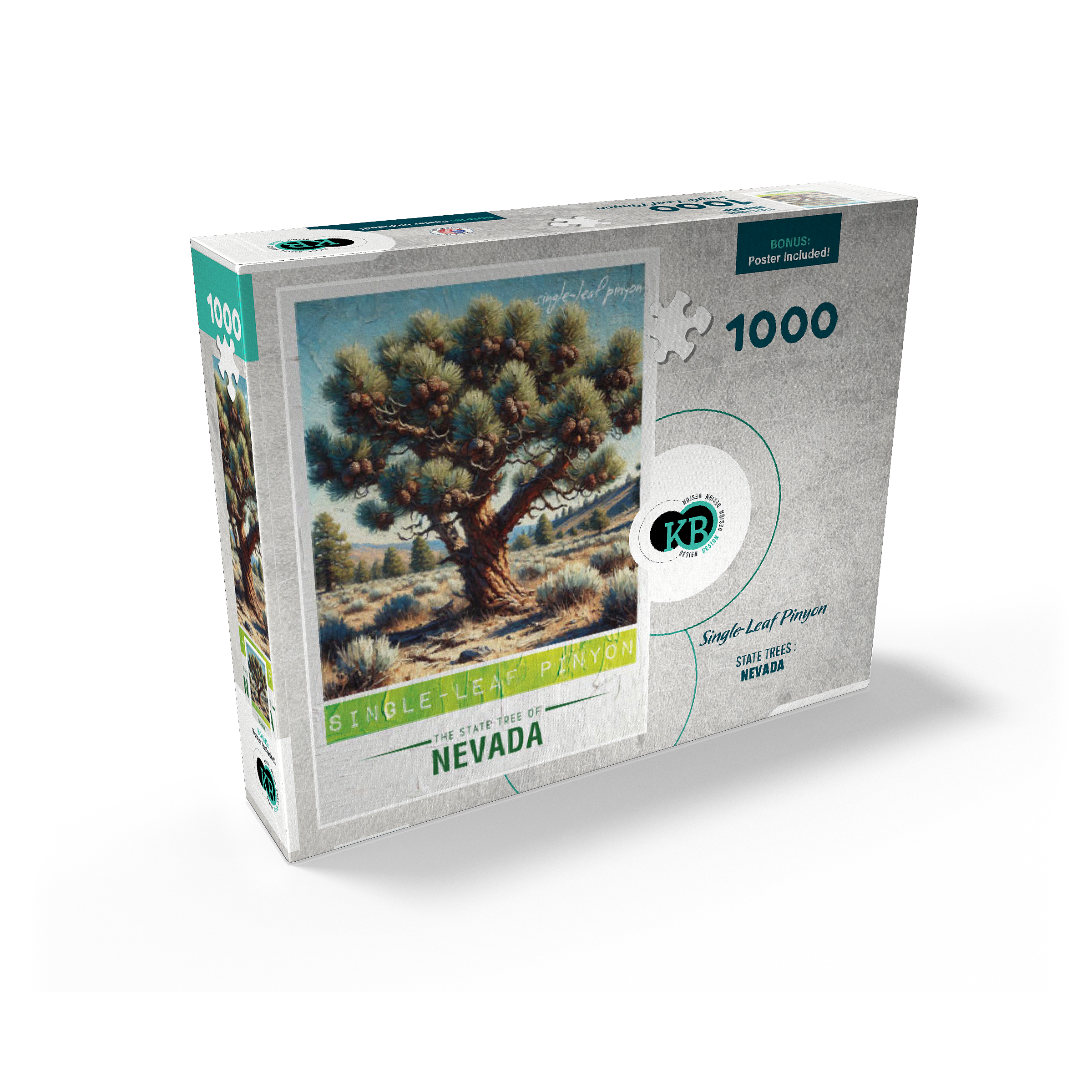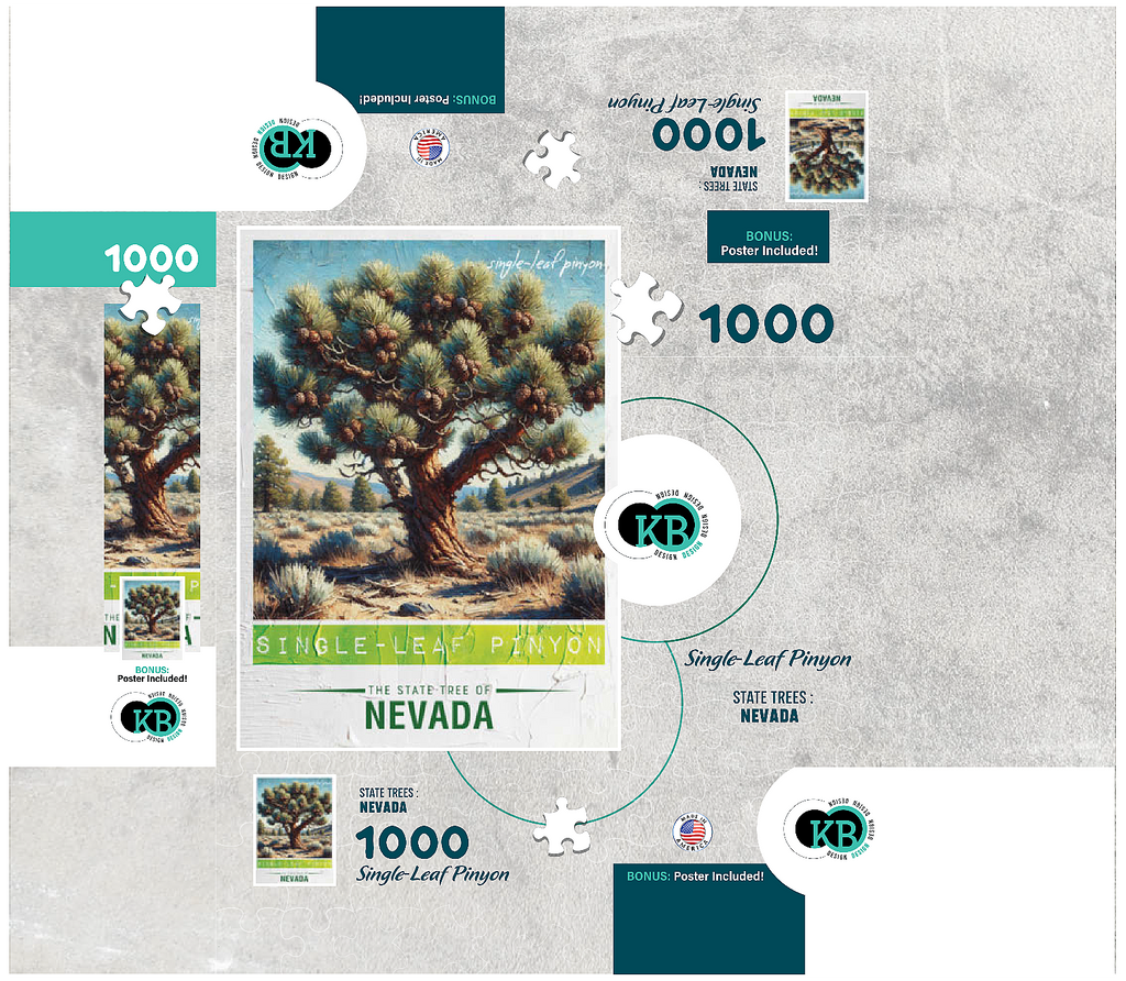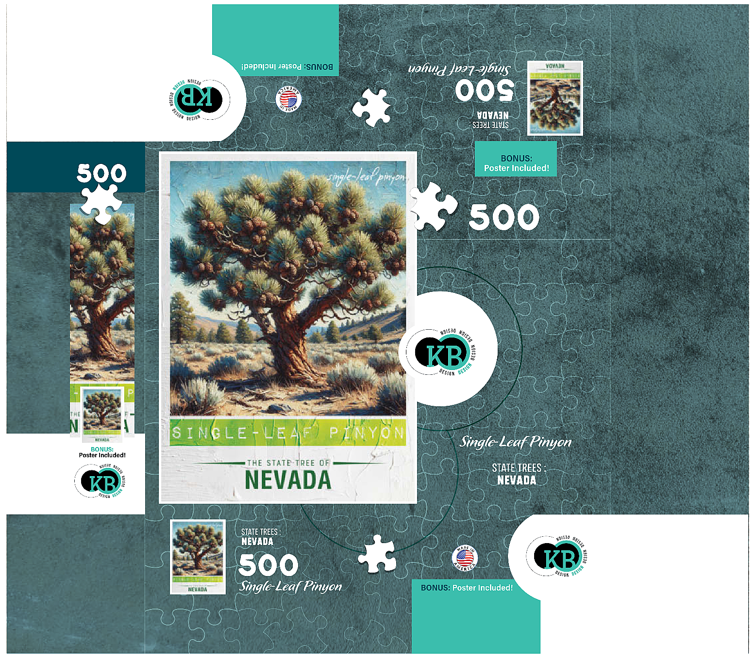 Nevada has two official state trees: the single-leaf pinyon pine (Pinus monophylla) and the Great Basin bristlecone pine (Pinus longaeva), both designated in 1953. The single-leaf pinyon pine is known for its nutritious pine nuts, which have been an important food source for Native Americans and wildlife. It thrives in Nevada's dry, mountainous regions and plays a key role in the state's ecosystem. Together, these two trees represent Nevada's resilience, history, and natural beauty. The State Trees collection is a unique way to show your state pride! Choose your state, or pick your favorite tree from the collection and watch it come to life. This would make a great gift for a fellow out-of-state puzzle-lover. Go on an 'adventure across the country' and collect them all!