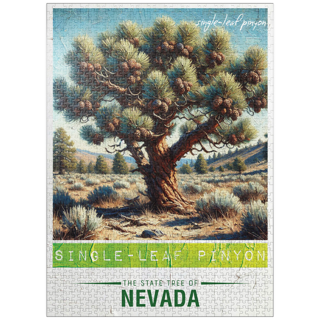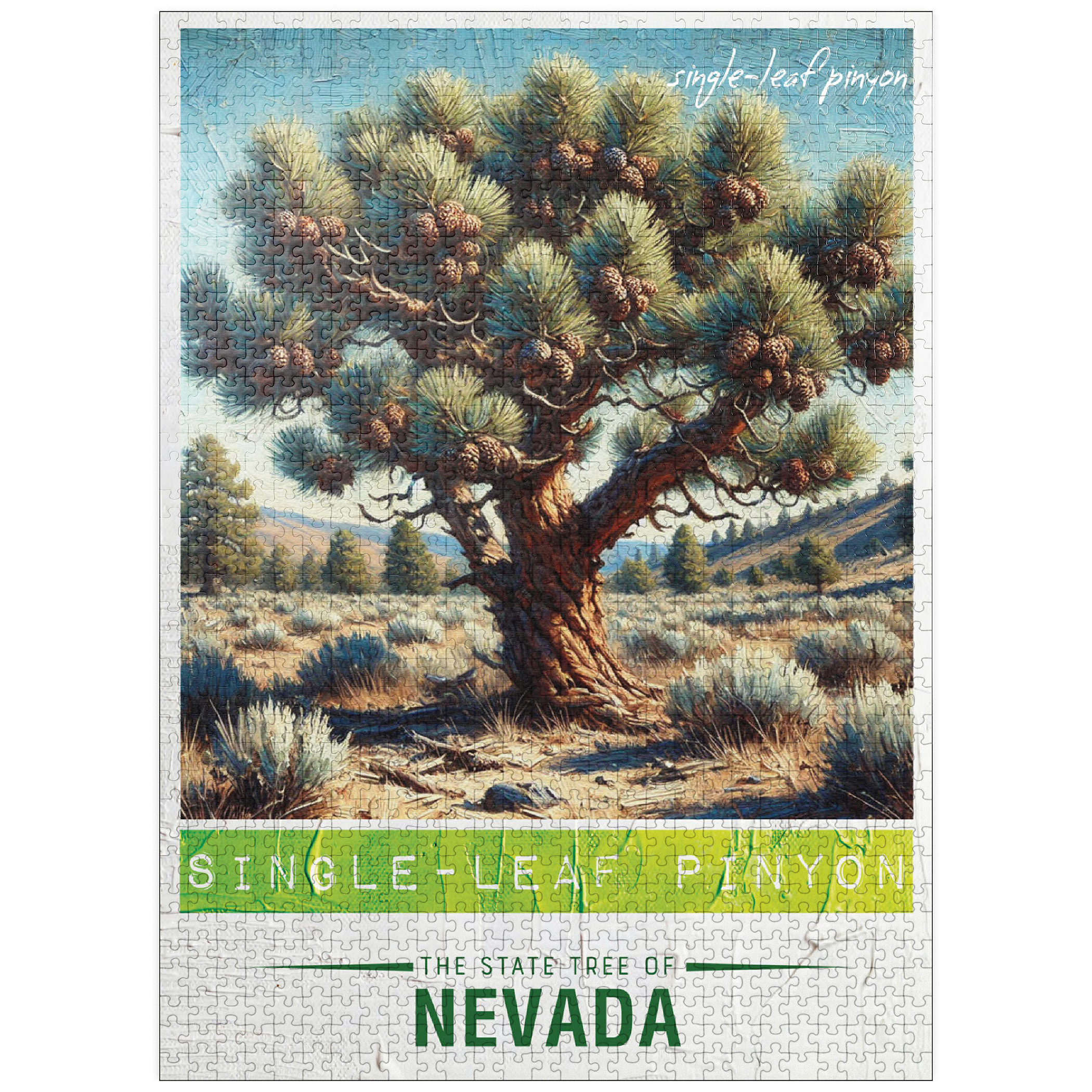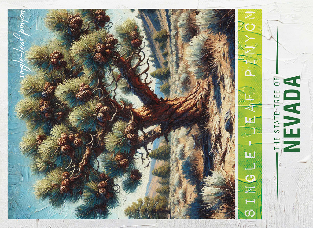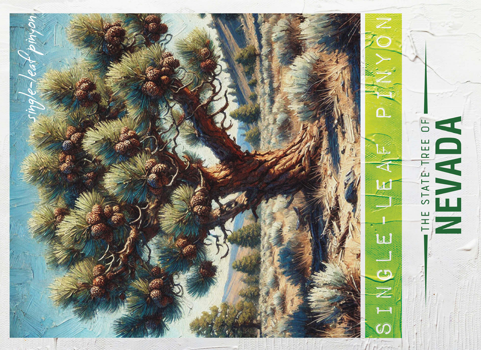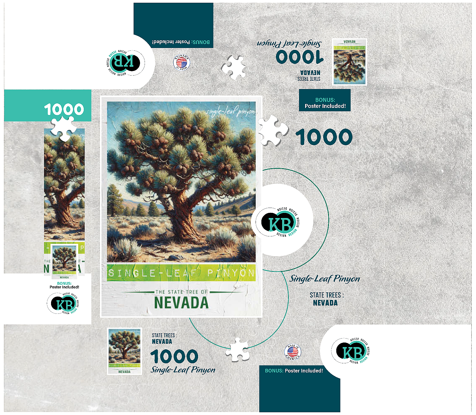 Nevada has two official state trees: the single-leaf pinyon pine (Pinus monophylla) and the Great Basin bristlecone pine (Pinus longaeva), both designated in 1953. The single-leaf pinyon pine is known for its nutritious pine nuts, which have been an important food source for Native Americans and wildlife. It thrives in Nevada's dry, mountainous regions and plays a key role in the state's ecosystem. Together, these two trees represent Nevada's resilience, history, and natural beauty. The State Trees collection is a unique way to show your state pride! Choose your state, or pick your favorite tree from the collection and watch it come to life. This would make a great gift for a fellow out-of-state puzzle-lover. Go on an 'adventure across the country' and collect them all!