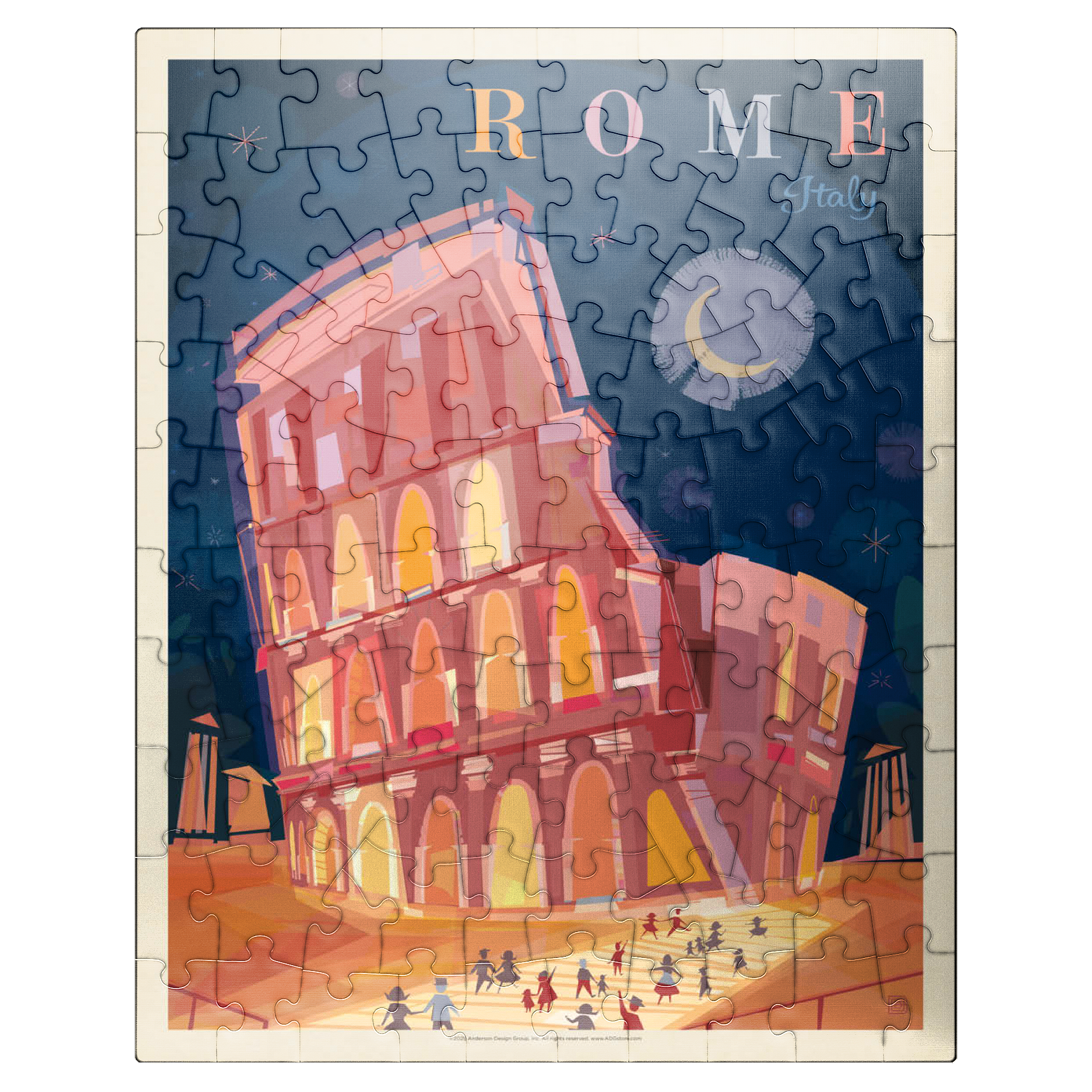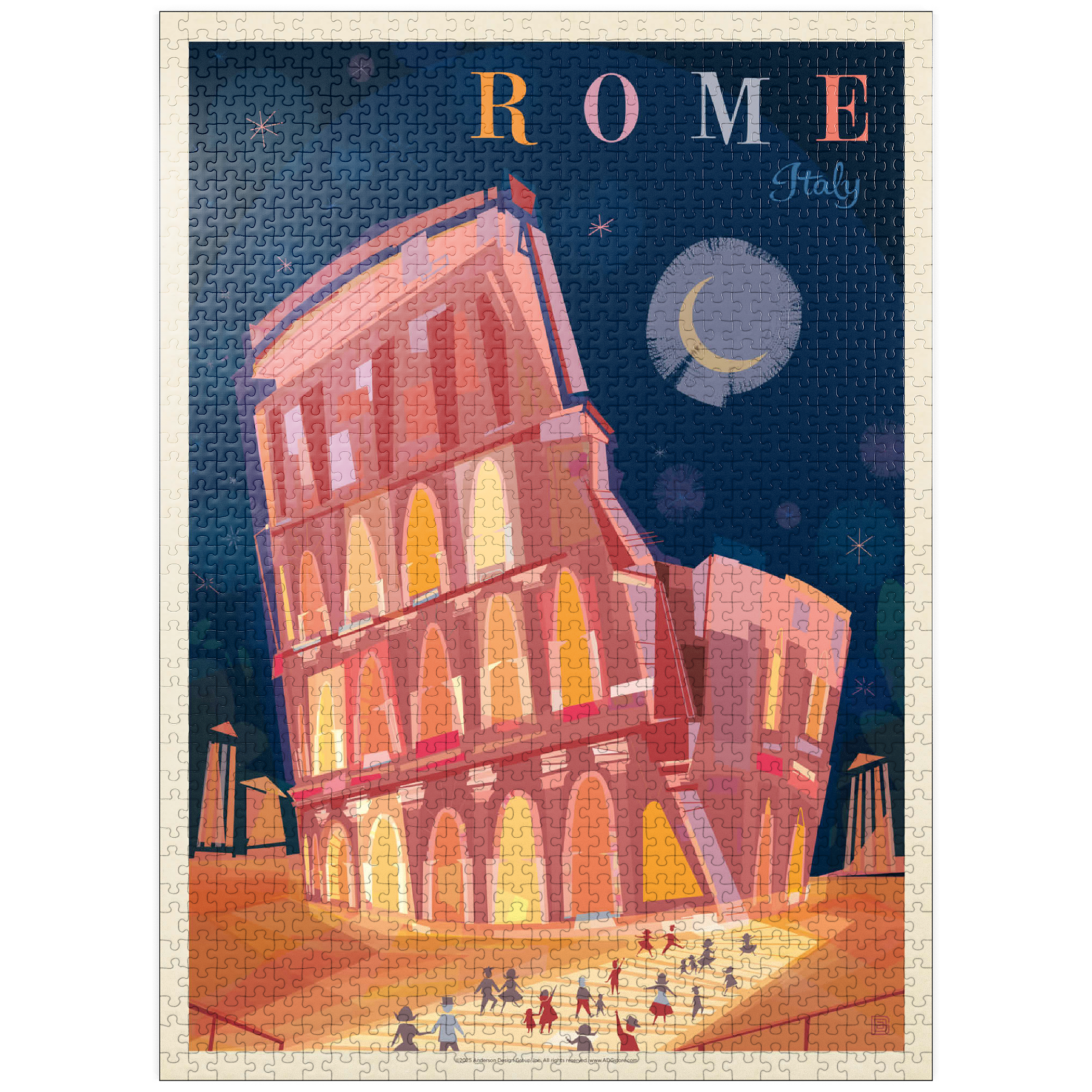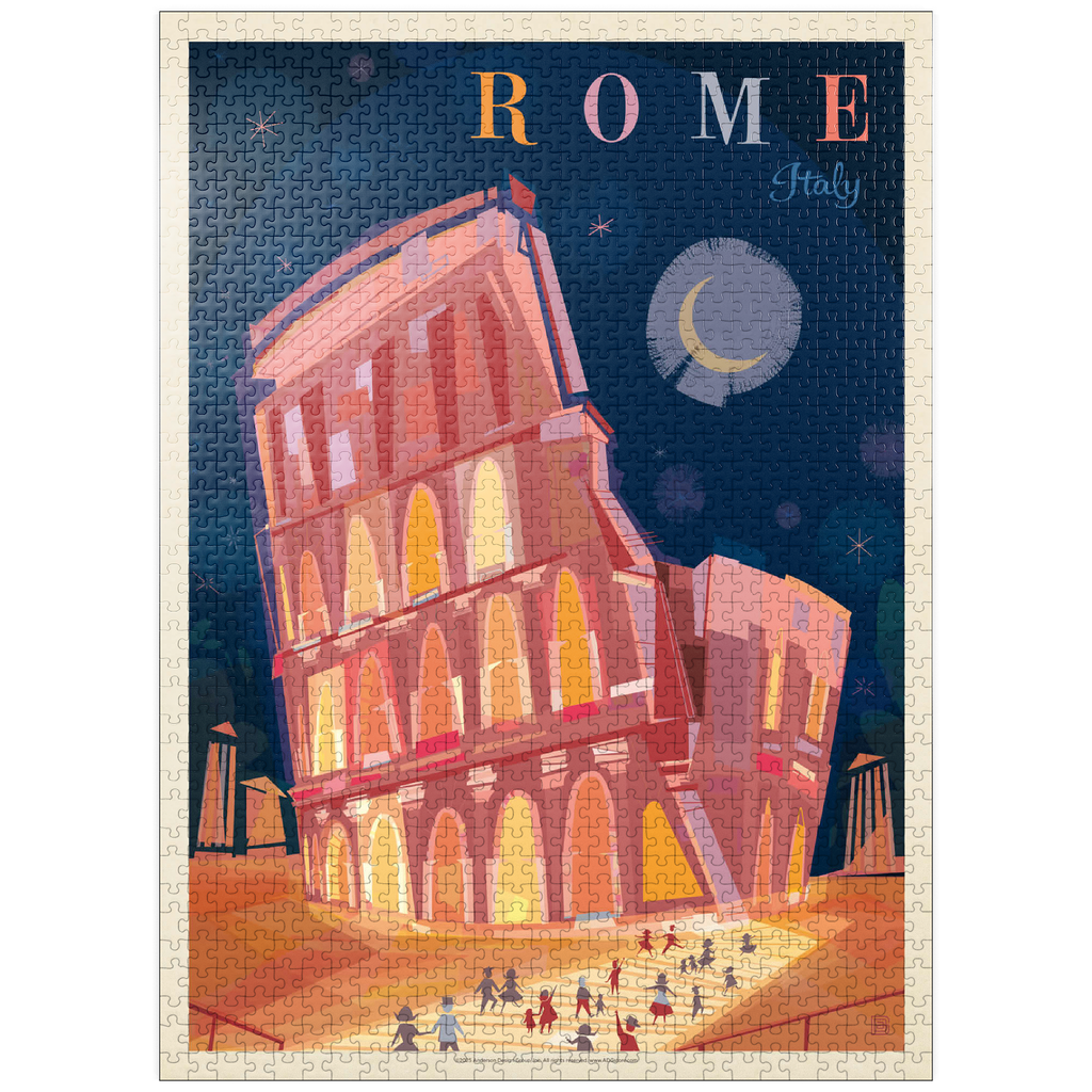 Step into the timeless grandeur of Rome, Italy, with this vibrant depiction of the iconic Colosseum under a starlit sky. The artwork captures the glowing arches of this ancient amphitheater, surrounded by lively crowds, celebrating the eternal city's rich history and culture.
