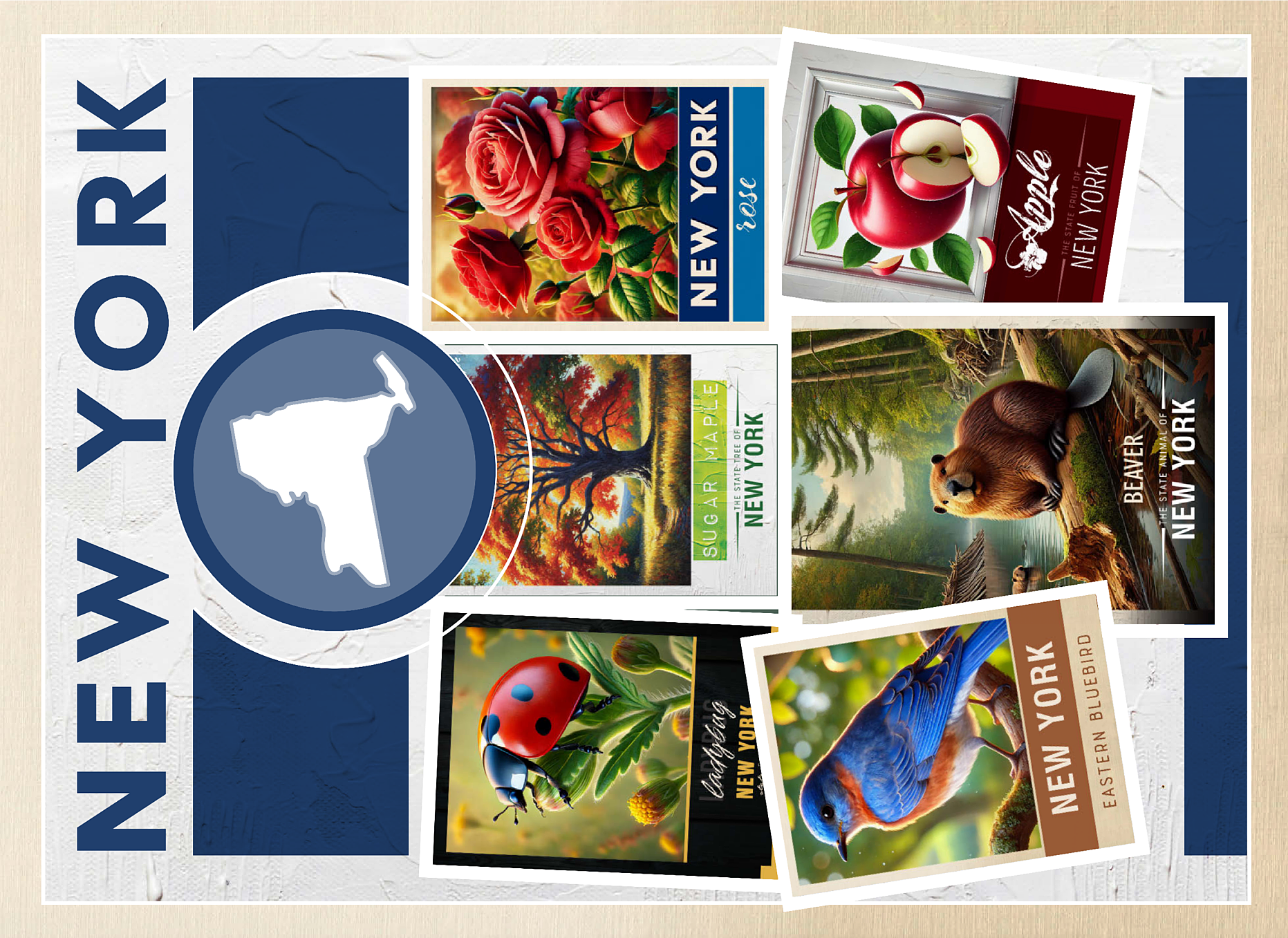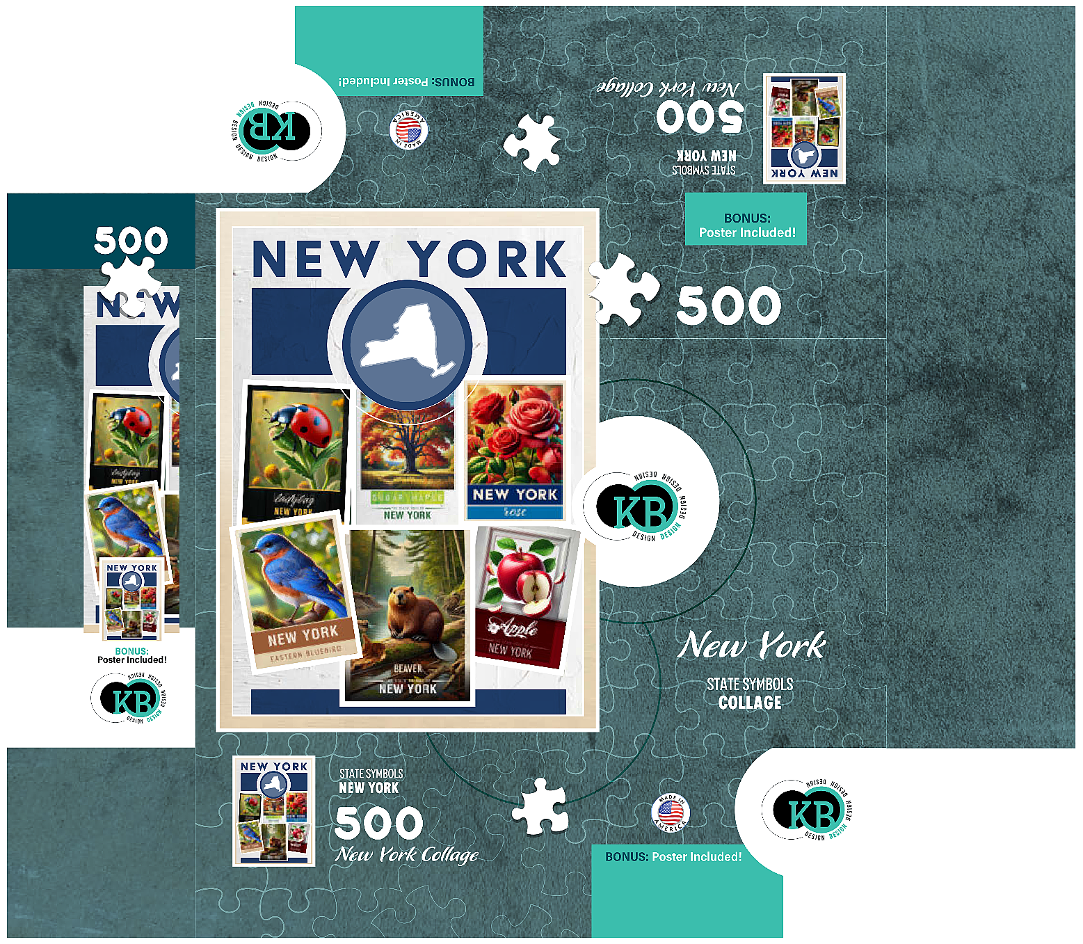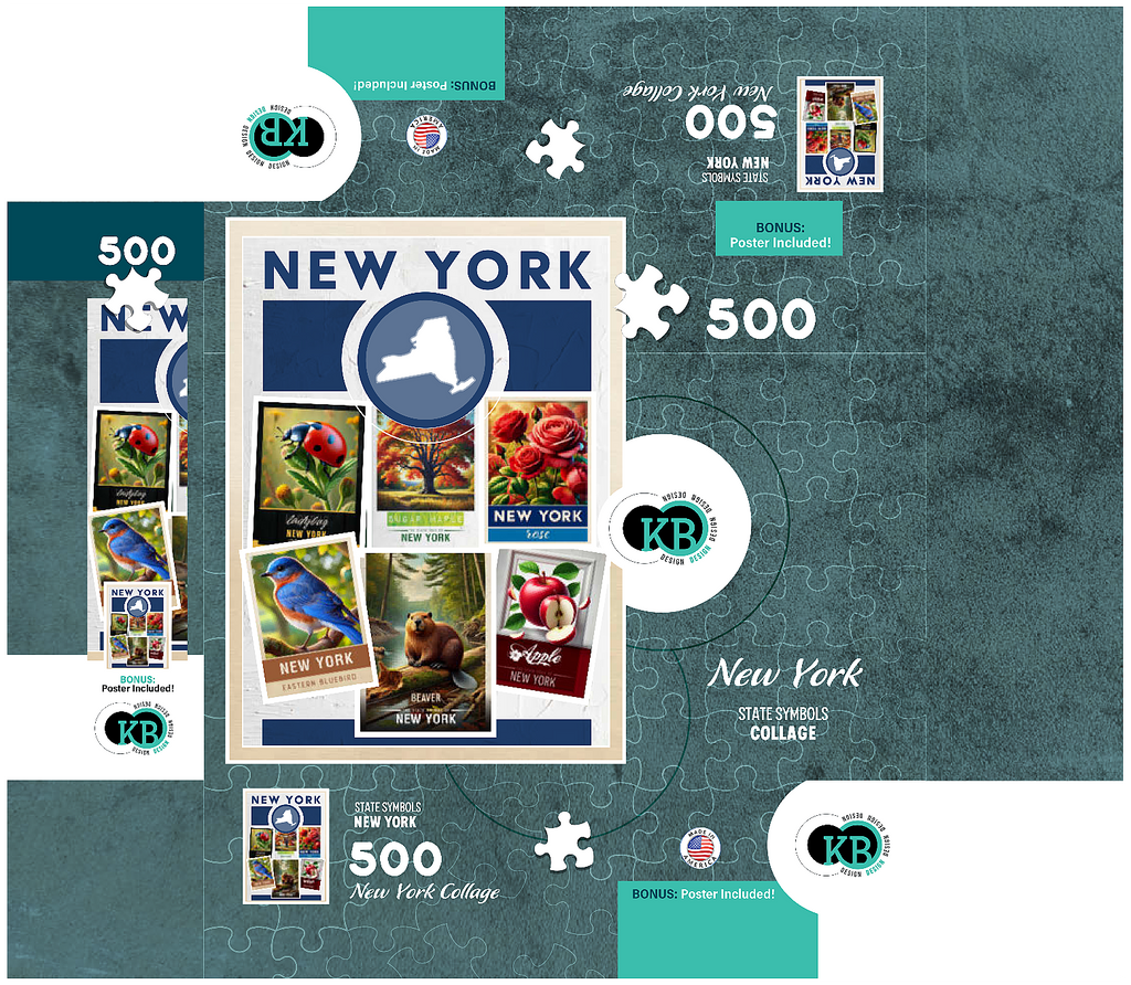The State Symbols Posters are a fun, colorful way to show your state pride. each poster features a collage of the state: animal, fruit, bird, flower, insect, and tree from the region. this would make a great gift for a fellow out-of-state puzzle-lover-or go on an 'adventure across the country' and collect them all for yourself!