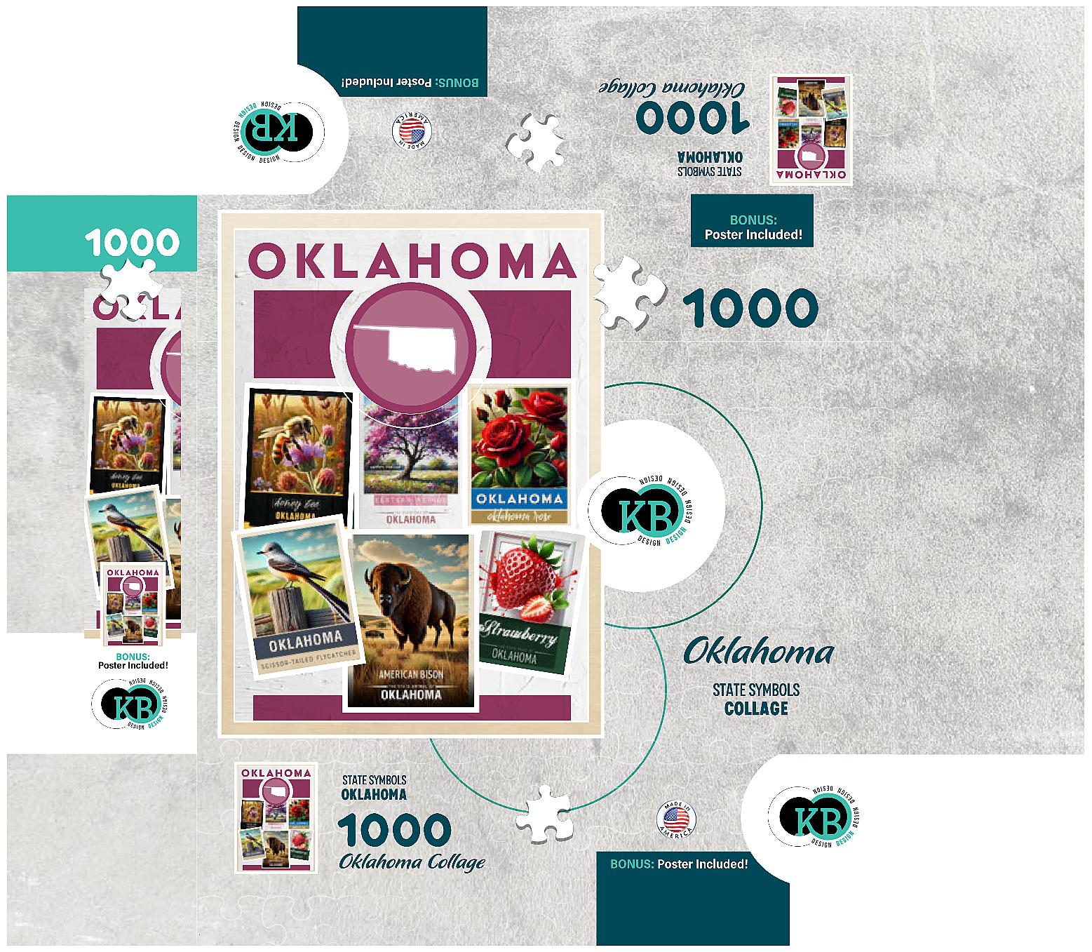 The State Symbols Posters are a fun, colorful way to show your state pride. each poster features a collage of the state: animal, fruit, bird, flower, insect, and tree from the region. this would make a great gift for a fellow out-of-state puzzle-lover-or go on an 'adventure across the country' and collect them all for yourself!