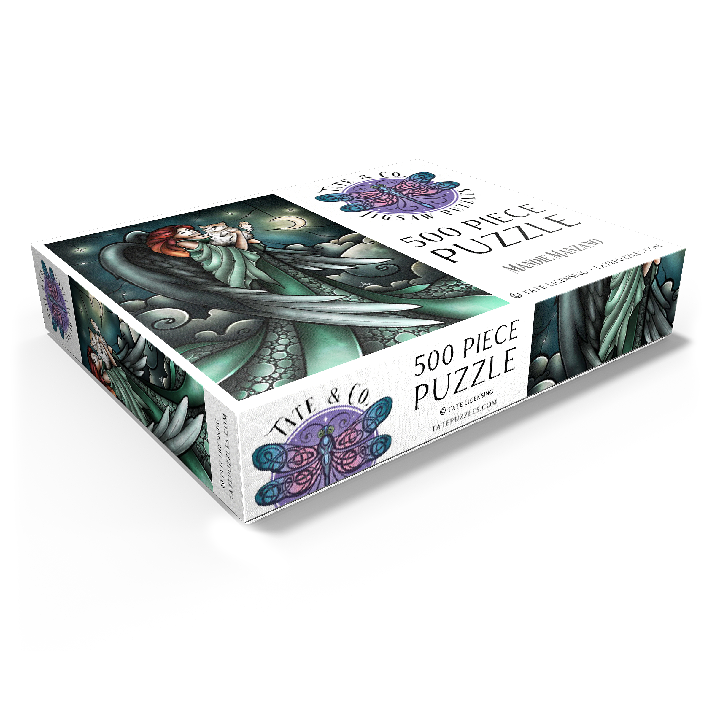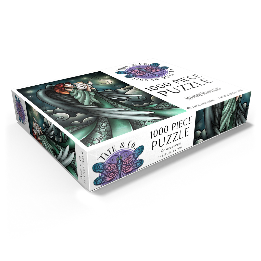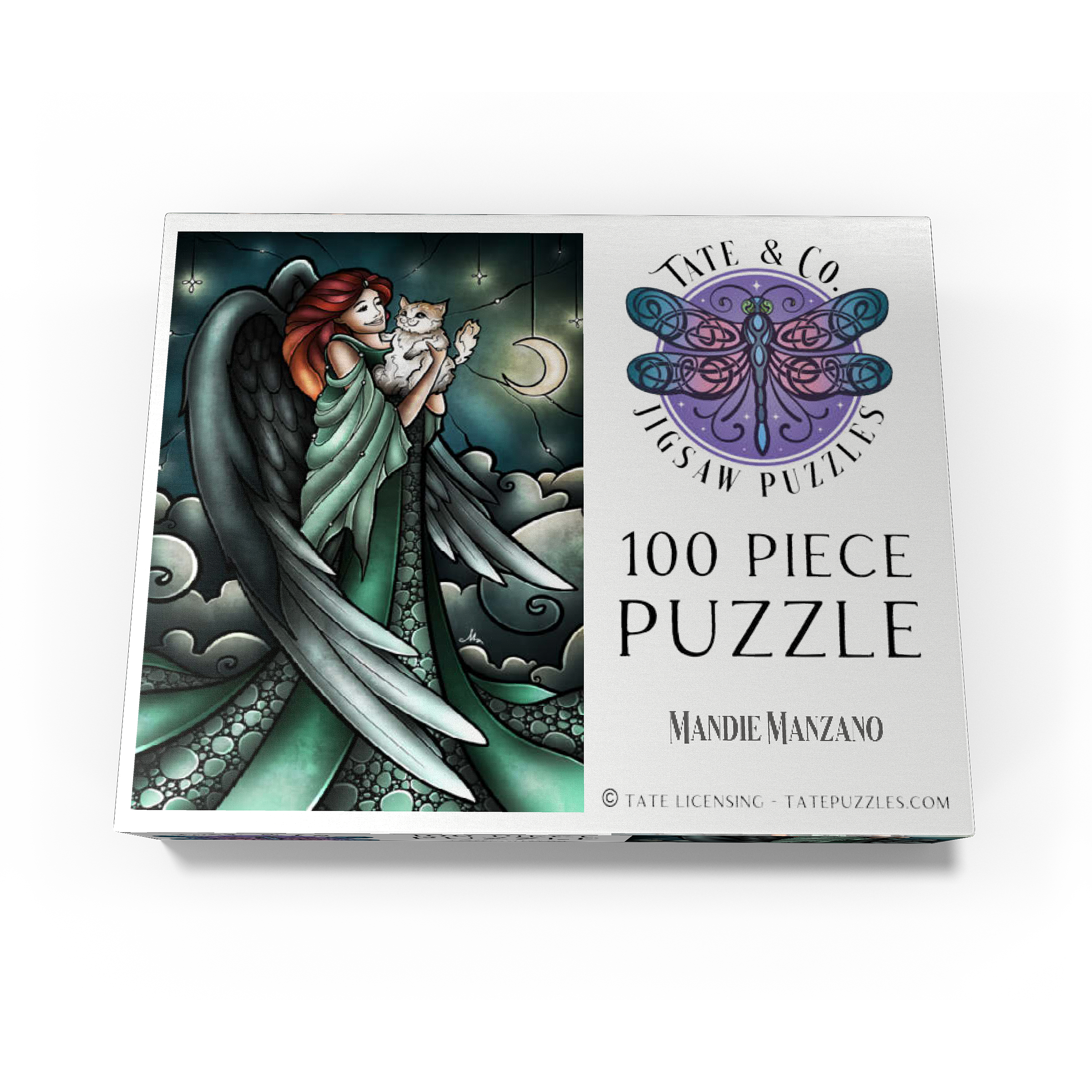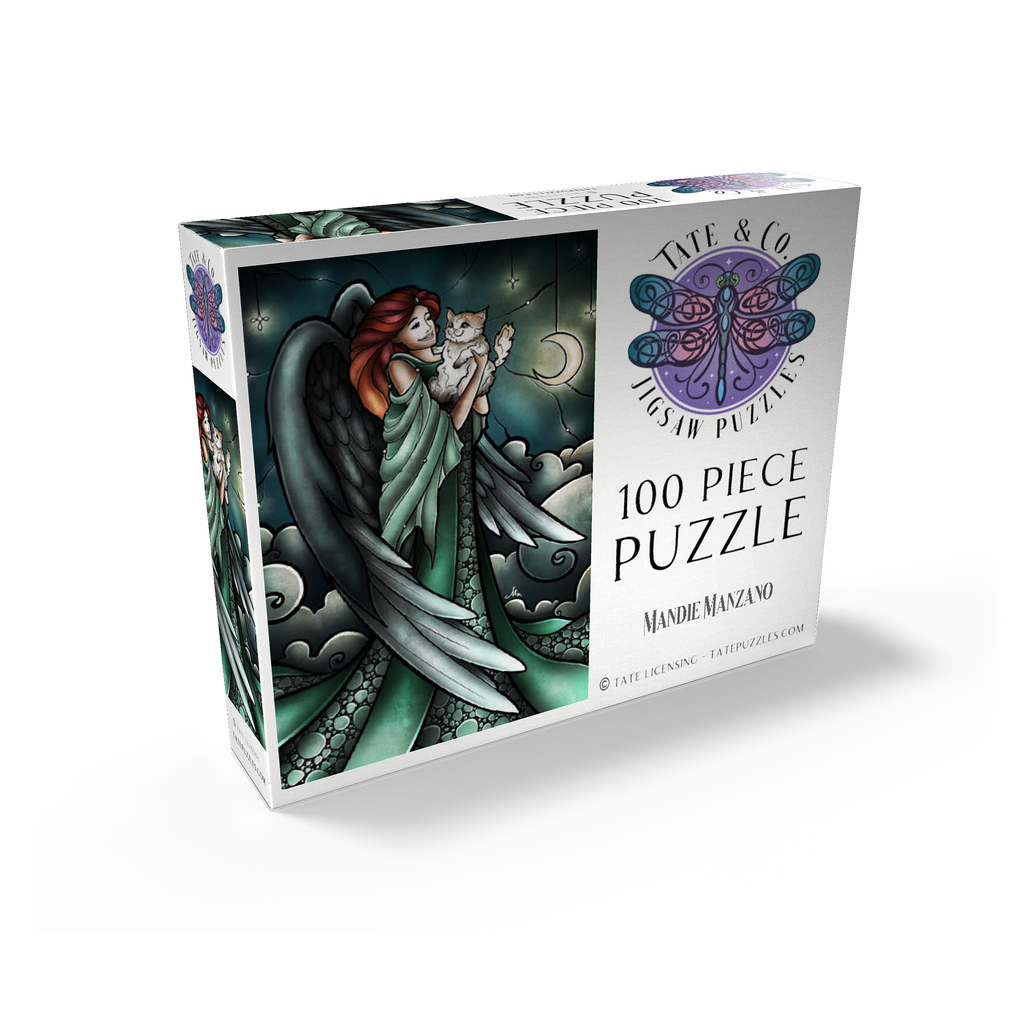 -Unwind and piece together this enchanting painting by Mandie Manzano, a tender depiction of the belief that our beloved feline companions find peace and joy in the afterlife. The overall mood is one of tranquility, comfort, and gentle love, evoking a sense of peace and reassurance about our feline friends. A heartwarming puzzle for cat lovers and dreamers alike.
