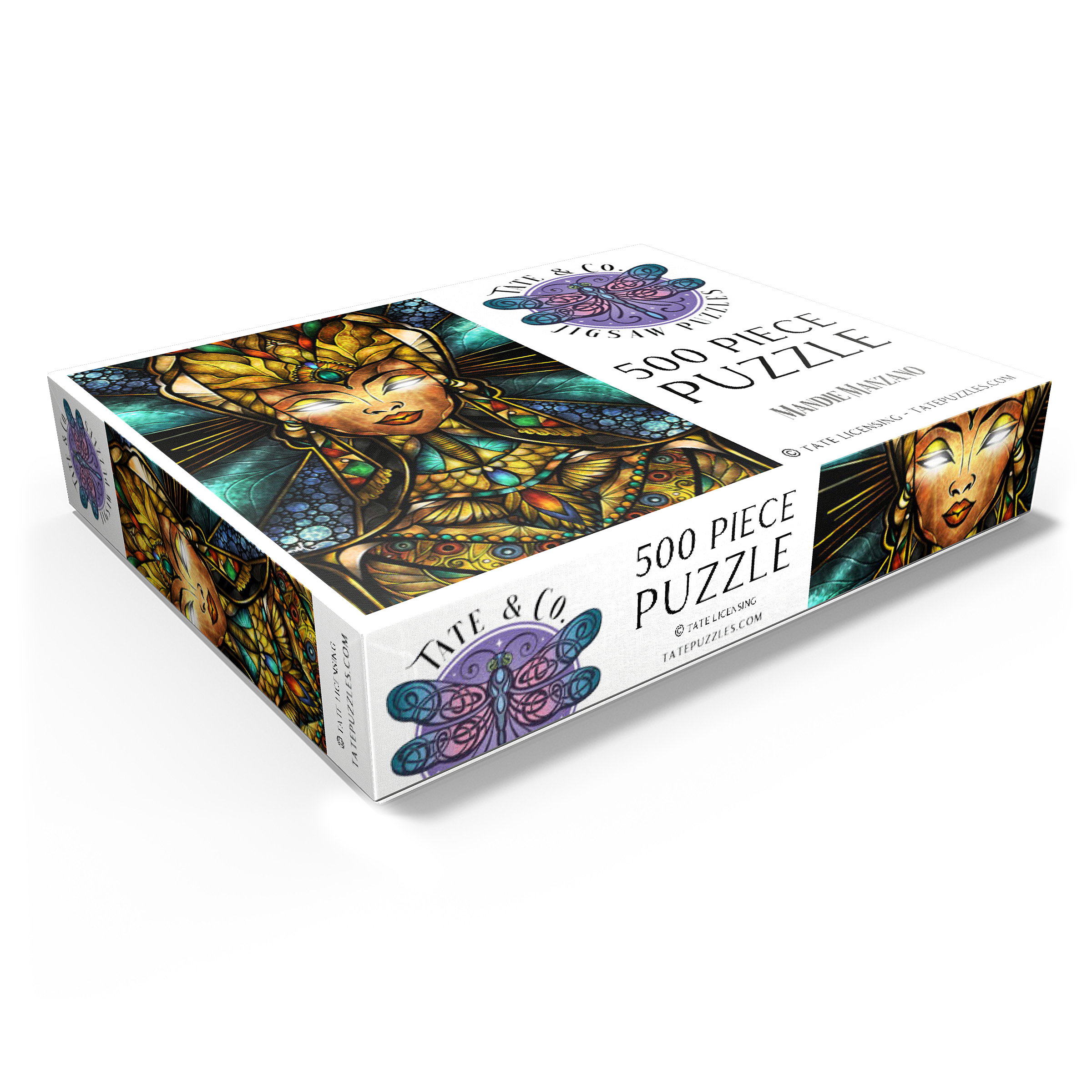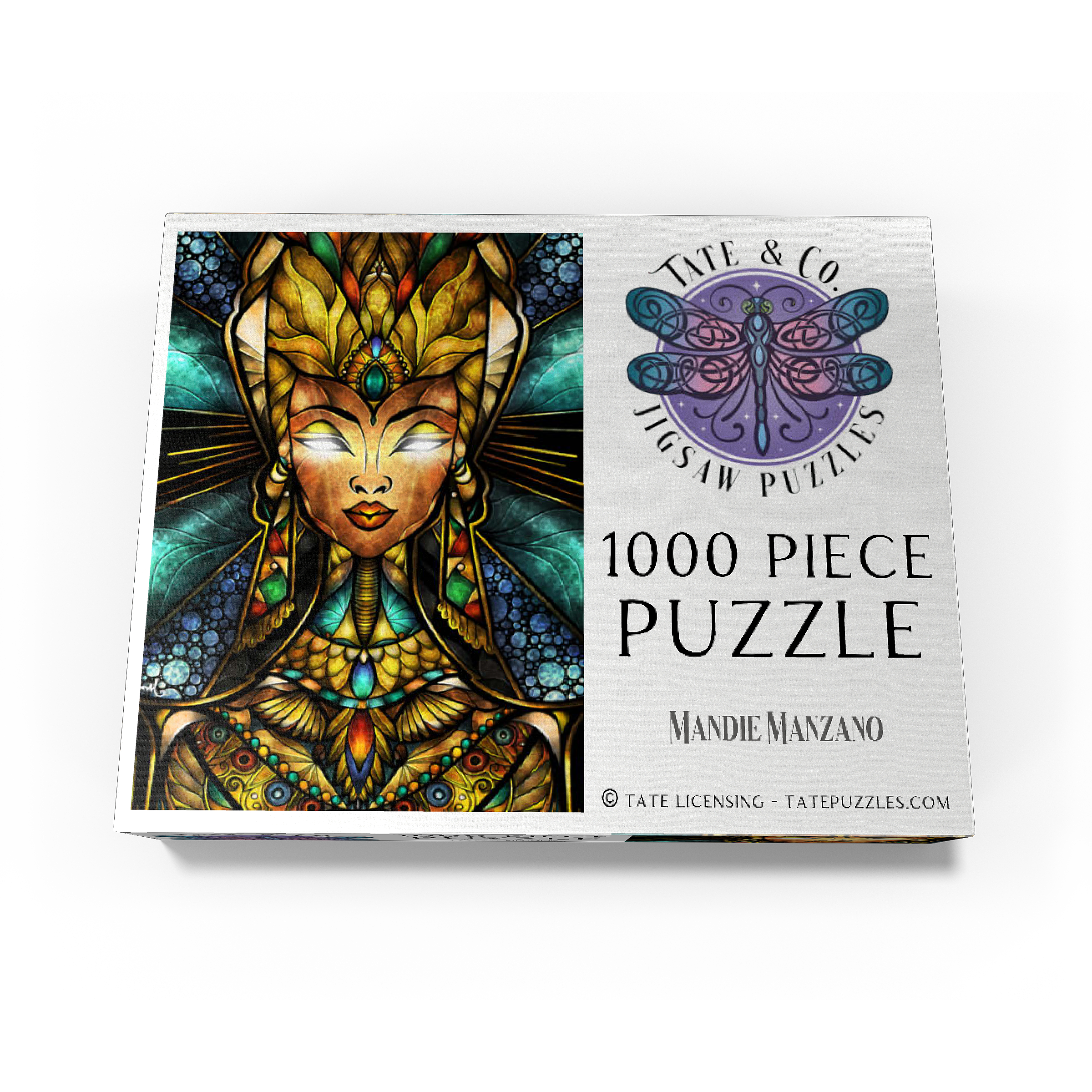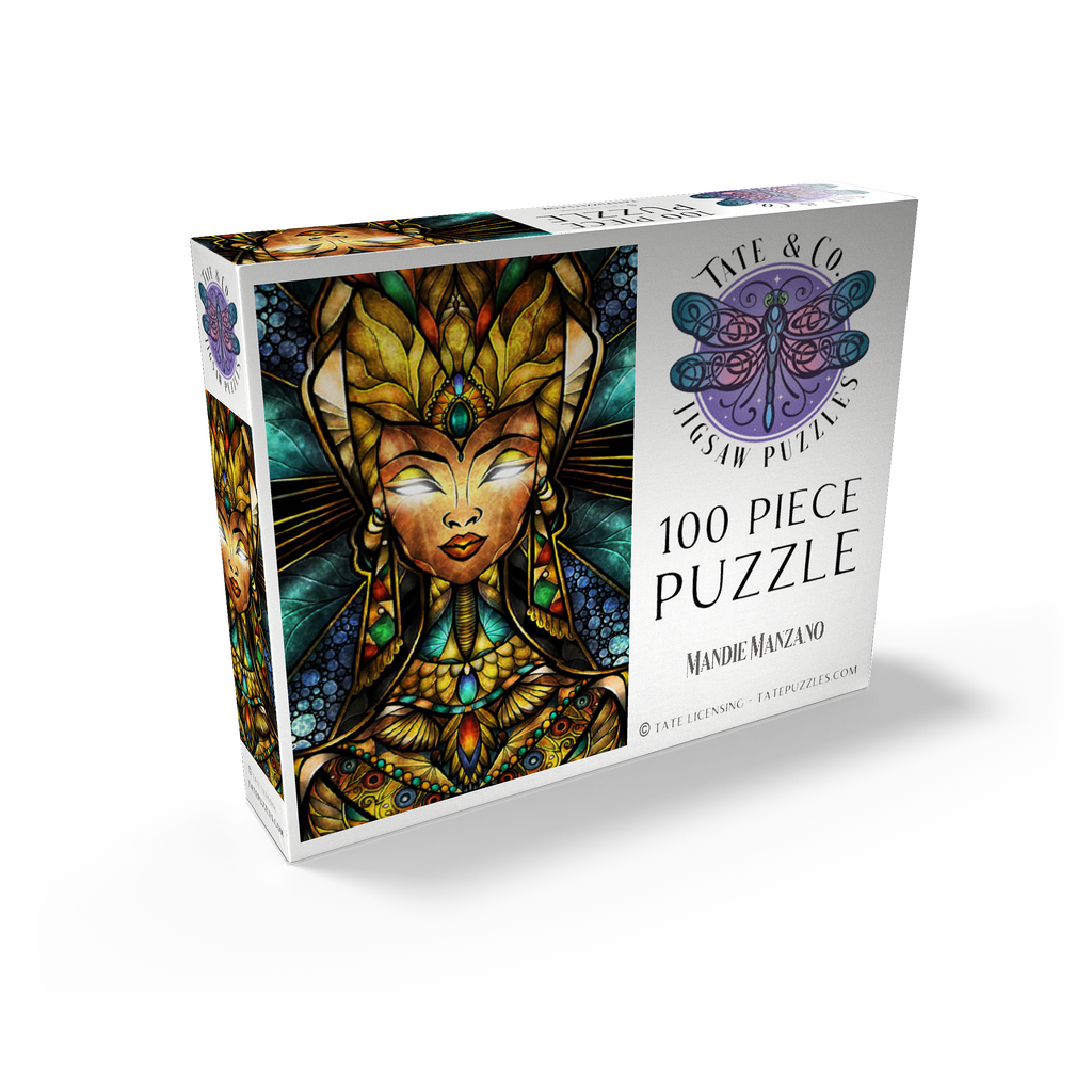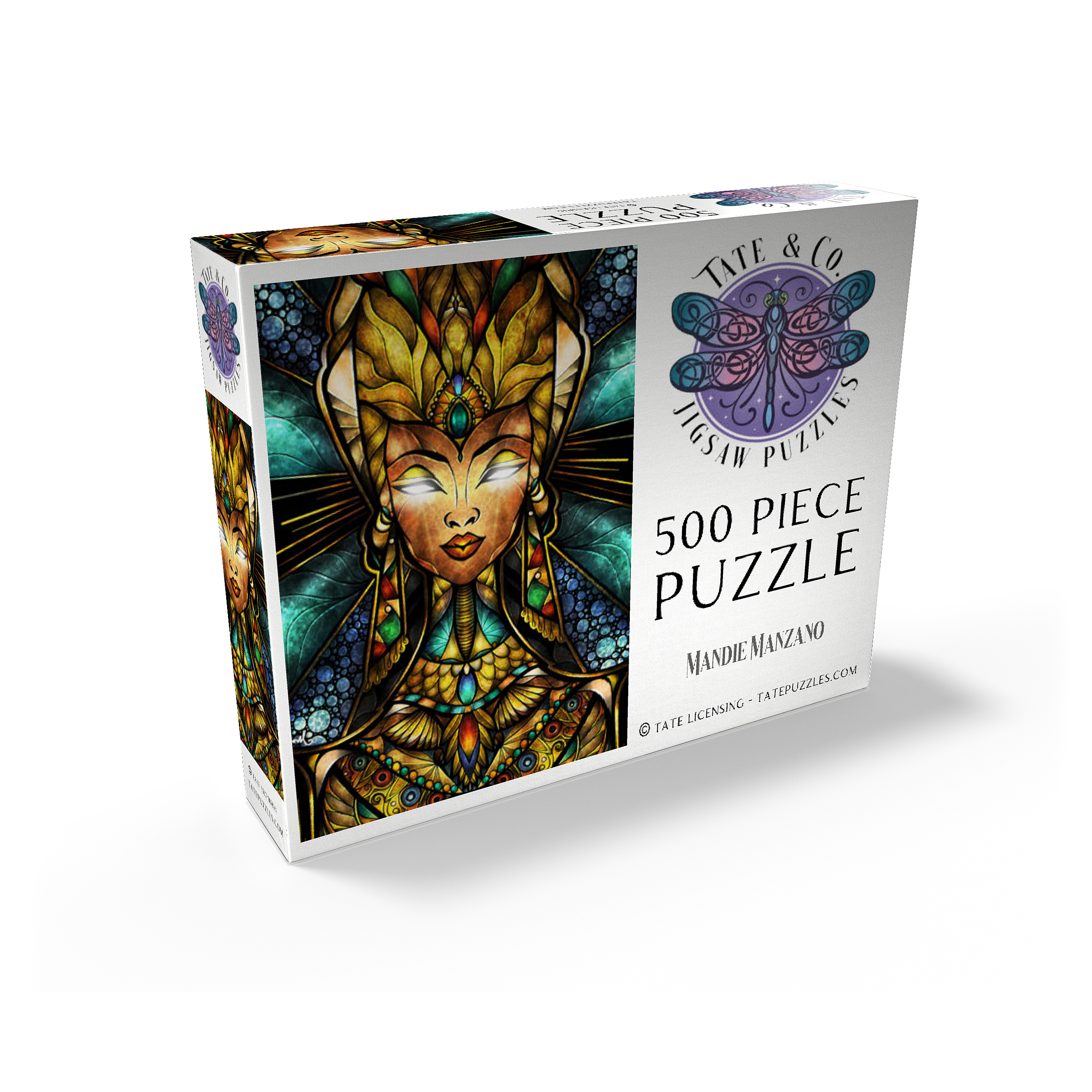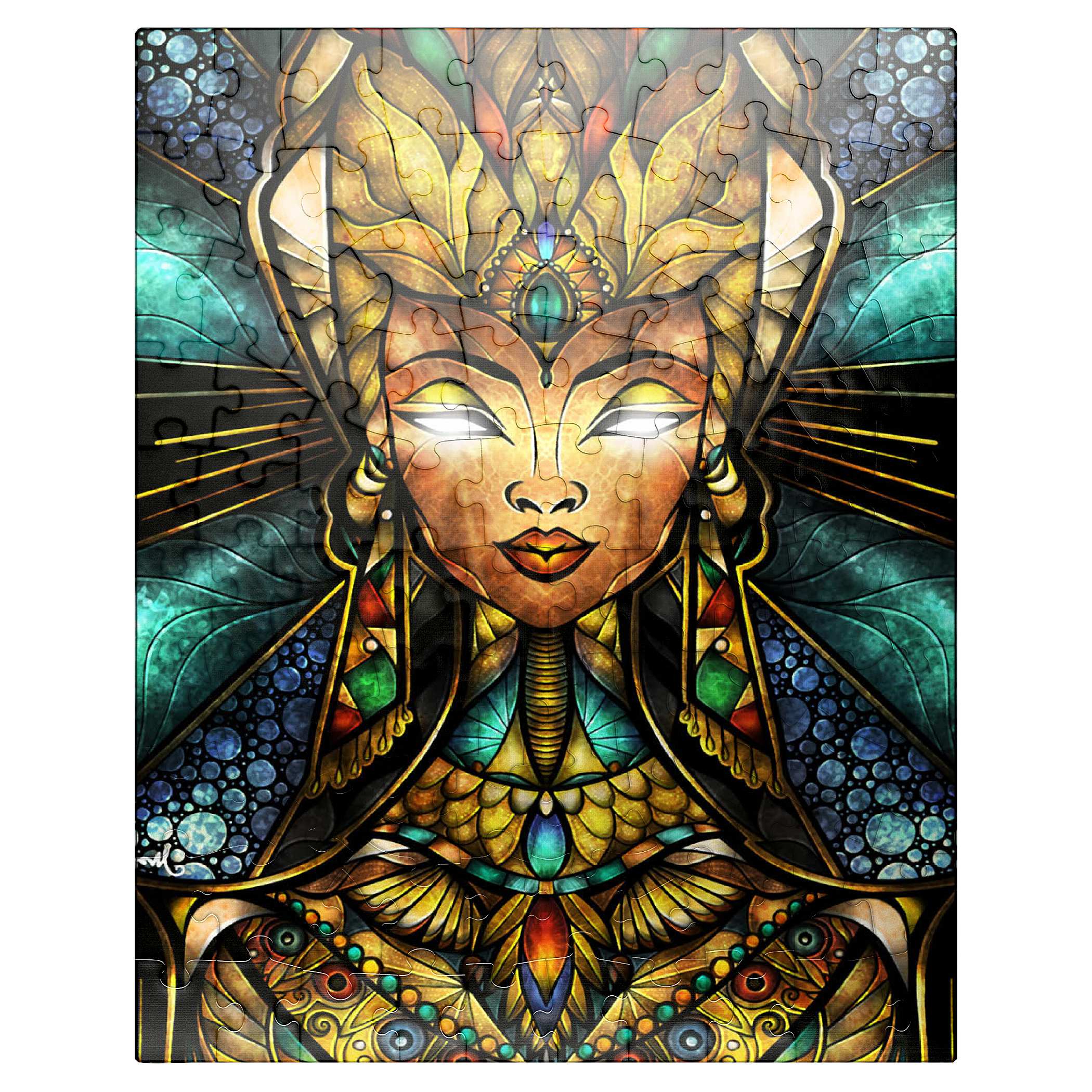 Unveil the regal beauty of Nefertiti! Piece together this striking, stained-glass style portrait of the iconic Egyptian queen. Her serene face, adorned with a magnificent headdress embellished with gold and jewels, commands attention. Intricate patterns in teal, gold, and vibrant hues create a sense of ancient splendor and mystique. Experience the timeless elegance and power of Nefertiti with every uniquely shaped puzzle piece.