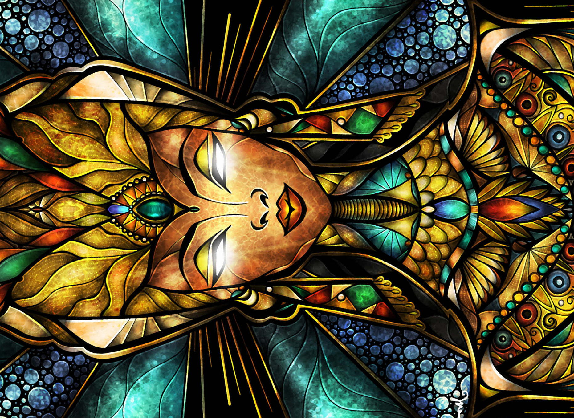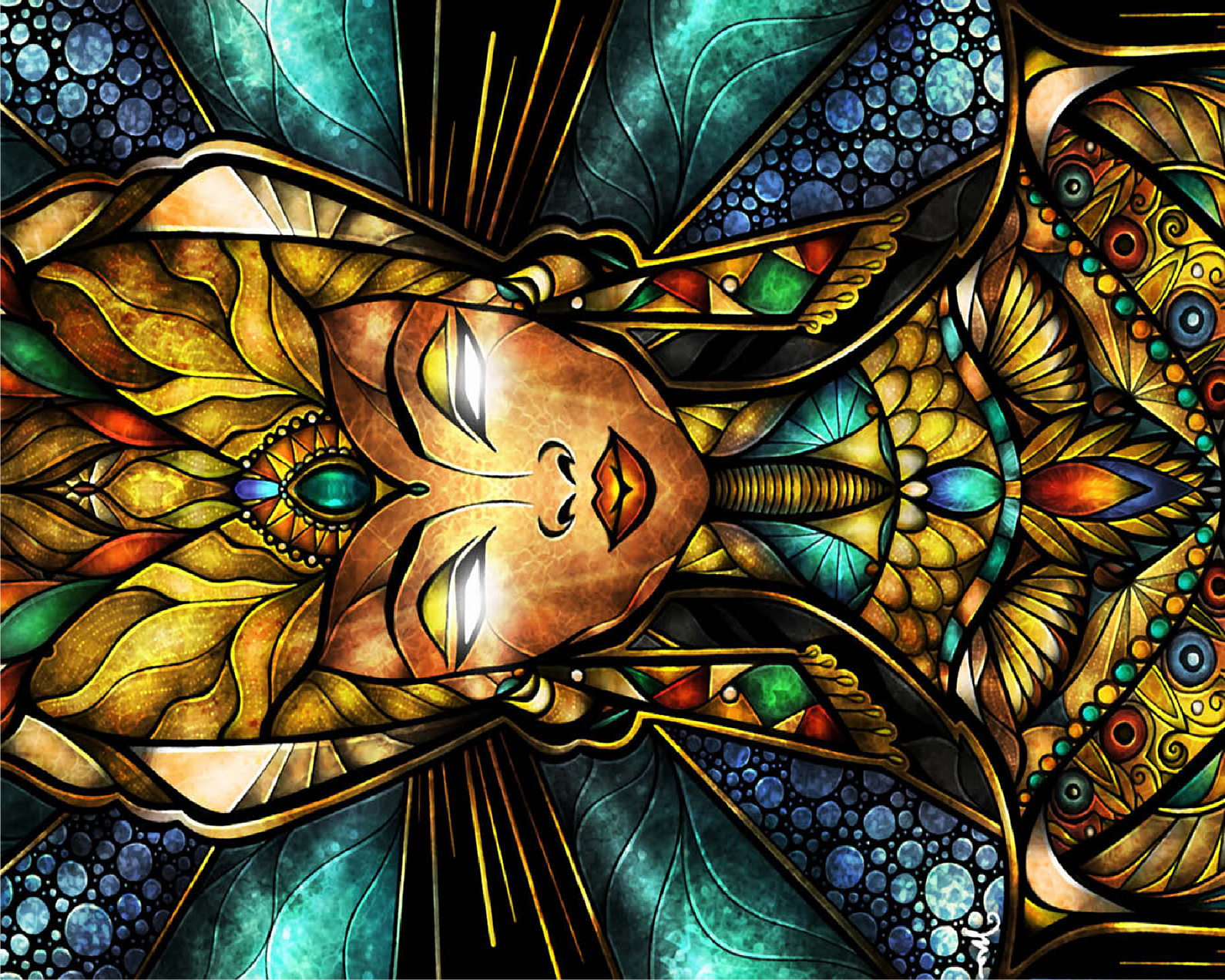 "Like panes of colored glass filtering sunlight, Mandie Manzano’s work seems fit for a Monastery or faraway castle. Gentle maidens and lush environments fill each scene, crafting a story and enchanting the eyes. Manzano builds her compositions with light as her primary medium. Rays break through, colors gradate, and warmth permeates throughout. Each is a luminous patchwork of vibrant blocks, connected by bold tendrils and patterned stripes. Capturing an ineffable beauty, Manzano’s work reminds us that our full brilliance is revealed only when our own light from within shines through."