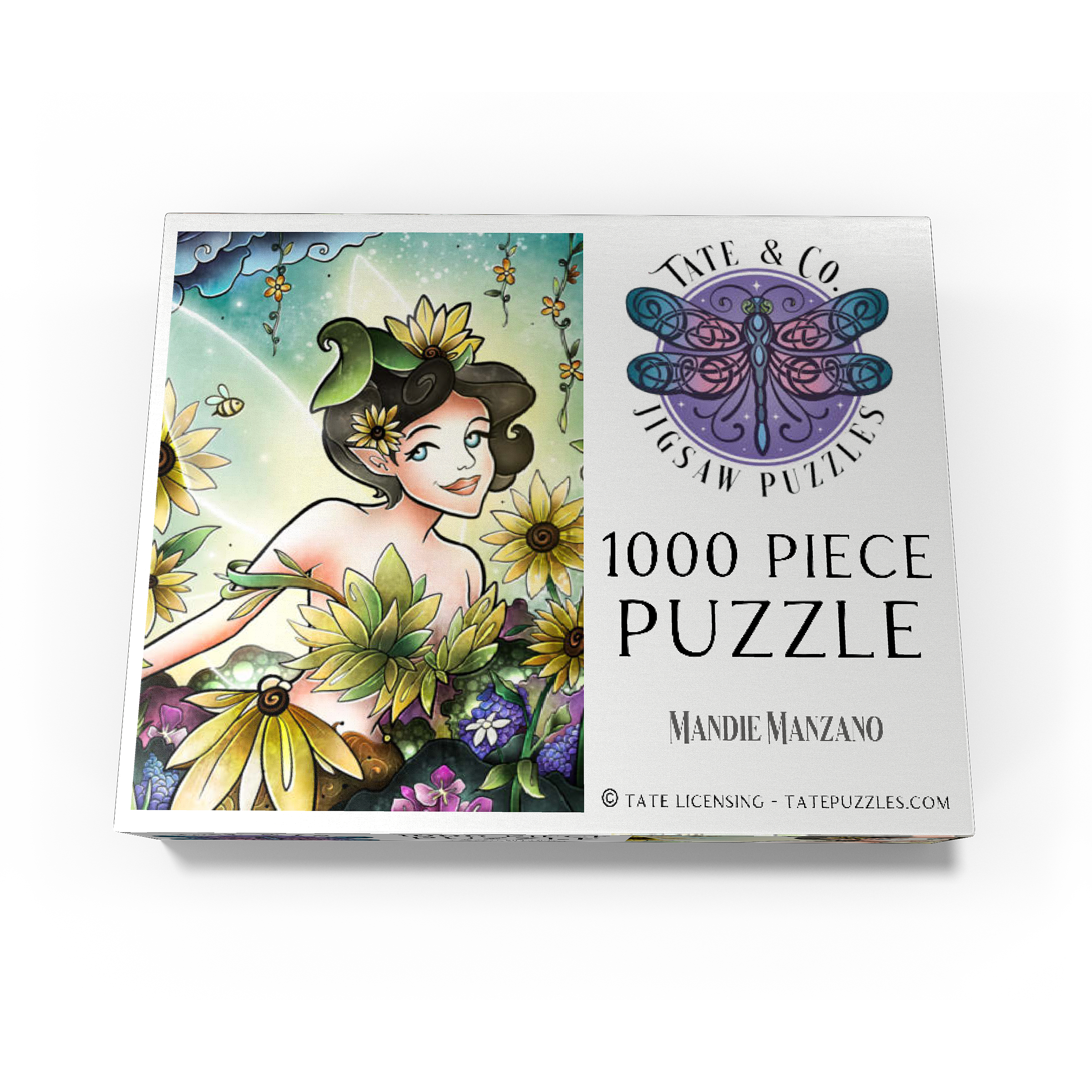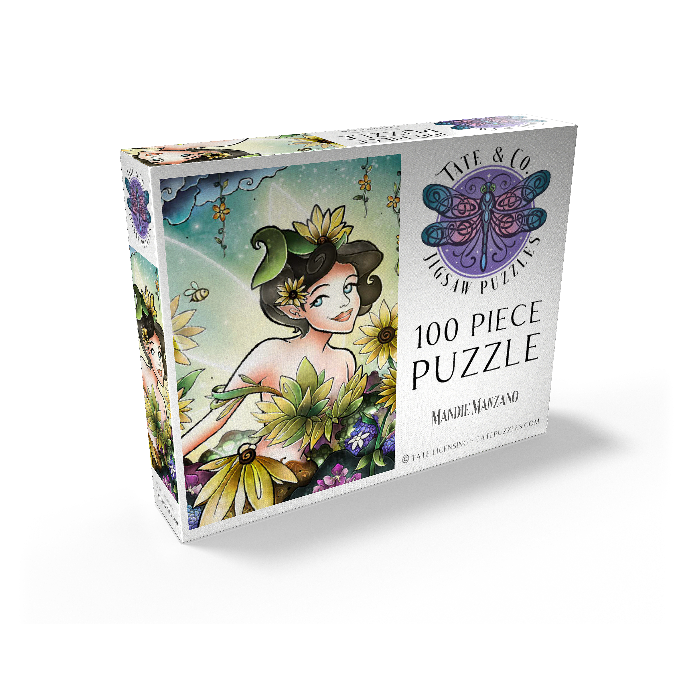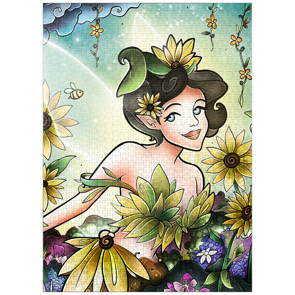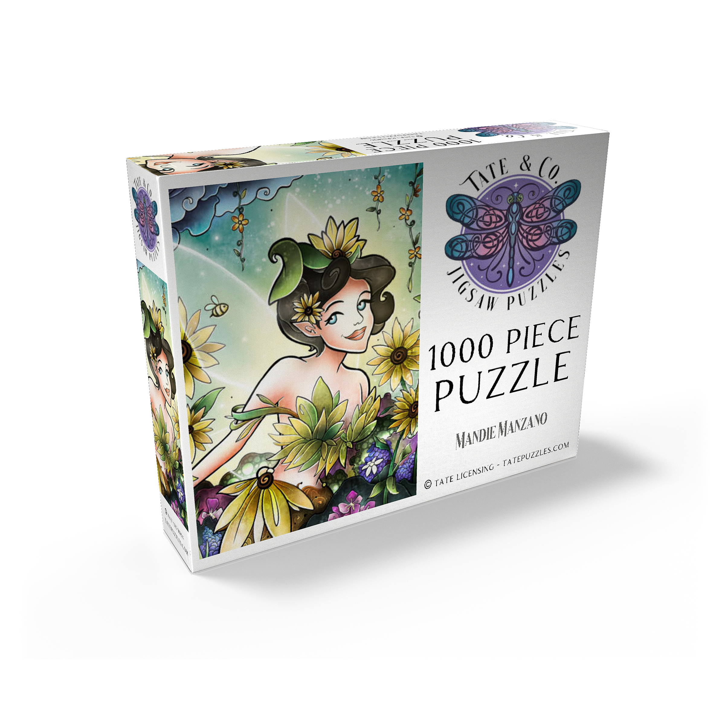 Step into the warmth of -Cyrus the Fairy of Summer- by Mandie Manzano! Piece together this sun-kissed scene of a cheerful fairy surrounded by vibrant summer blooms, including bright sunflowers. With delicate wings and a joyful expression, Cyrus embodies the energy of the season. A buzzing bee adds to the lively atmosphere. Immerse yourself in the radiant colors and summery charm of this delightful puzzle.
