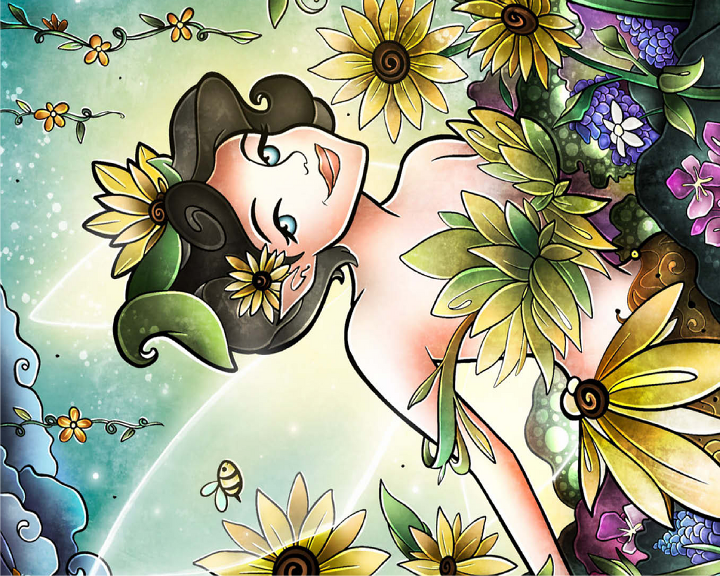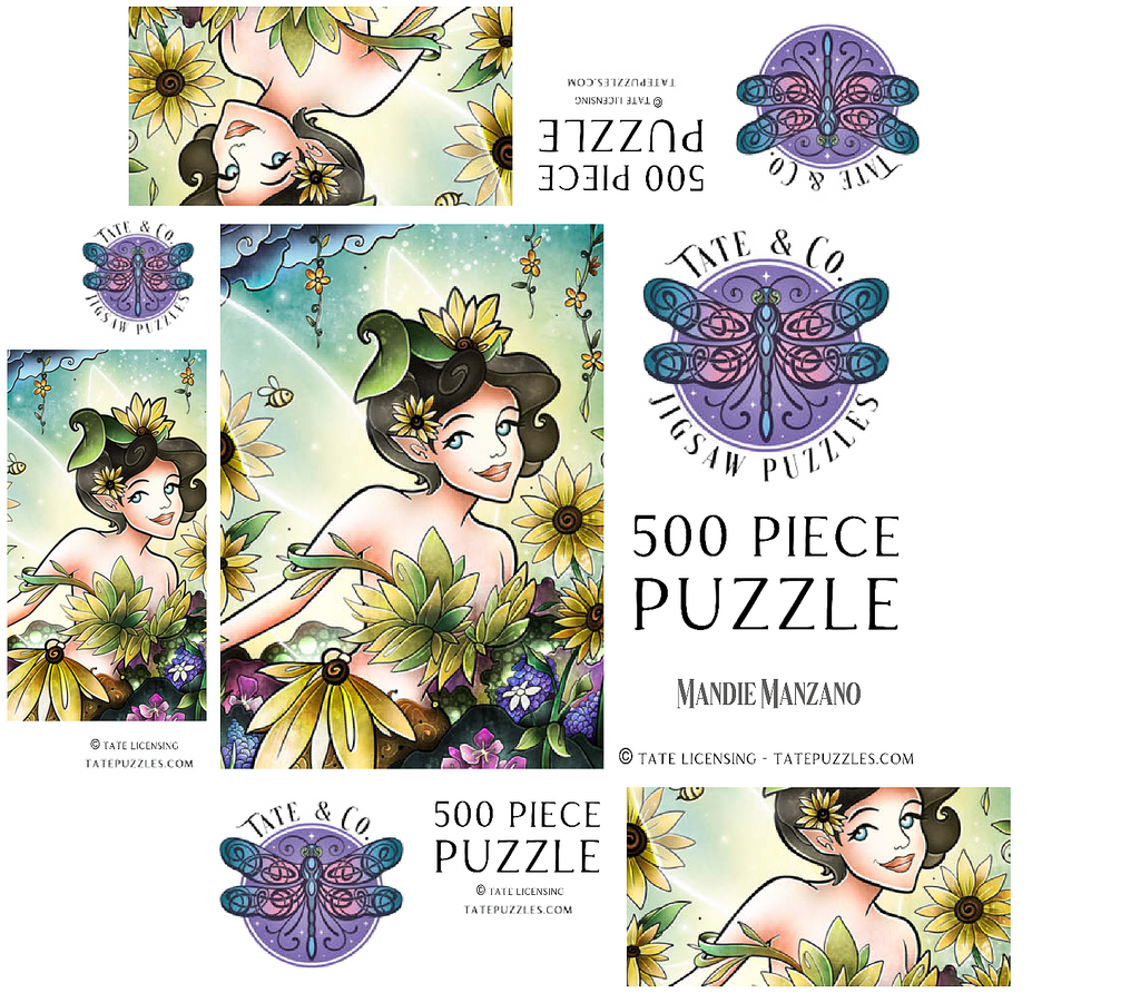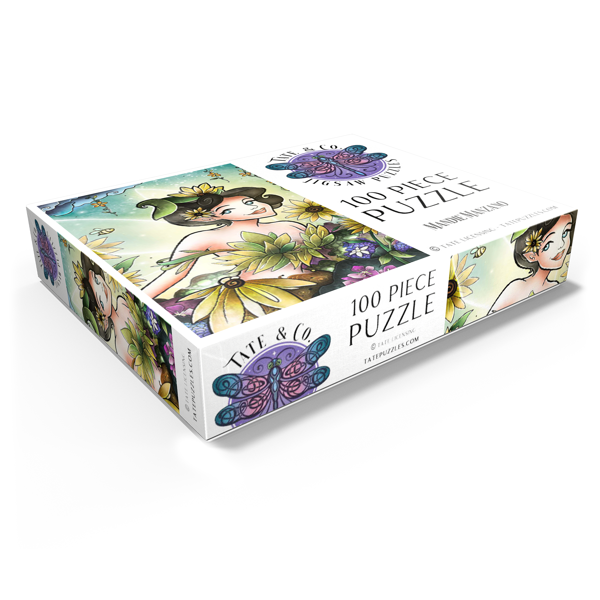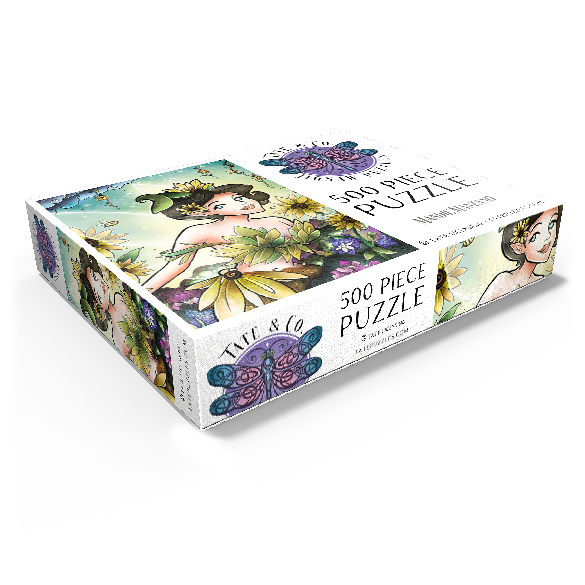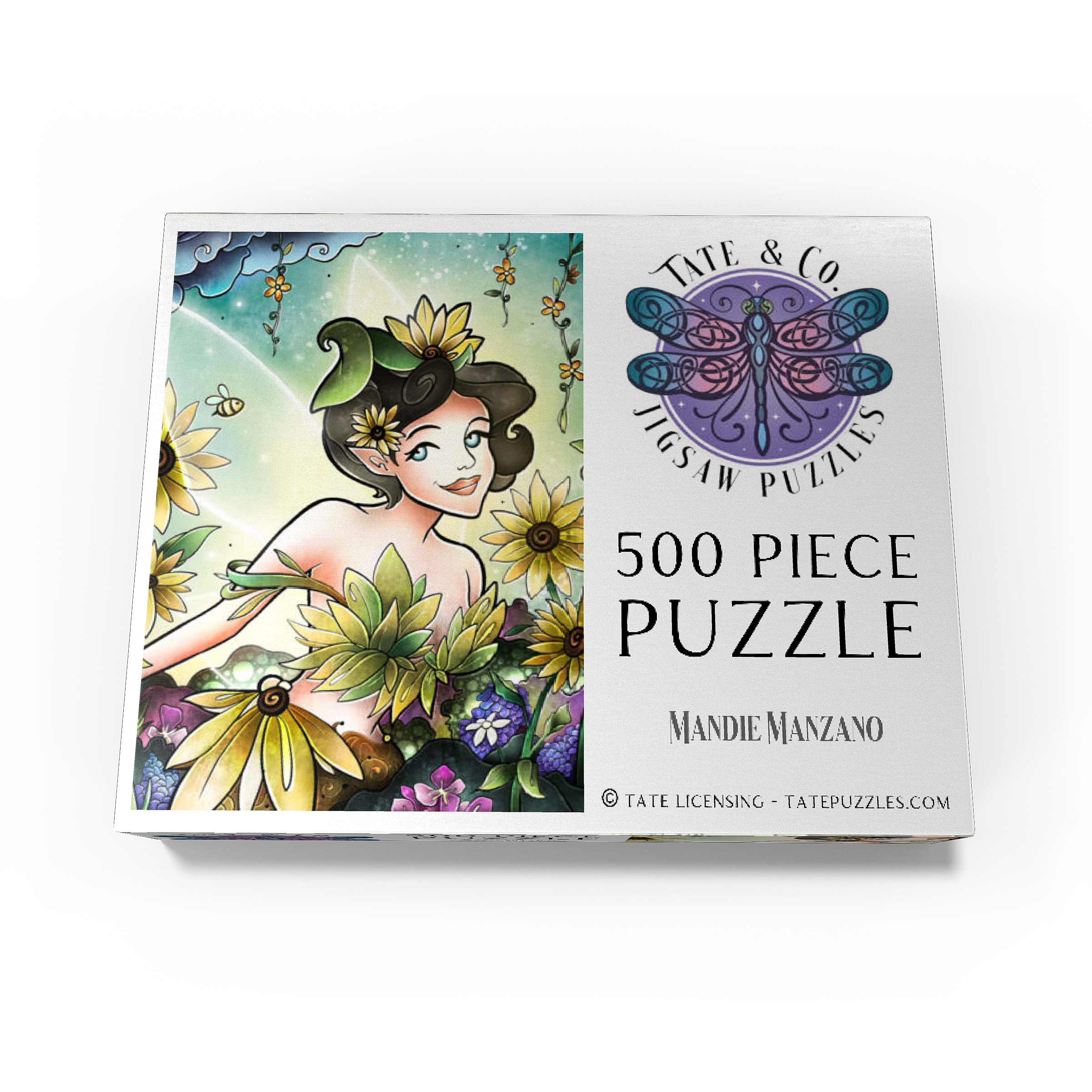 Step into the warmth of -Cyrus the Fairy of Summer- by Mandie Manzano! Piece together this sun-kissed scene of a cheerful fairy surrounded by vibrant summer blooms, including bright sunflowers. With delicate wings and a joyful expression, Cyrus embodies the energy of the season. A buzzing bee adds to the lively atmosphere. Immerse yourself in the radiant colors and summery charm of this delightful puzzle.