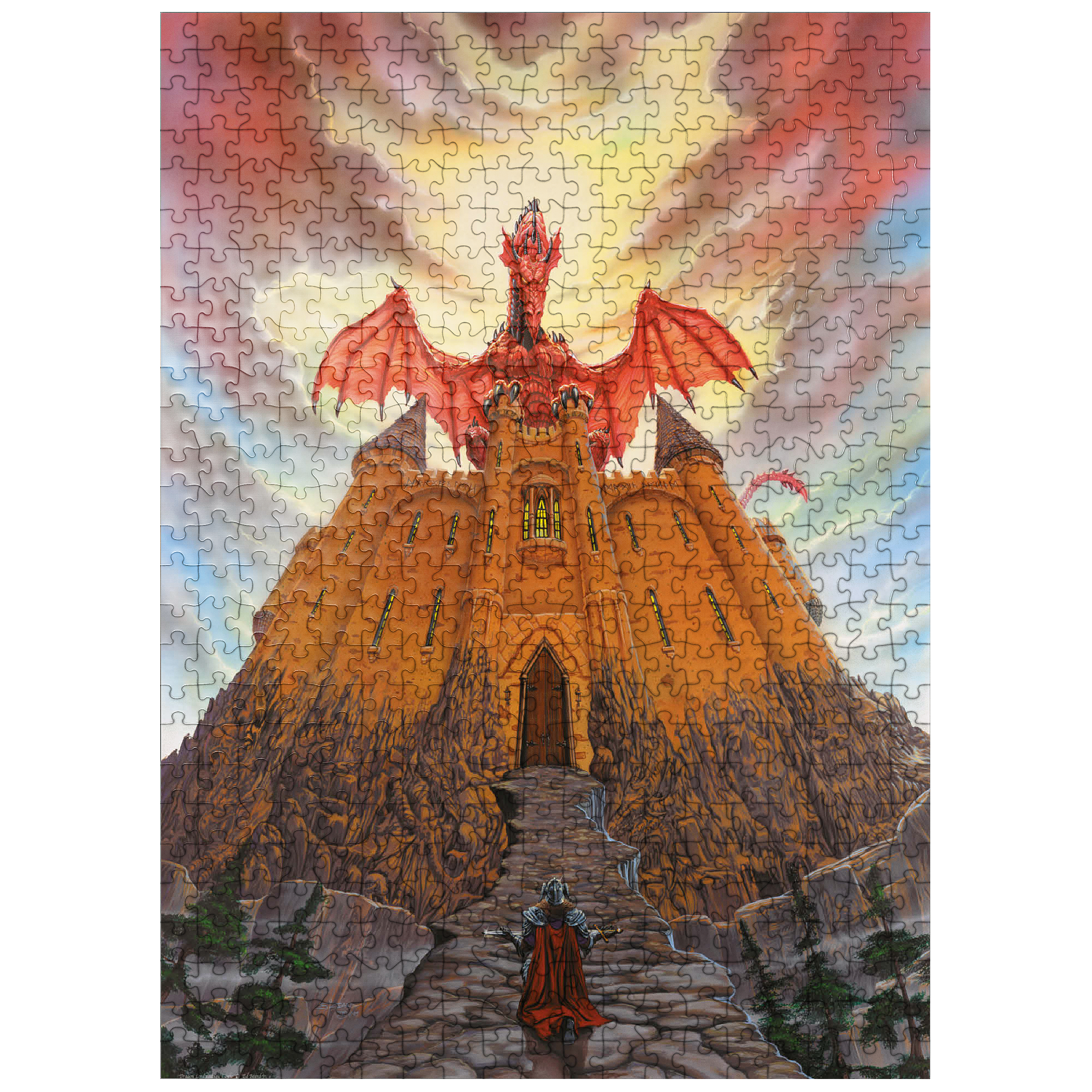 The Dragon Lord's Magic Castle depicts a great and noble ancient crimson dragon. he is the keeper and guardian of enchanted treasures. these artifacts are kept protected by the most impenetrable and mysterious of keeps. only the bravest knights would attempt to acquire permission to what lies within the great hall doors. the crimson dragon requires a gift of extreme value in exchange for one attempt at solving the riddle, or in this case, the hidden objects that have embedded themselves into the foundation of this fortress. there are 22 hidden objects in all.