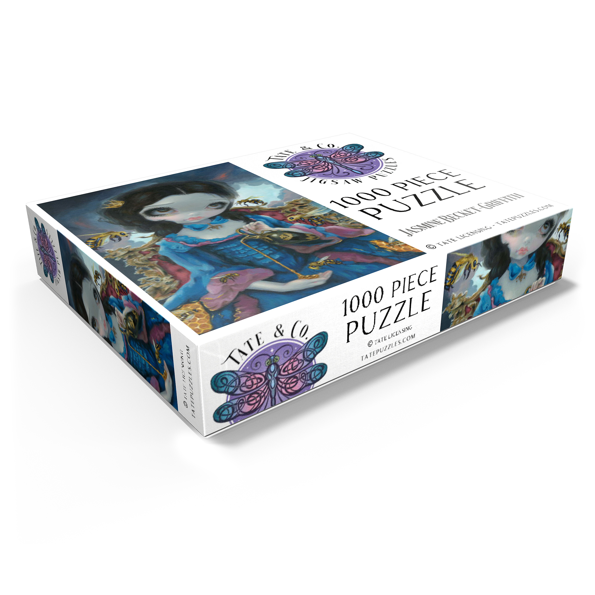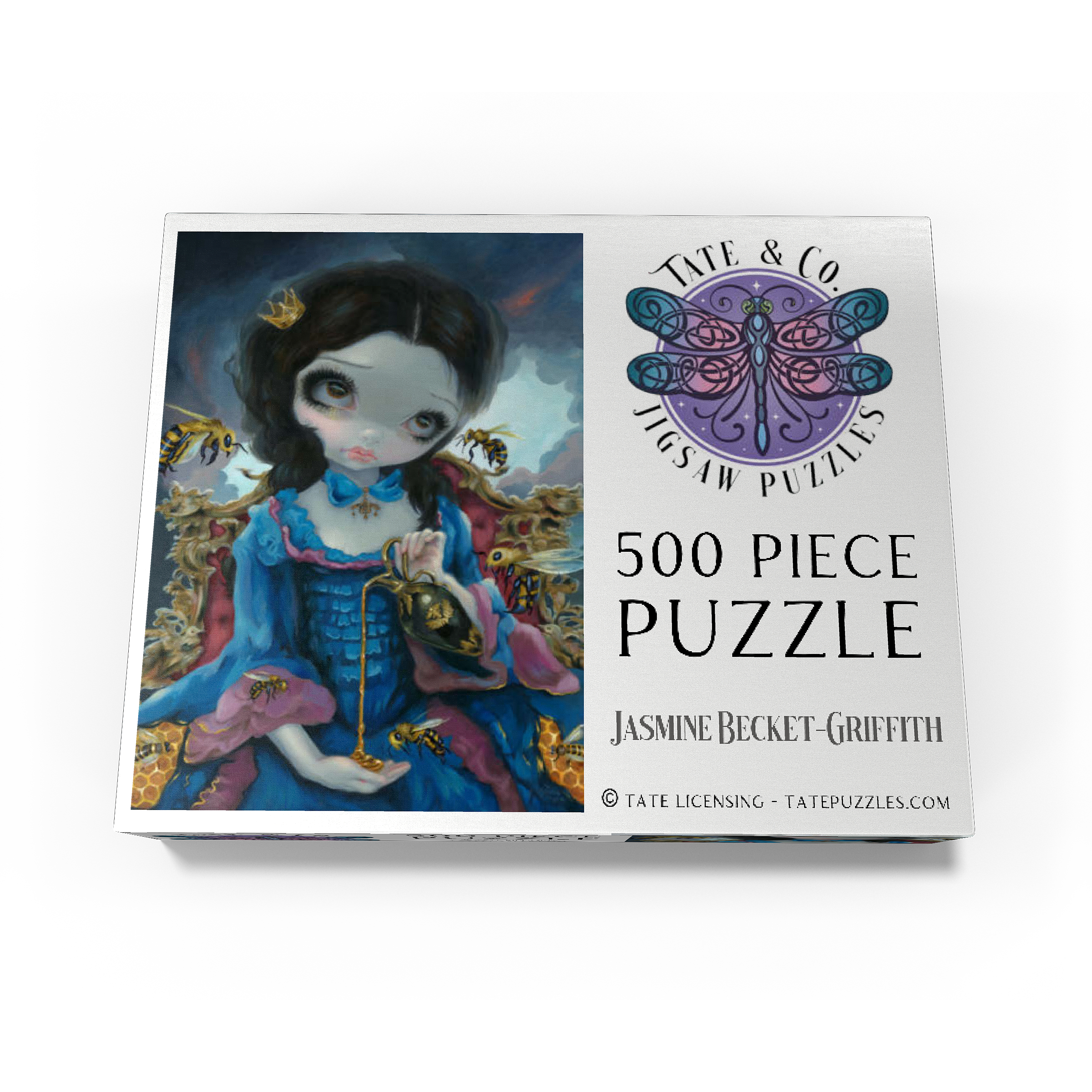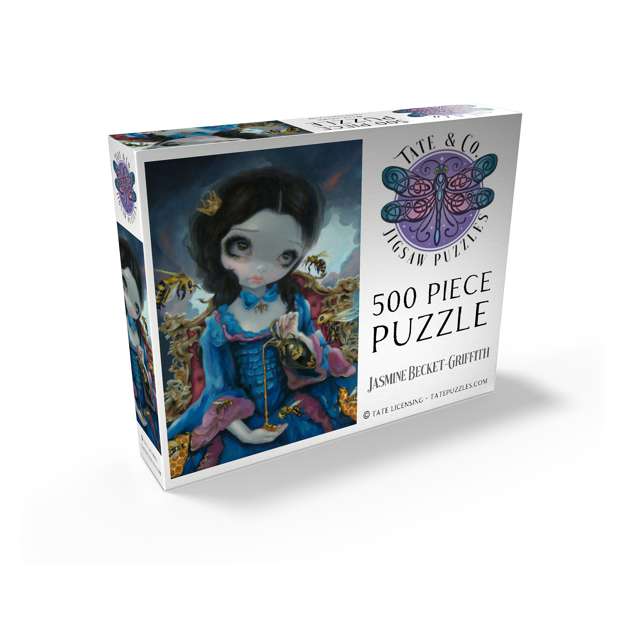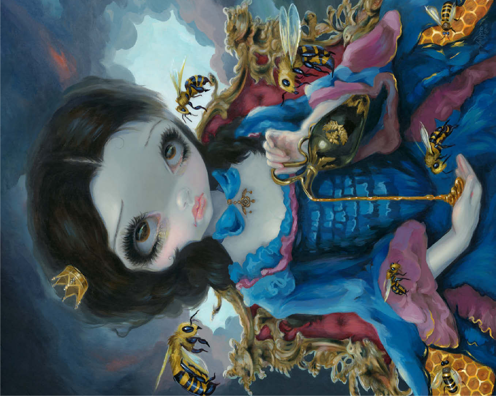 Unpuzzle the regal -Queen of Bees-! Assemble a stunning Rococo portrait of a queen surrounded by intricate bee details. Discover historical references, including a Minoan bee pendant and Napoleon's -Bee with Laurels.- Piece together this elegant and symbolic puzzle!