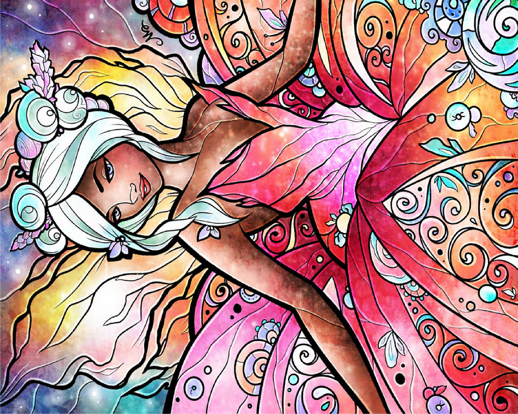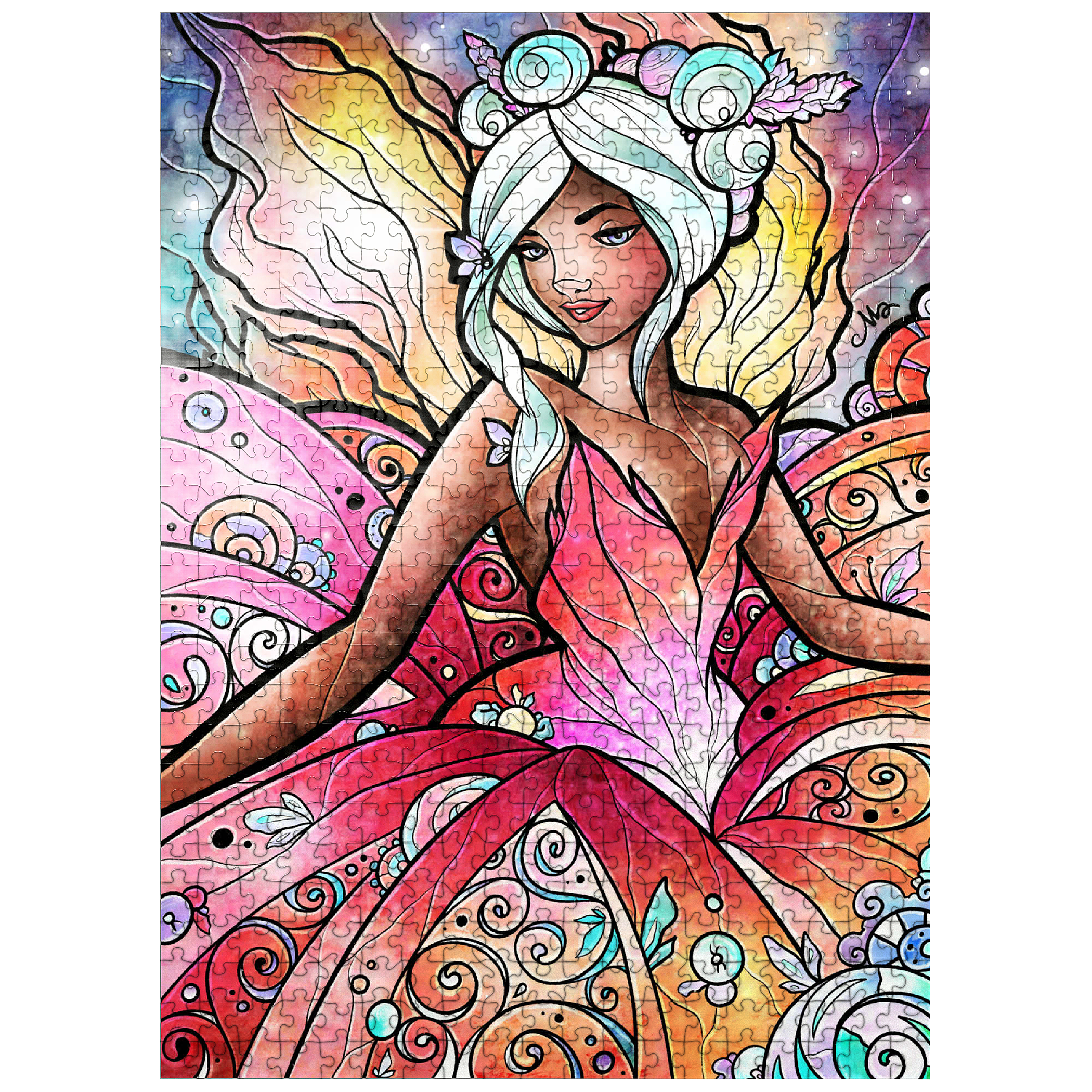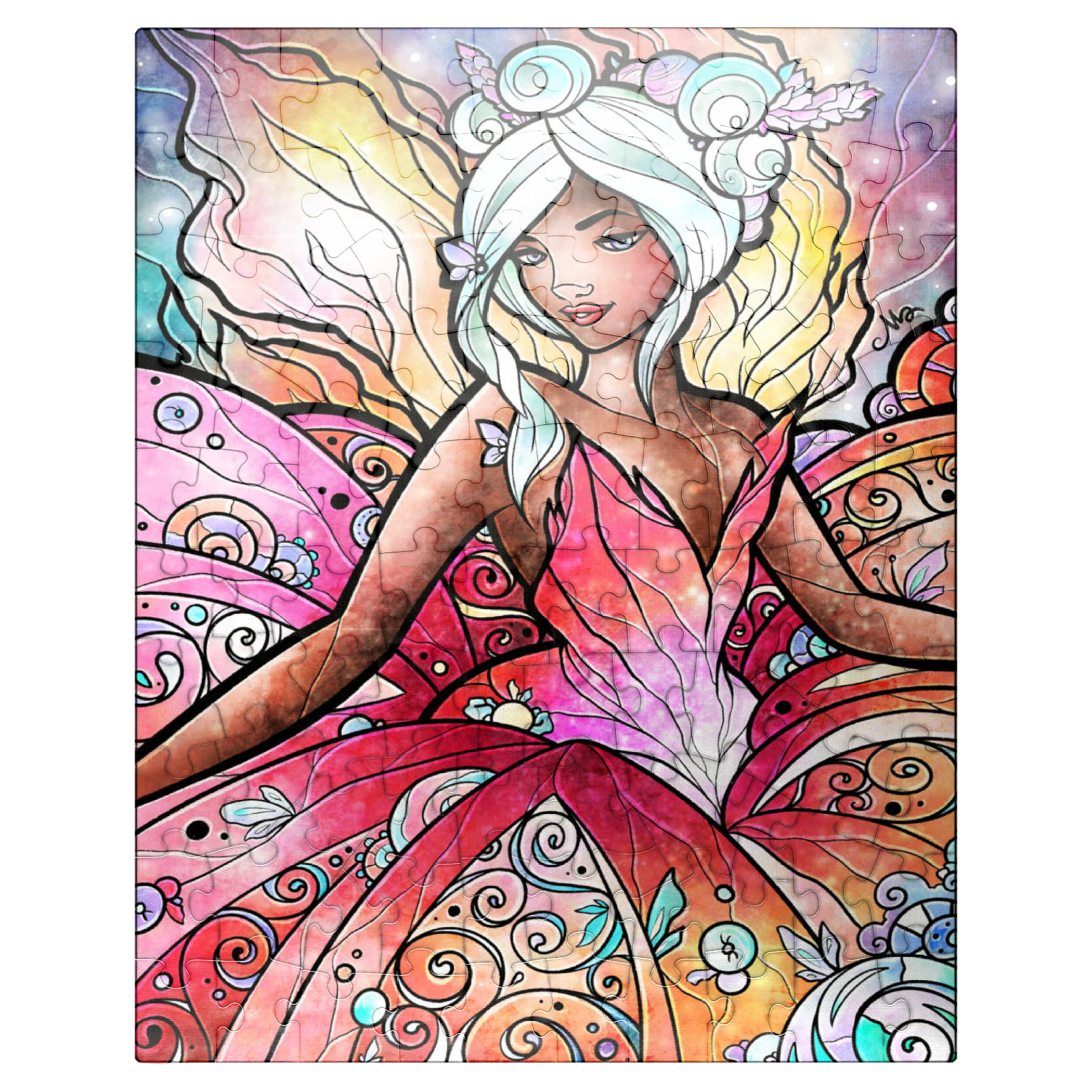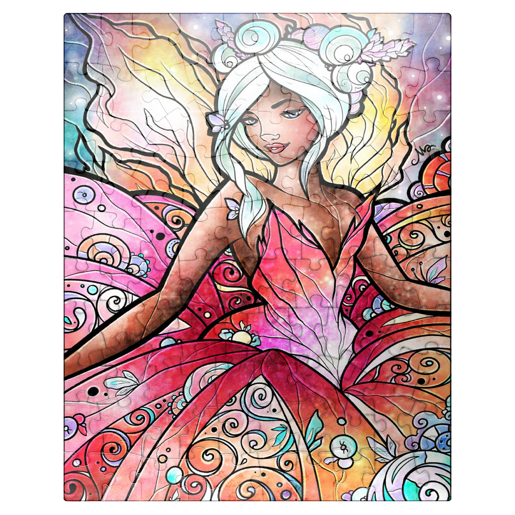 -Explore the magic of the Sugar Plum Fairy! Her elegant form, adorned in vibrant pinks, oranges, and swirling patterns, radiates sweetness and grace. Delicate wings and a whimsical hairstyle complete her enchanting presence. Immerse yourself in this sugary dreamscape and piece together her ethereal beauty.