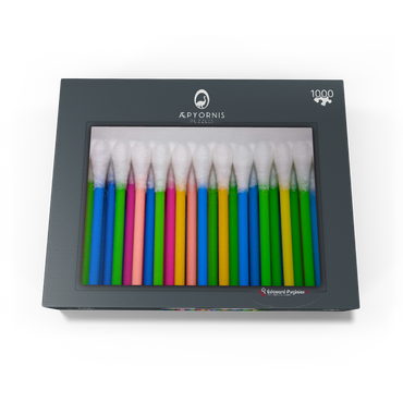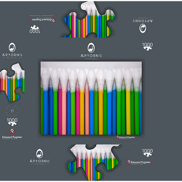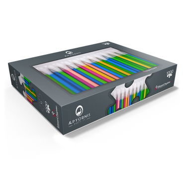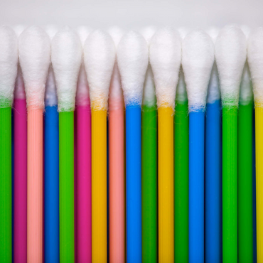 Colorful close-up of an ordered set of Q-tips