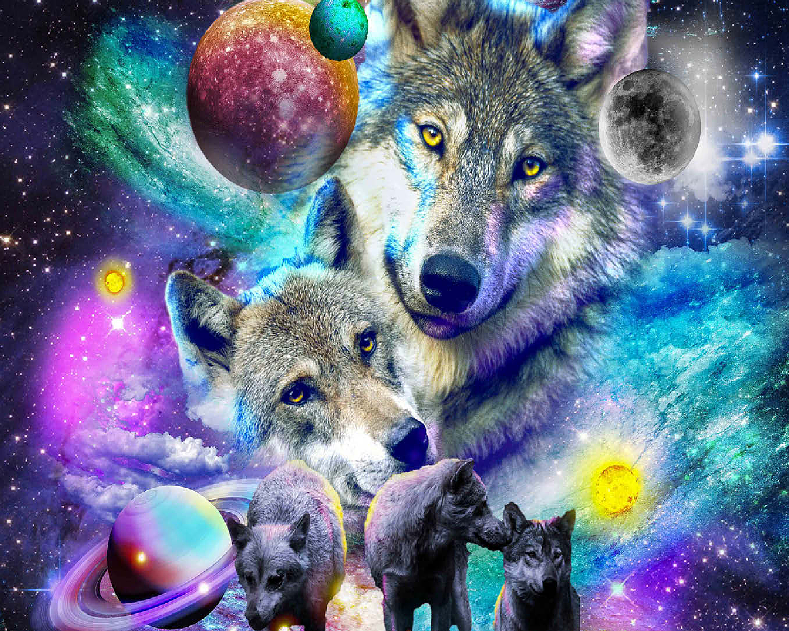 Lone Space Wolf Howling Among the Stars - Random Galaxy